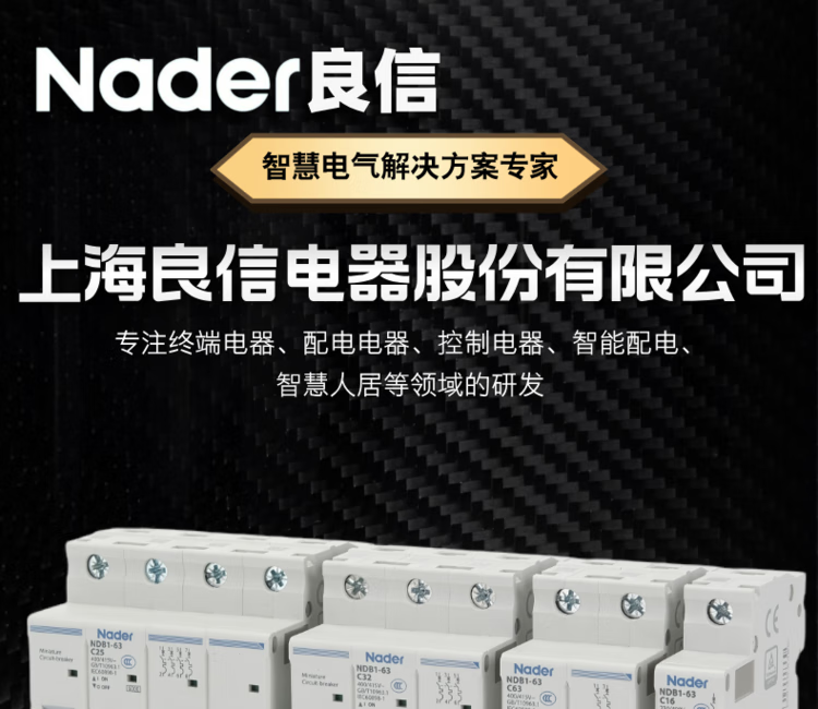 Nader Shanghai Liangxin air switch NDB1-63C small circuit breaker 1P2P3P4P micro-break household main switch NDB1-63 C type 3P+N 25A