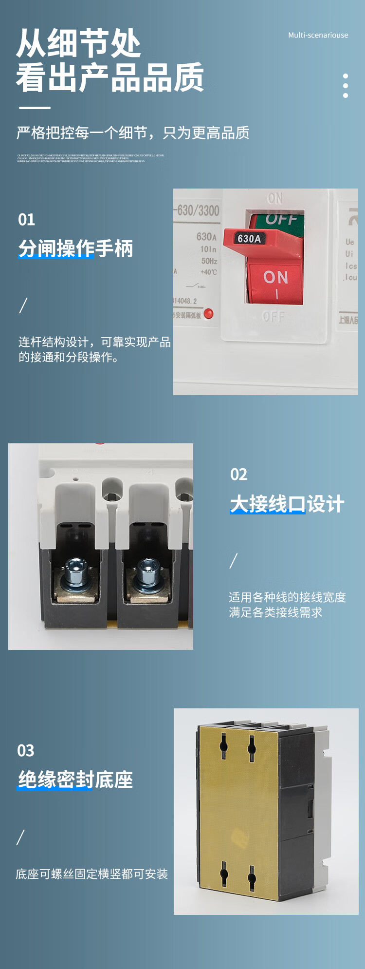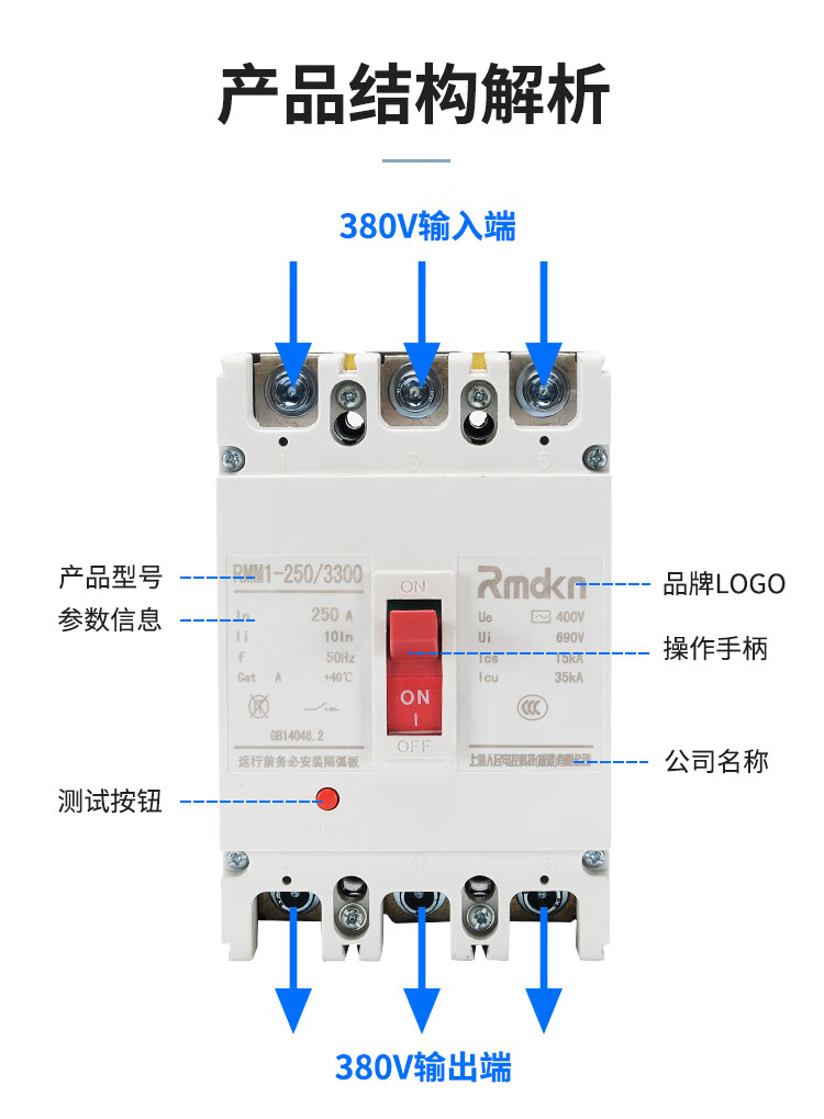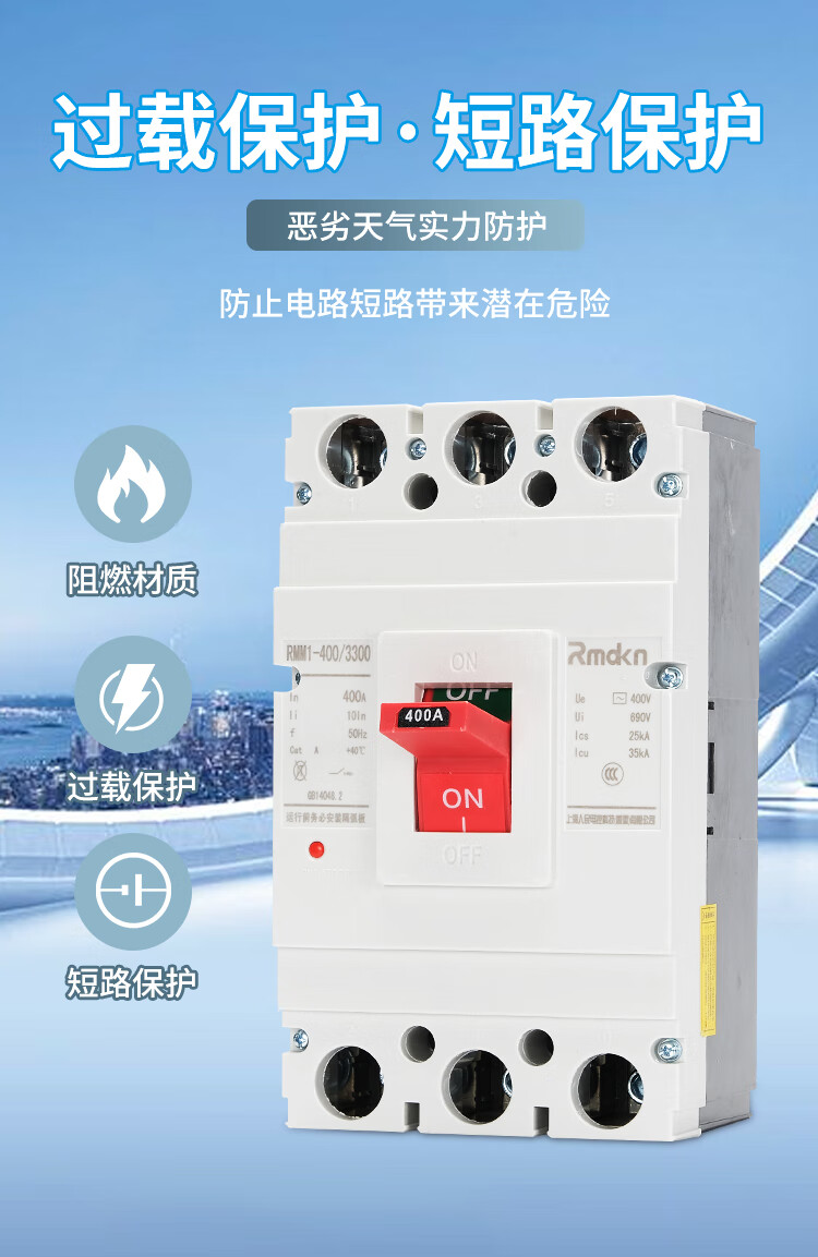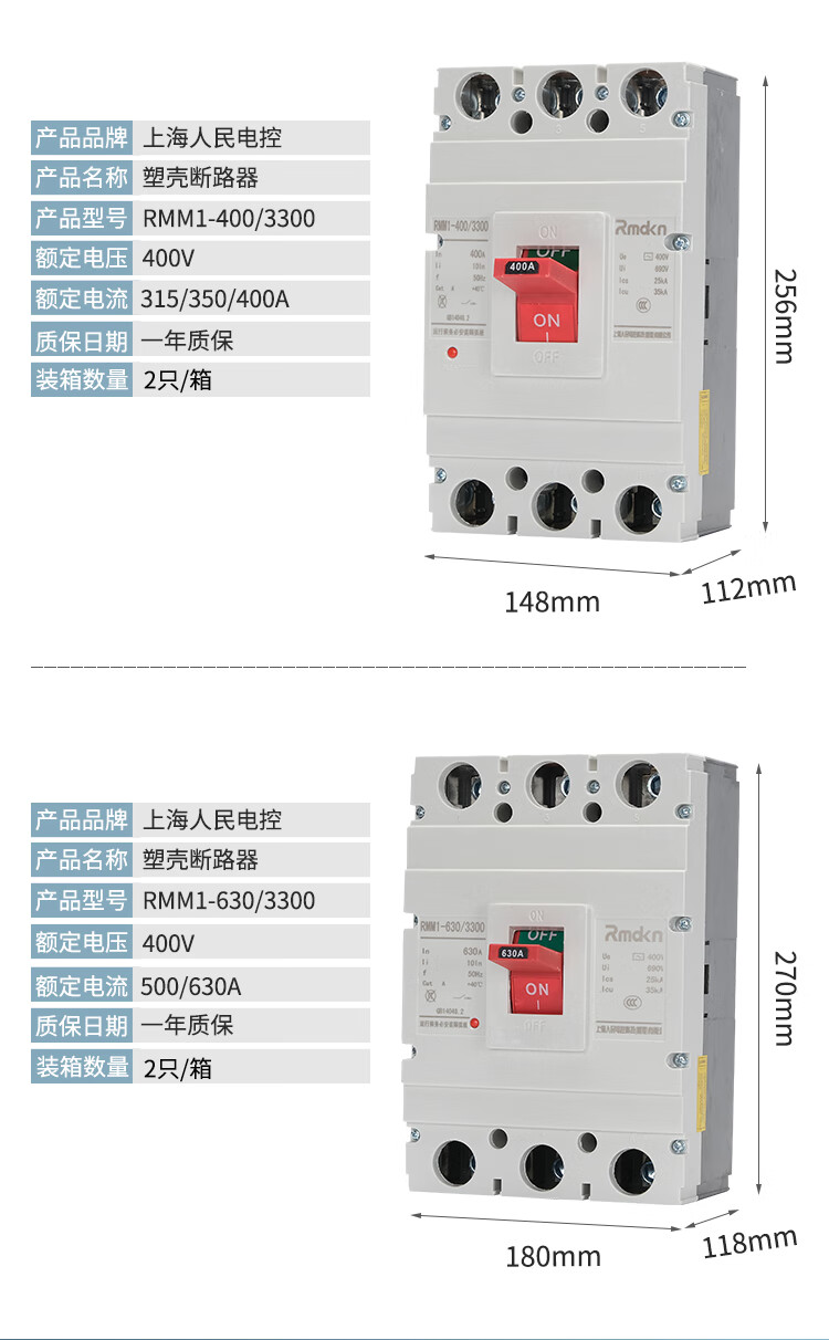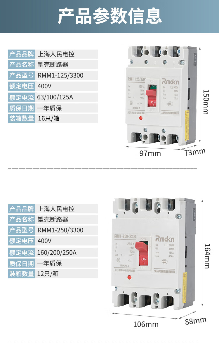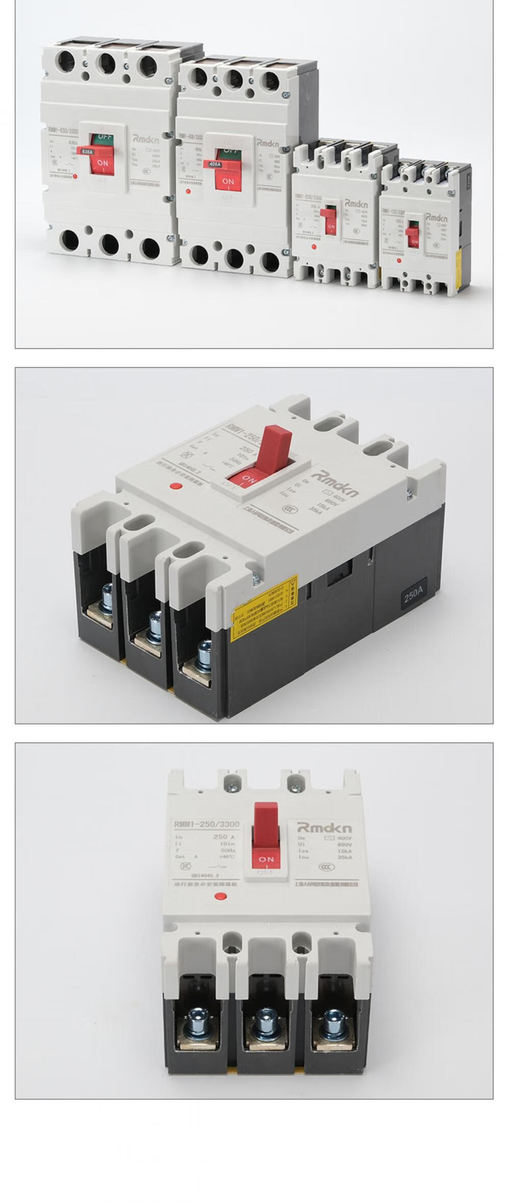 People's Electrical Appliances CM1 plastic case circuit breaker RMM13P125A160A250A main switch 4P400A630 air switch 1000A 4p