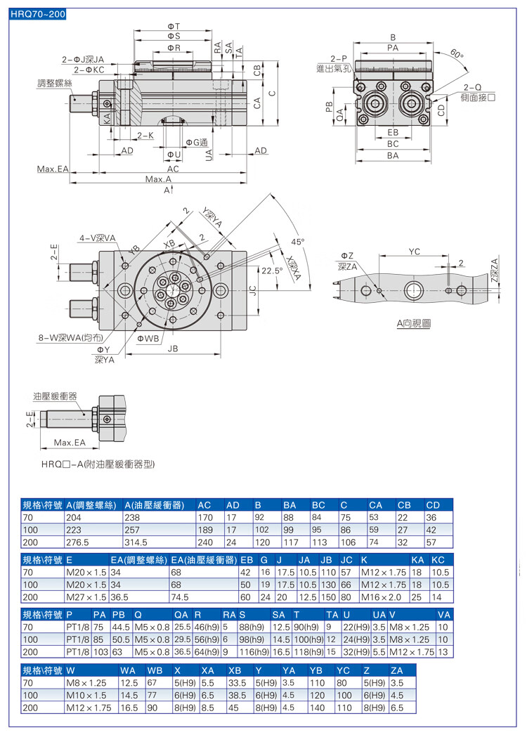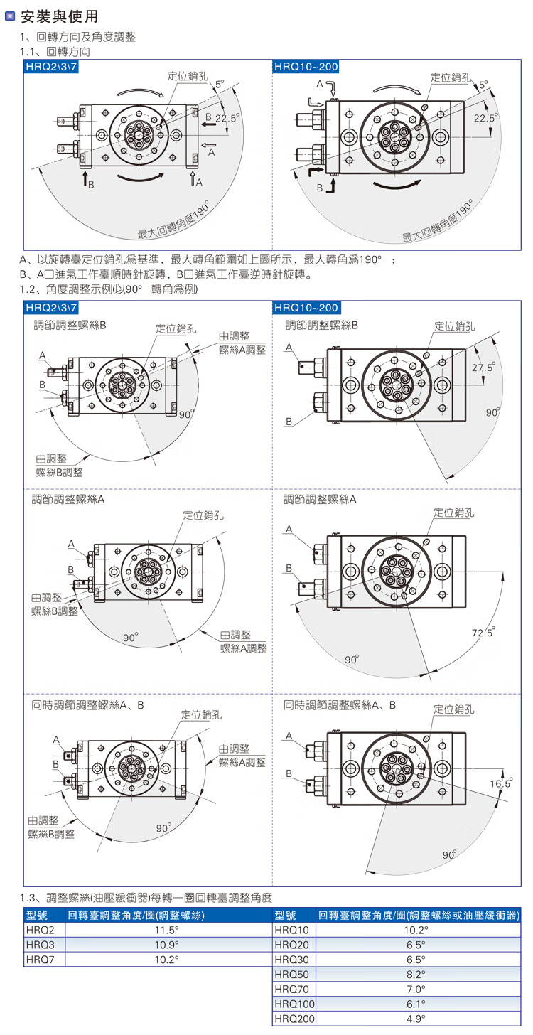 Royalfield swing rotation 180 degree 90 degree cylinder HRQ2371020305070100A HRQ10A with buffer default