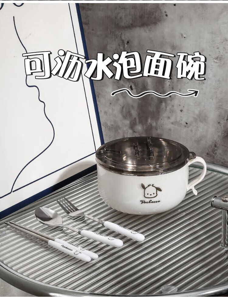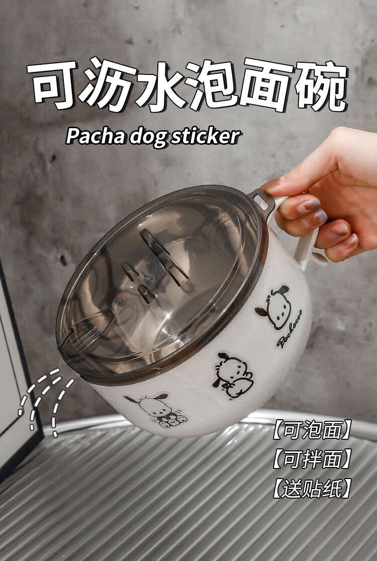 Pacha Dog stainless steel instant noodle bowl with lid ins Japanese large capacity drainable instant noodle bowl student lunch box noodle bowl 1300ml tableware