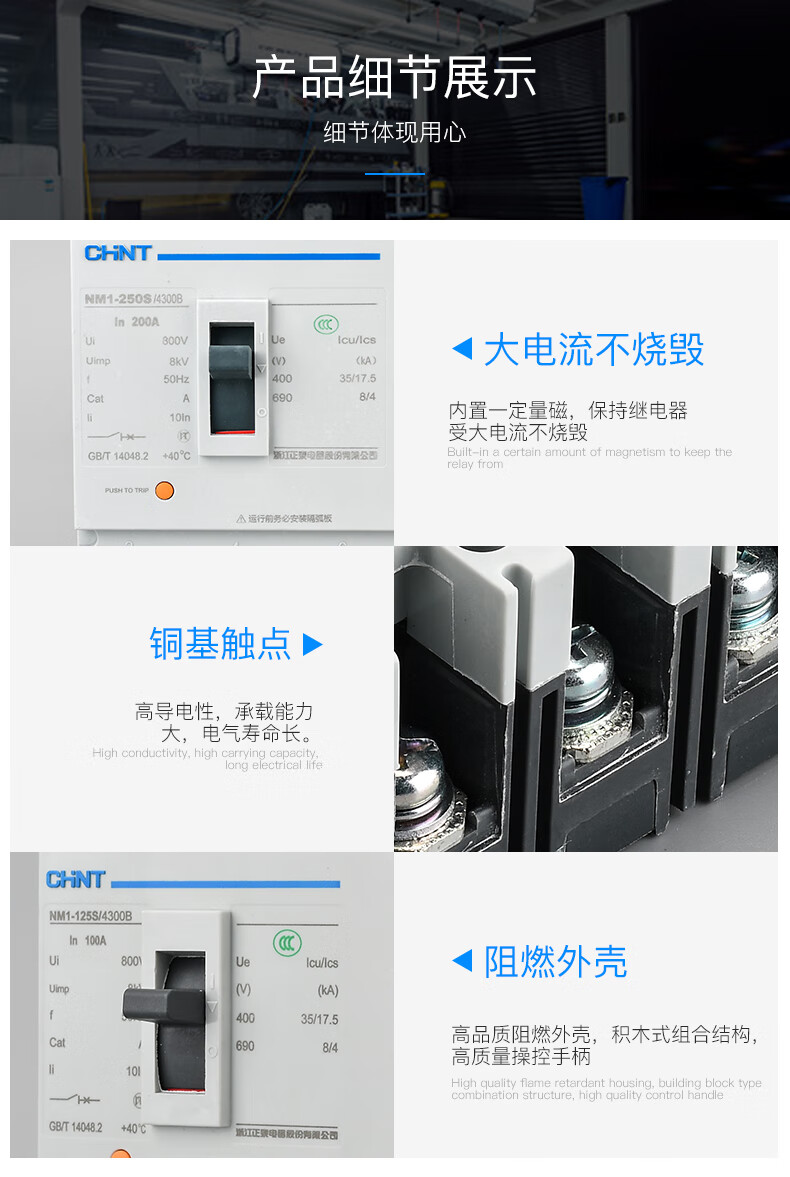 Chint NM1 molded case circuit breaker air switch series 125A250A400A630A3p4p40a50a63a 3P 1000A