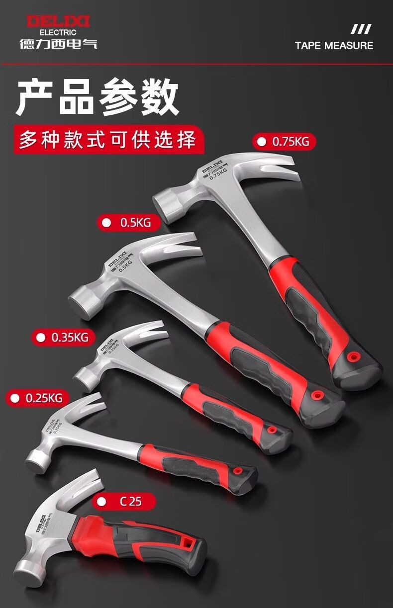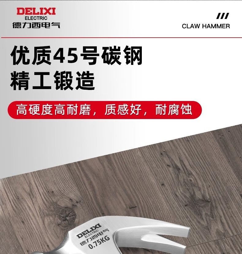 DELIXI ELECTRIC hammer iron hammer claw hammer household hammer handmade small nail hammer woodworking special one-piece forming hammer flagship model 0.75kg one-piece claw hammer genuine Delixi Electric
