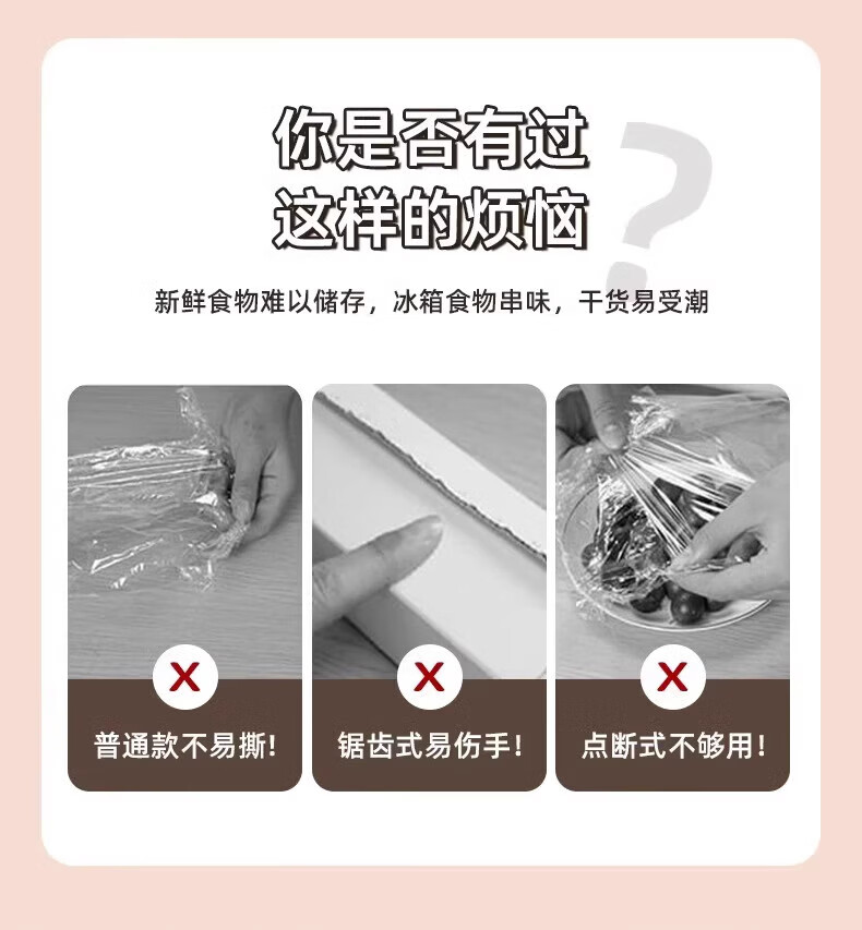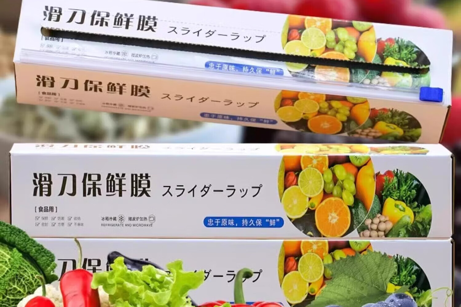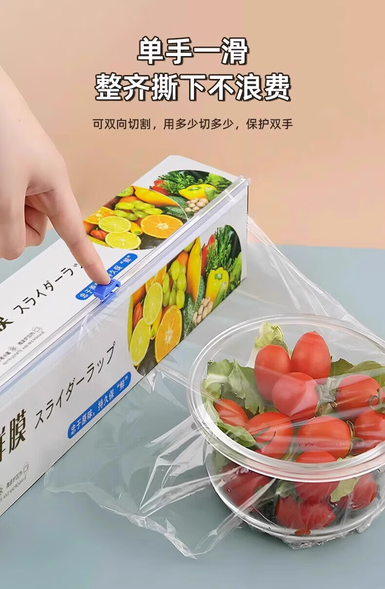 Wuxin thickened food grade new sliding knife plastic wrap watermelon vegetables and fruits disposable kitchen box sliding knife plastic wrap 1 box 30cm*100m