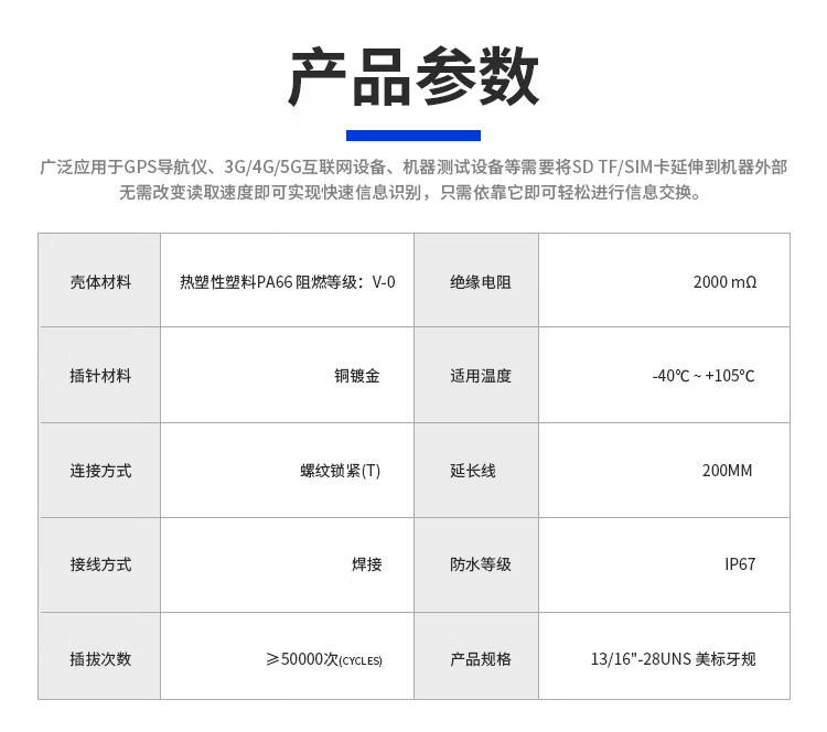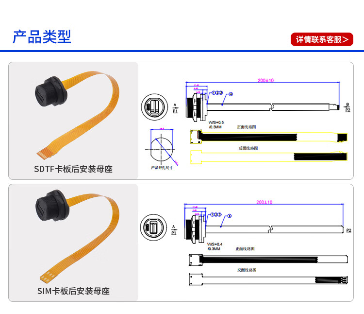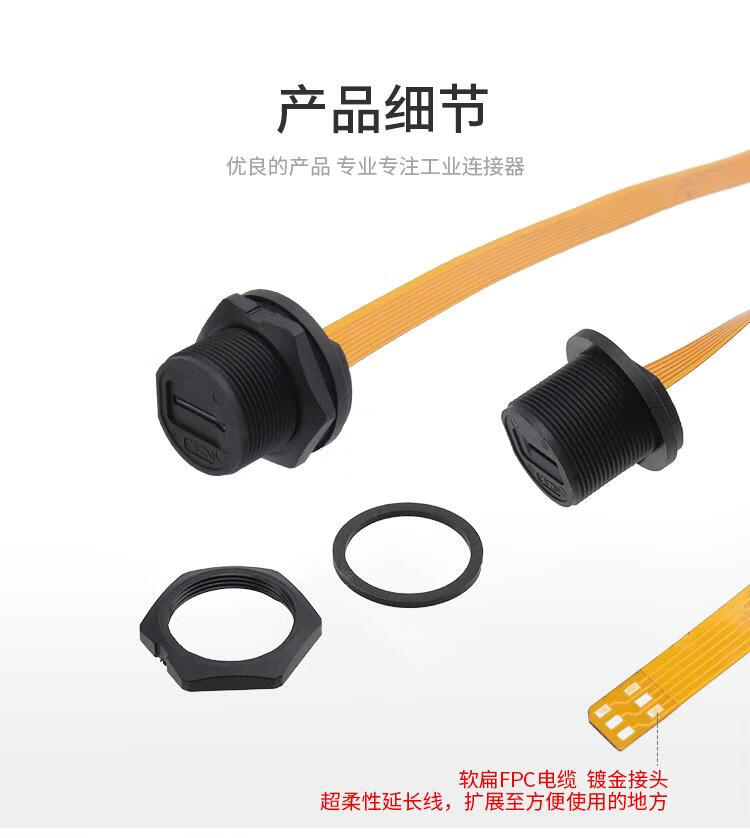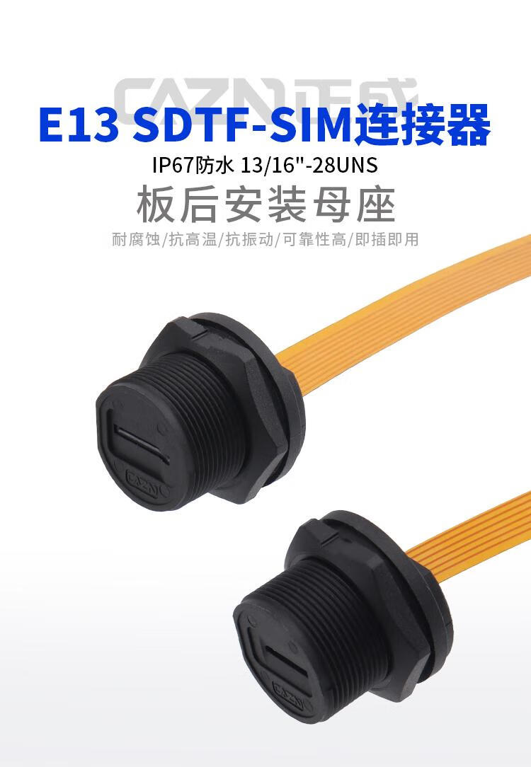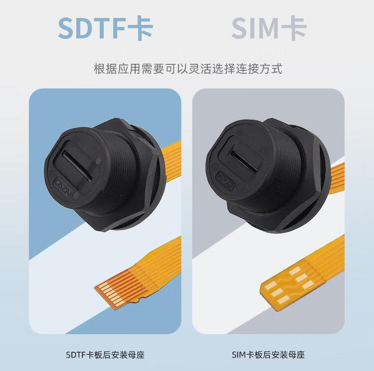 Zhengcheng waterproof connector threaded SDTF interface SIM card slot ultra-soft flat FPC extension cable IP67 NanoSIM socket 0.2M