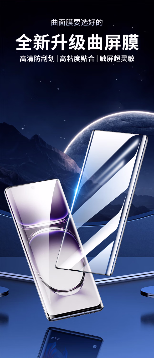 Jingnie 2-piece set OPPOReno12 tempered film privacy film Reno12pro curved full-screen coverage anti-blue light high-definition anti-fingerprint explosion-proof glass mobile phone protective film curved diamond film HD version-2 pieces set OPPO Reno12/Reno12Pro universal