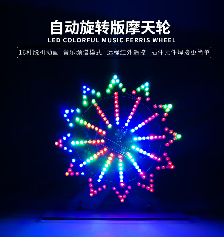 Colorful and cool animated LED electric rotating Ferris wheel diy kit electronic components diy welding production parts parts + bracket