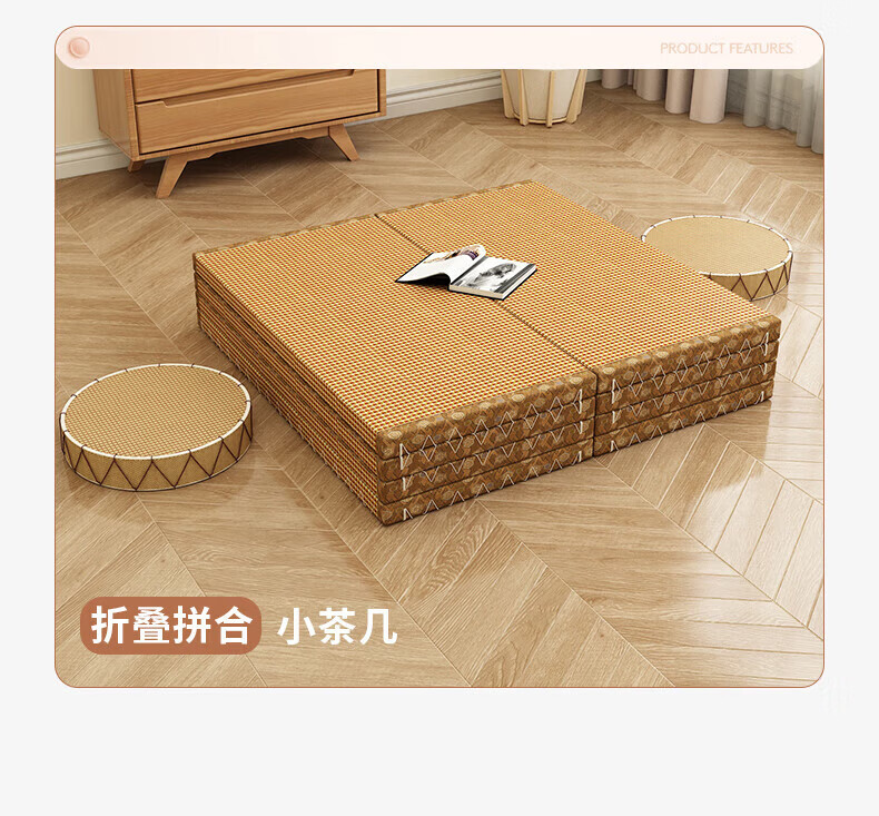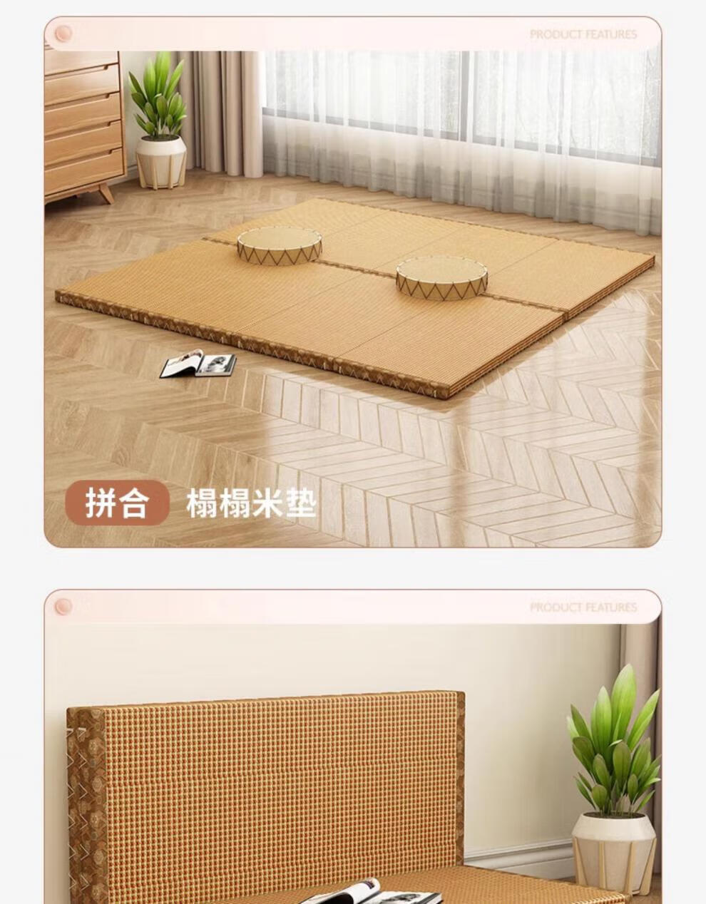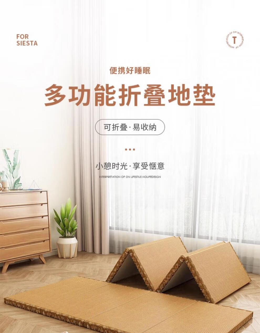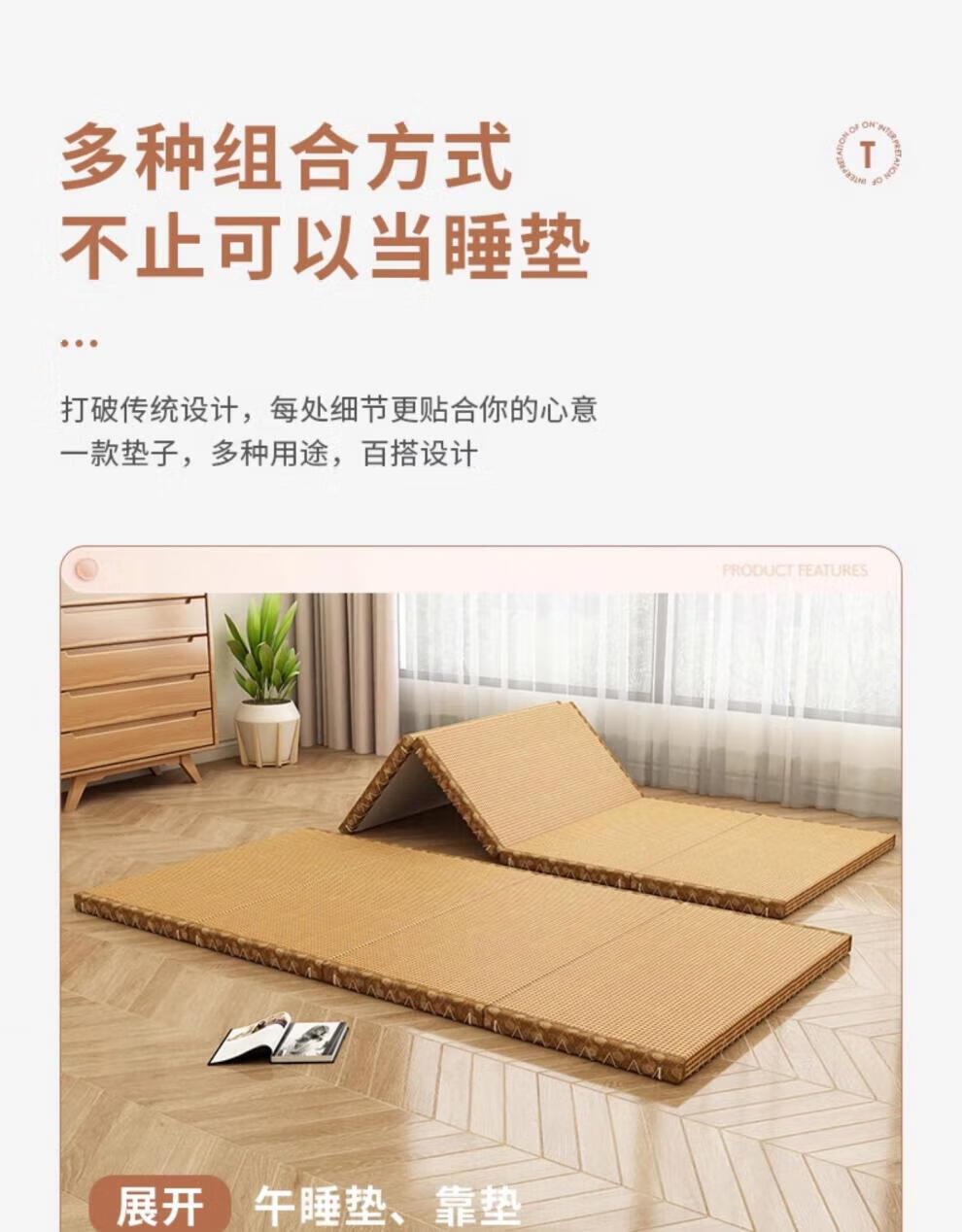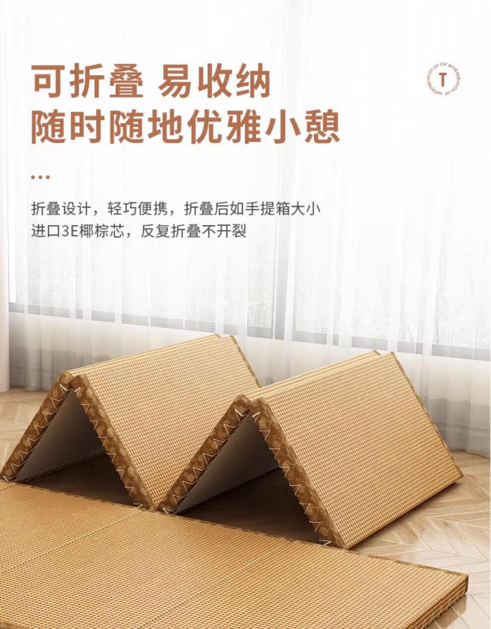 Visibility customized tatami mat Japanese-style household folding floor mat summer coconut palm plus hard floor special lunch break sleeping mat 150cm*200cm/5cm thick (4 folds)