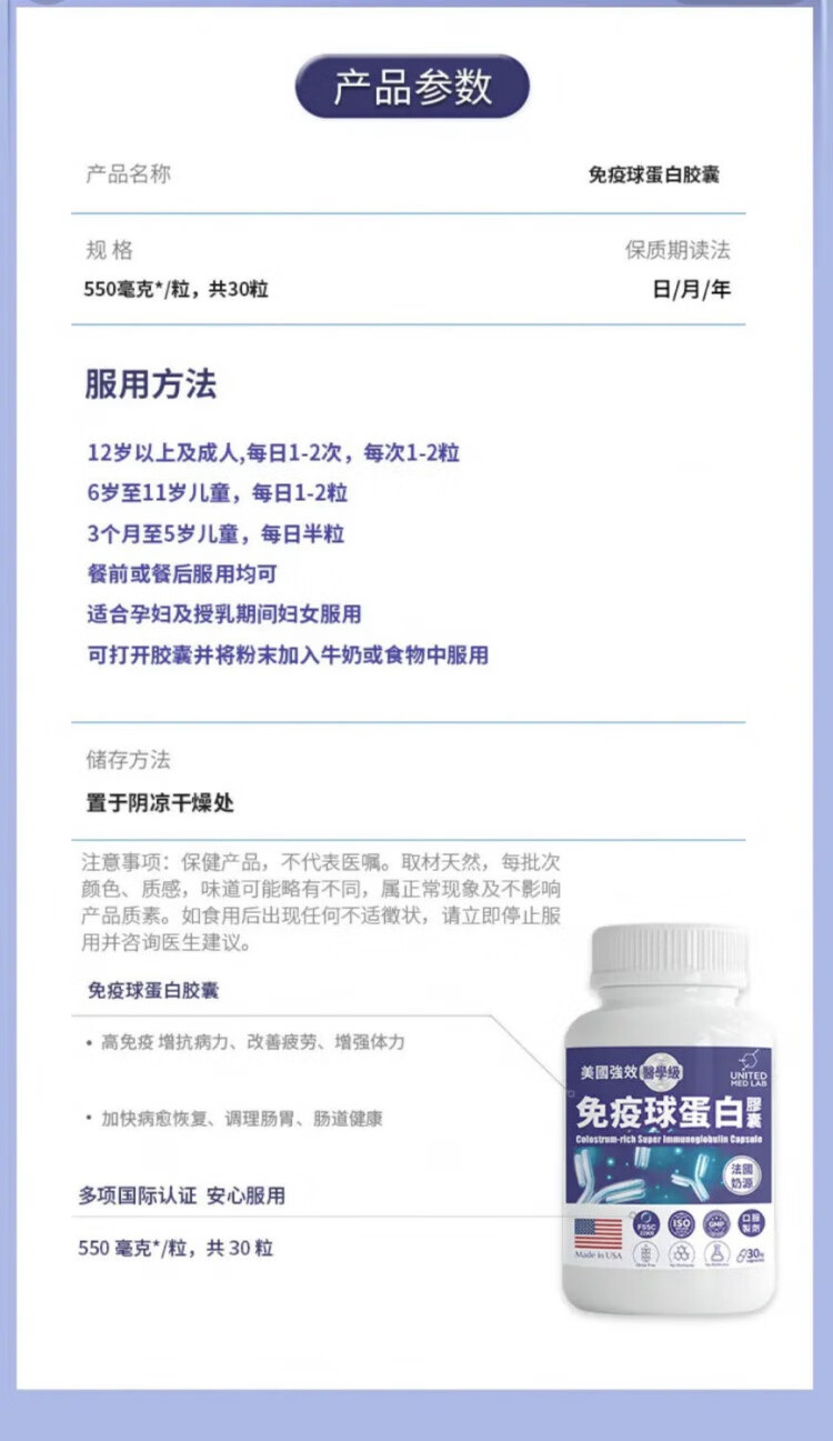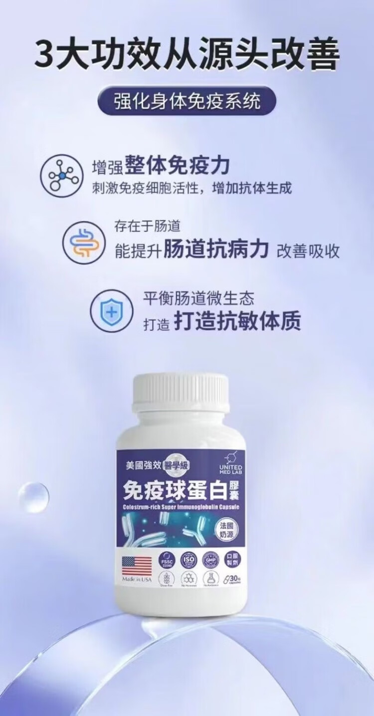 THORNE immune globulin adult capsules, bovine colostrum to enhance immunity, imported from Noto, bovine colostrum to enhance immune globulin, 90 capsules*3 bottles