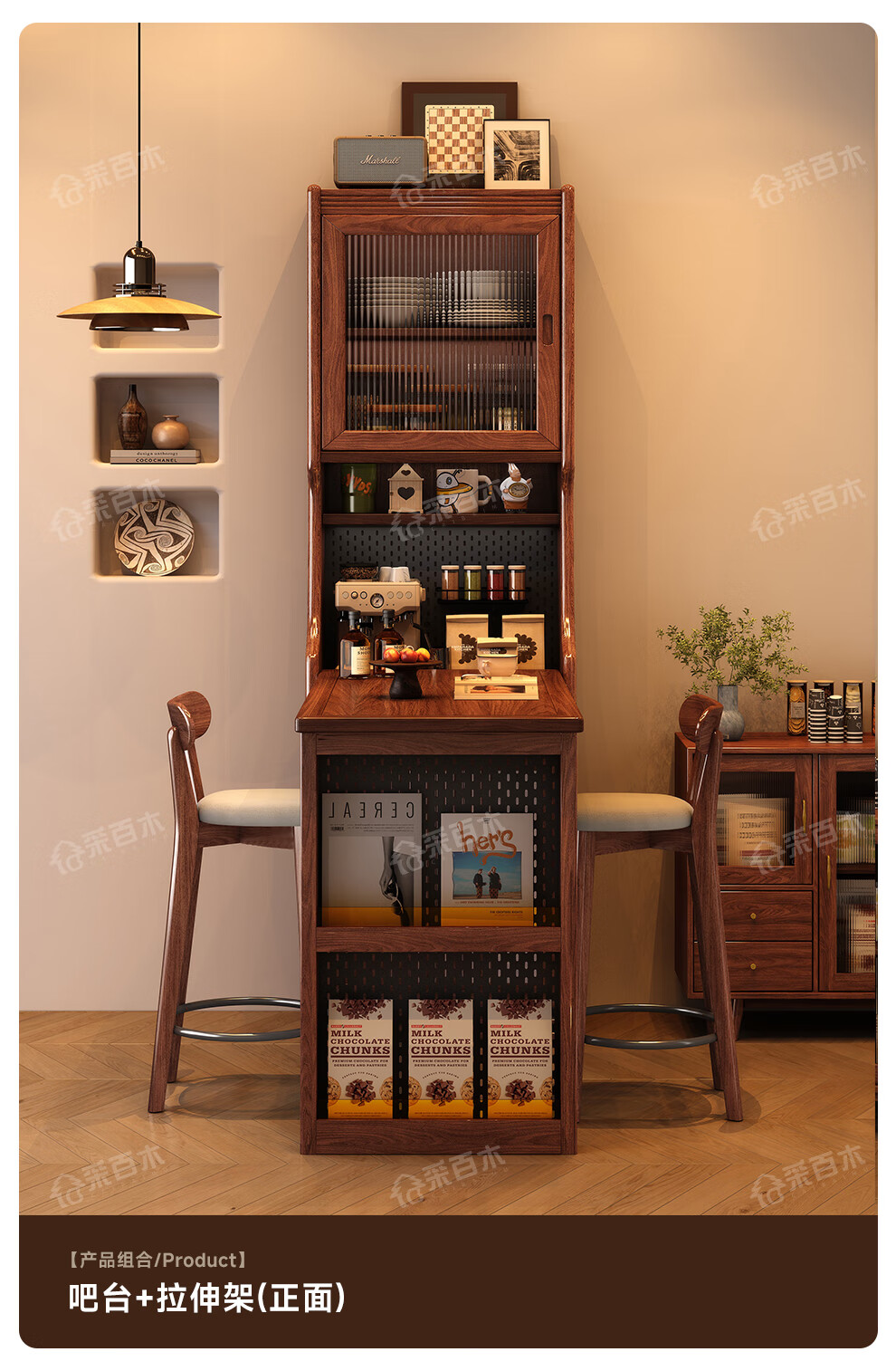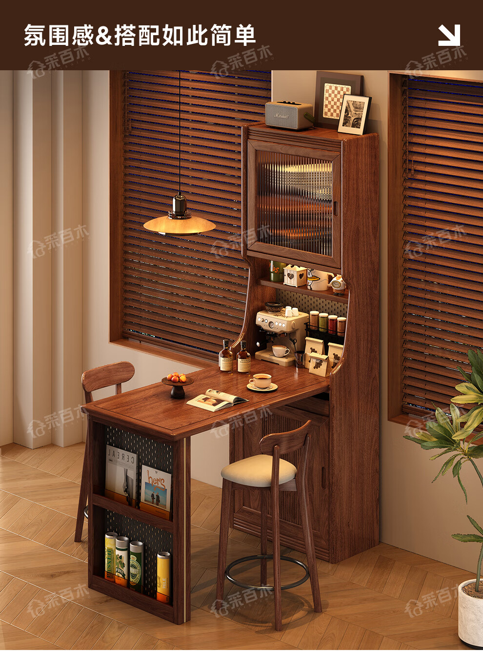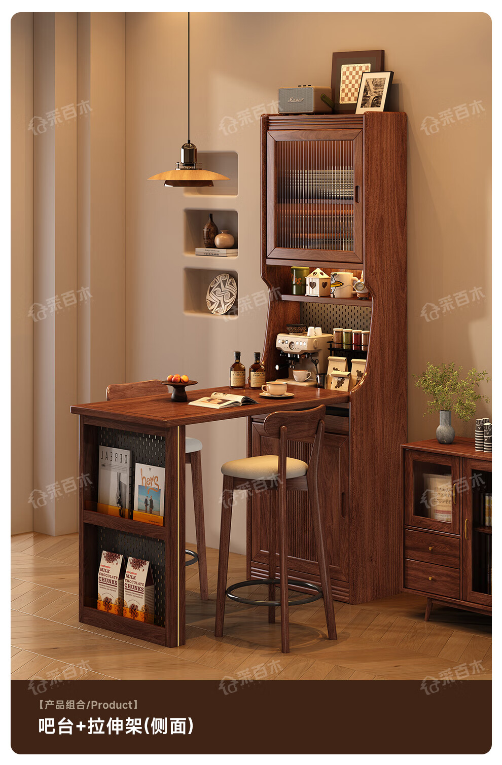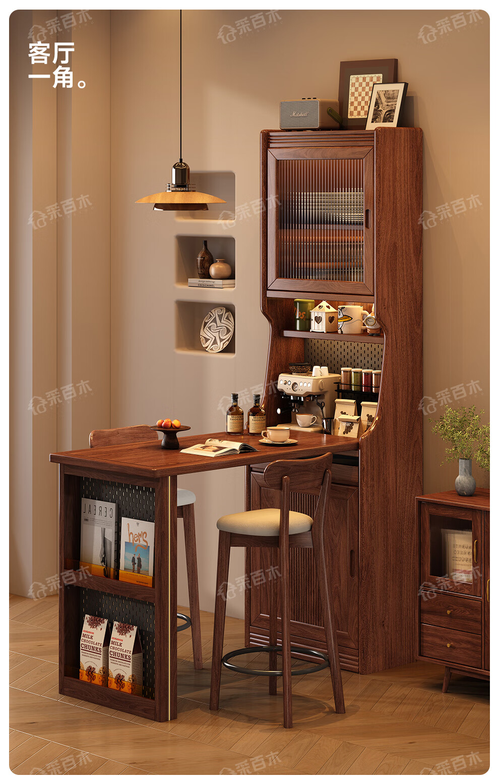 Solid wood sideboard bar table retractable storage partition integrated cabinet living room small apartment sofa side cabinet bar table combination walnut color