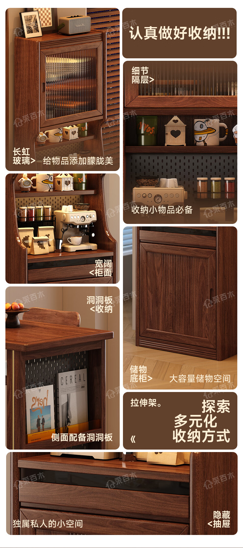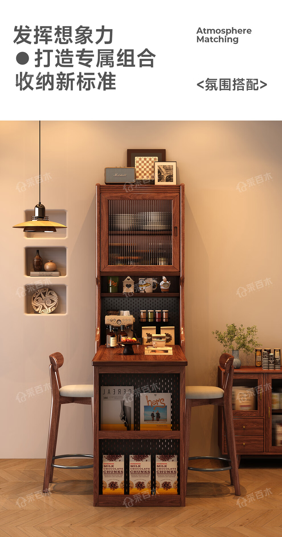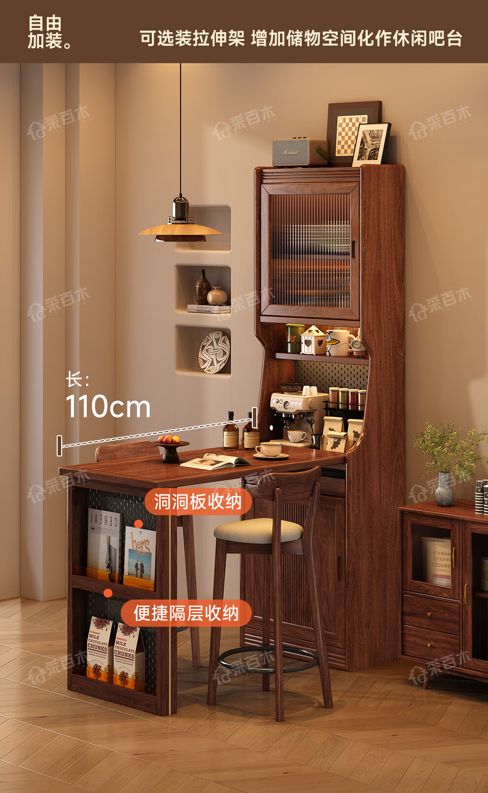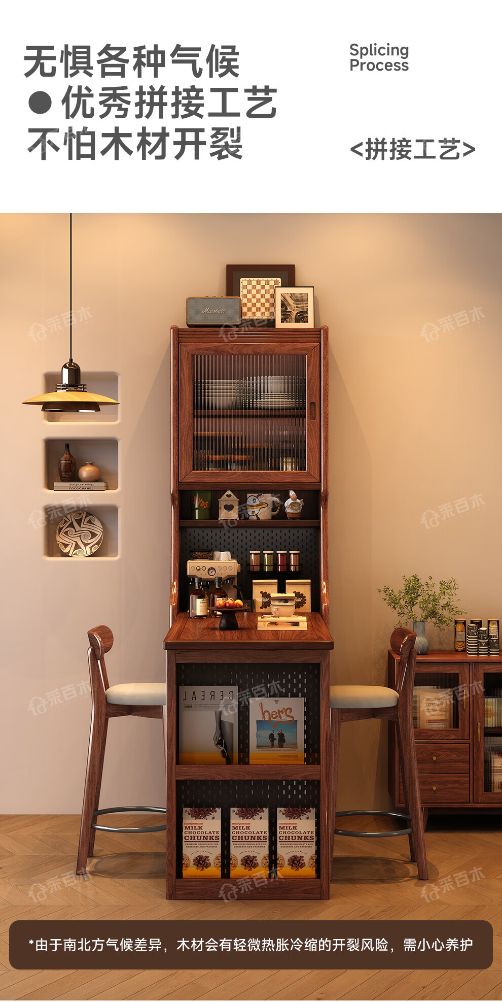 Solid wood sideboard bar table retractable storage partition integrated cabinet living room small apartment sofa side cabinet bar table combination walnut color