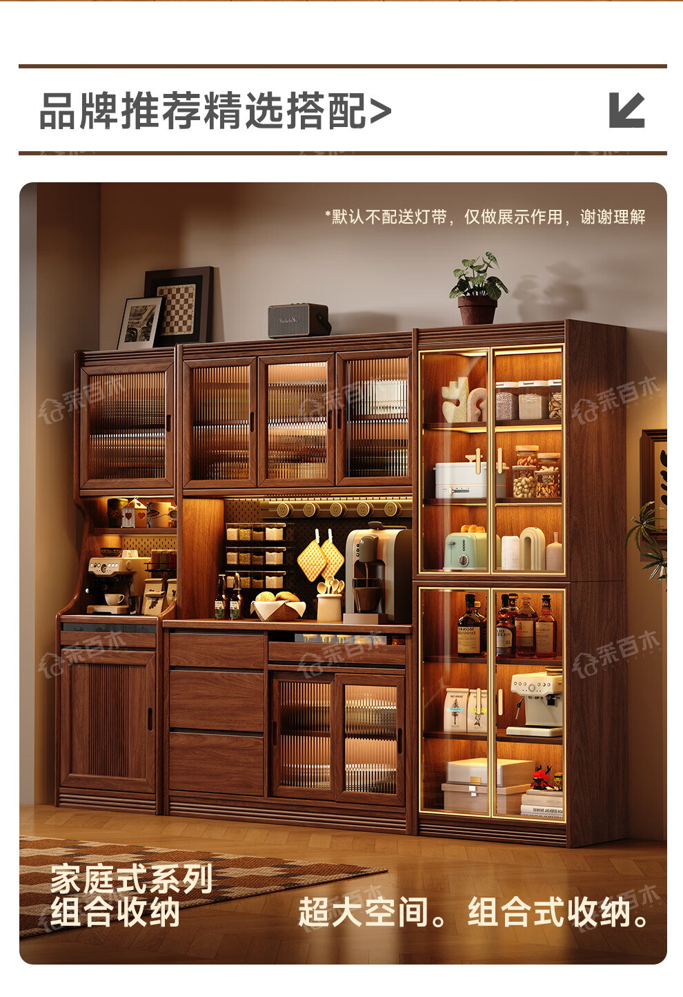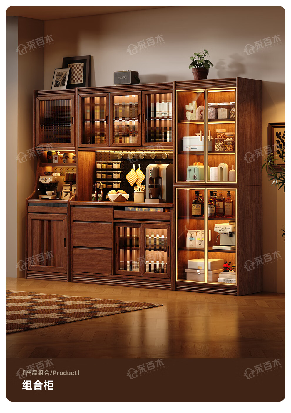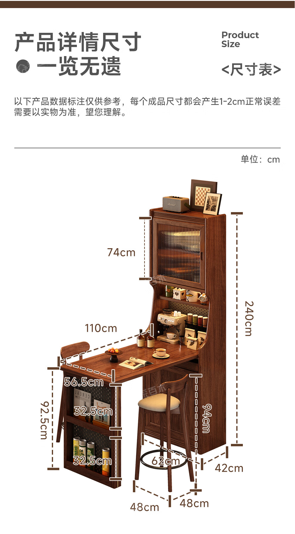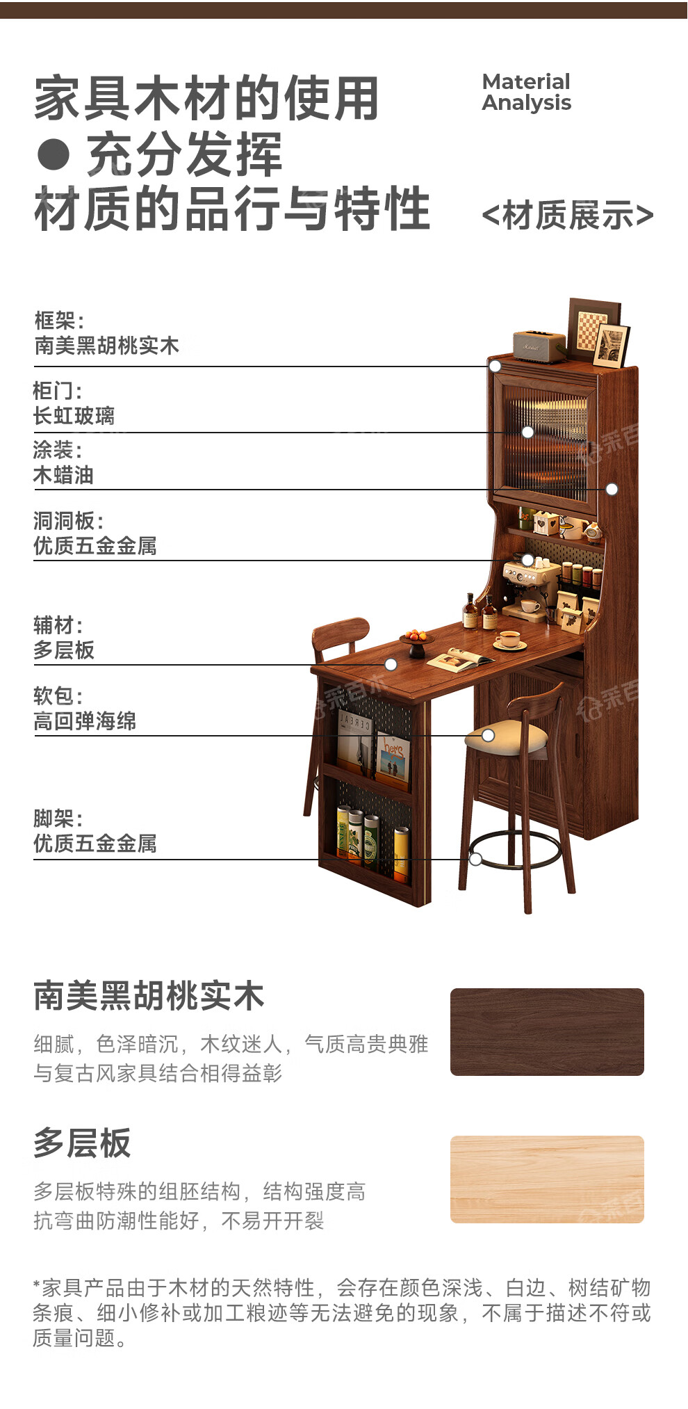 Solid wood sideboard bar table retractable storage partition integrated cabinet living room small apartment sofa side cabinet bar table combination walnut color