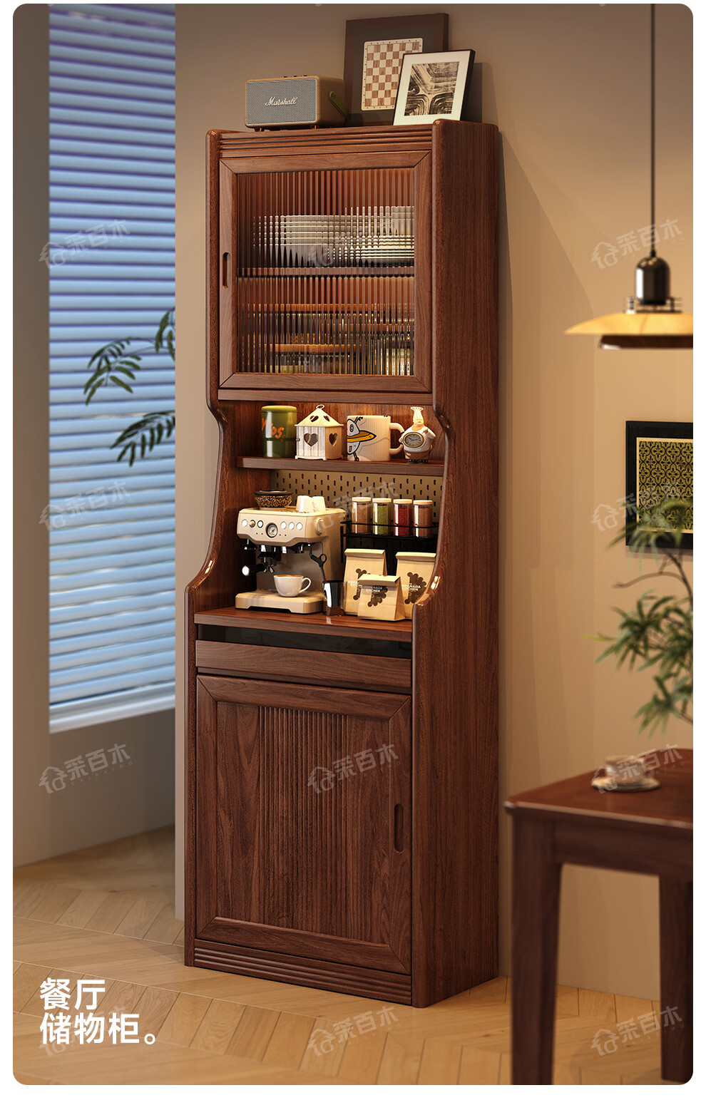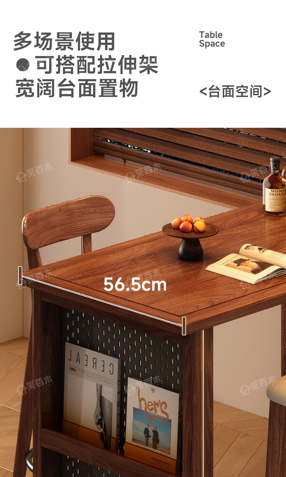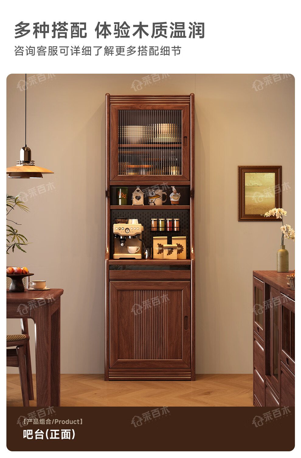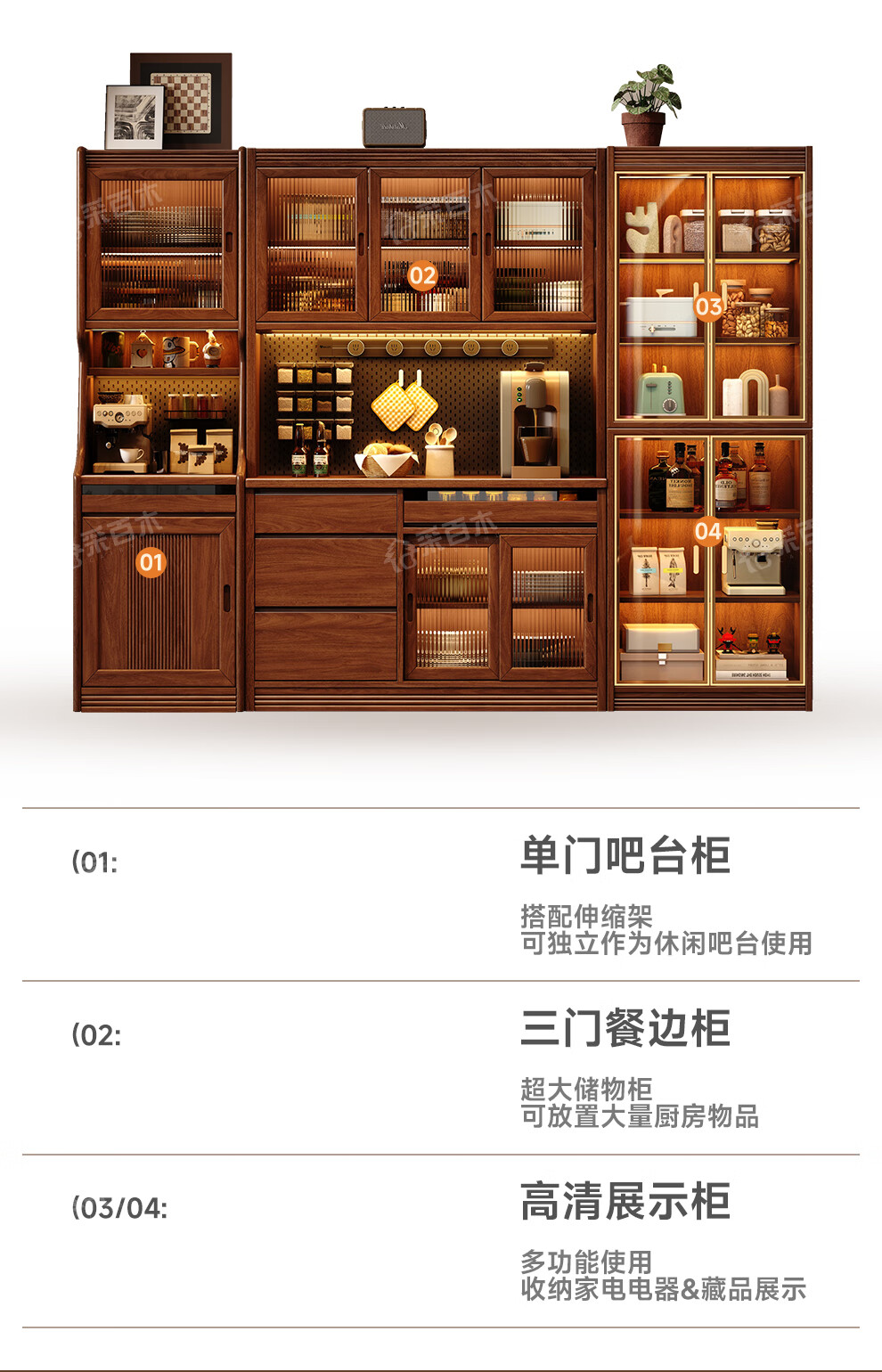 Solid wood sideboard bar table retractable storage partition integrated cabinet living room small apartment sofa side cabinet bar table combination walnut color