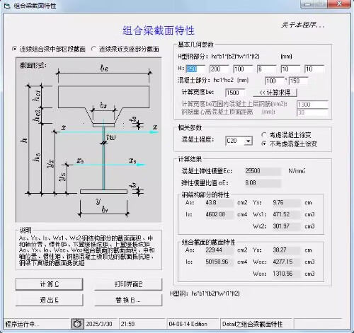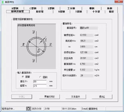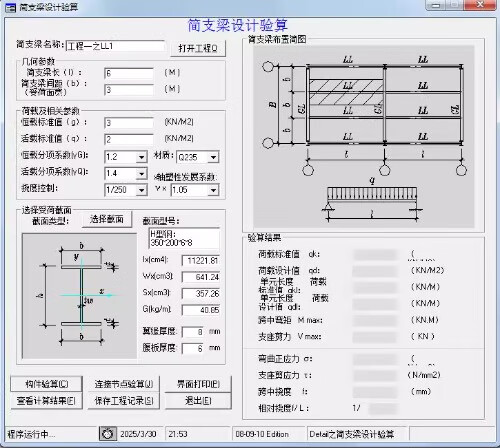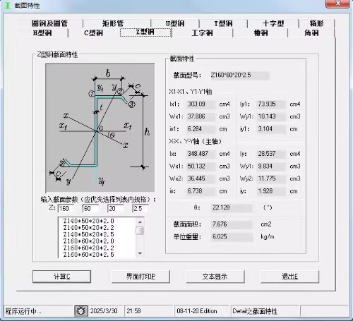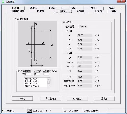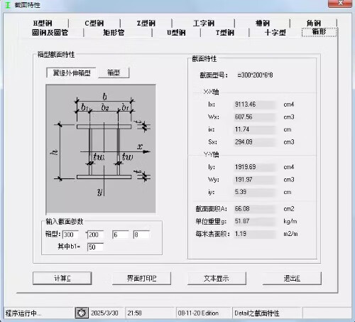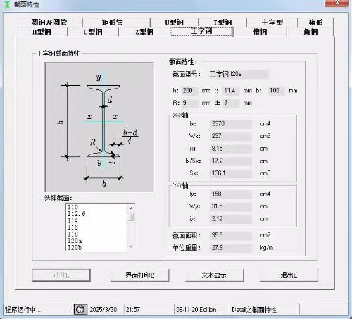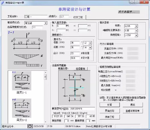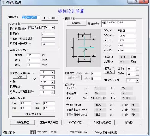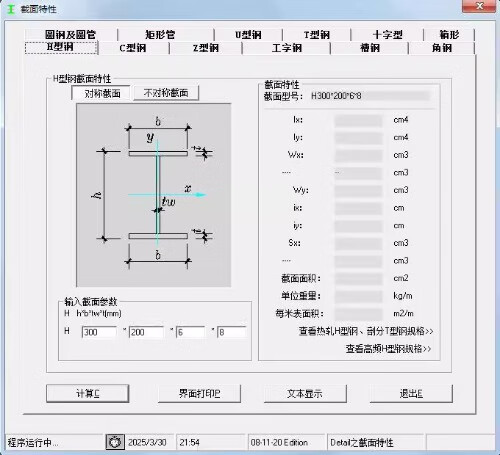 Steel structure calculation software, simply supported beam/single span beam/node/foundation/steel column design, section characteristics
