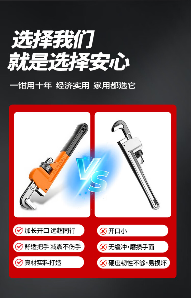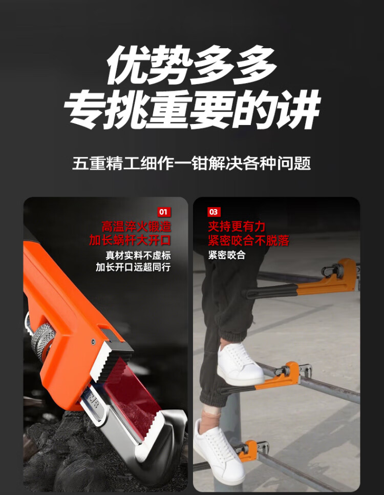 Xiaoxiao (SHALL) Heavy Duty Pipe Wrench Pipe Wrench Water Pipe Wrench Large Opening Self-Tightening Throat Wrench Pipe Wrench Multifunctional Universal Live Mouth Wrench Industrial Grade Pipe Wrench 14 Inch