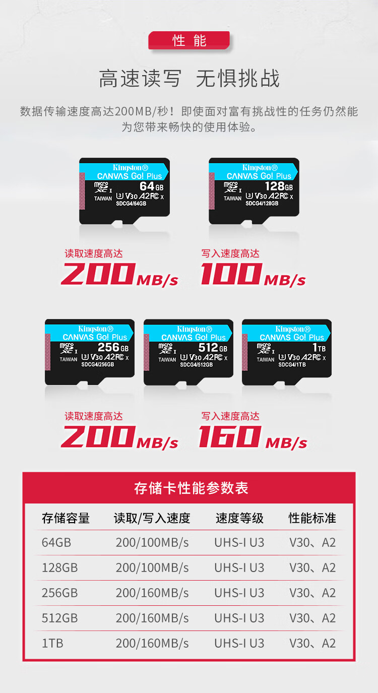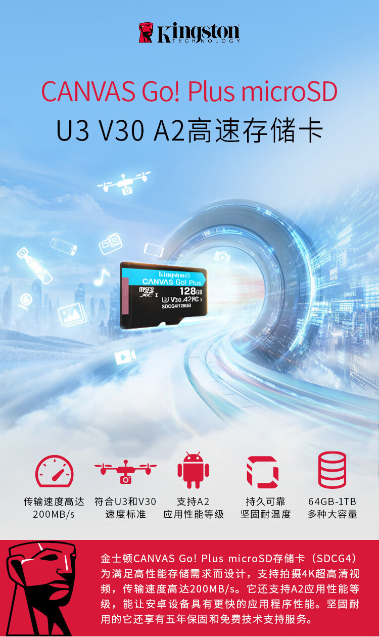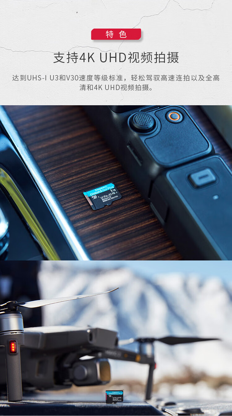 Kingston DJI pocket3 Action4 5pro memory card drone TF card MicroSD surveillance camera sports camera driving recorder high-speed memory card U3V30A2 SDCG4/256GB read 200MB/S 丨4K