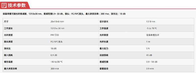 Lubang polarization-maintaining single-mode optical fiber adjustable attenuator PMFVOA-1310-APC (no maintenance involved)