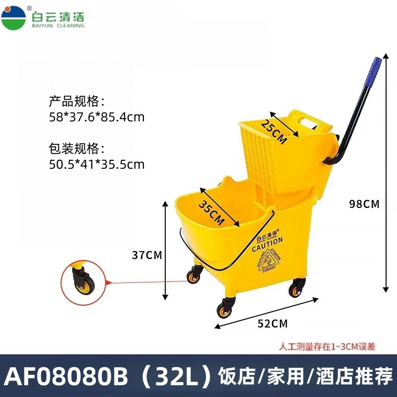 Baiyun water press truck thickened mop cleaning hand-washing hotel large mop commercial cleaning water squeeze truck hotel hotel 24L thickened water press truck 32 liters AF08080