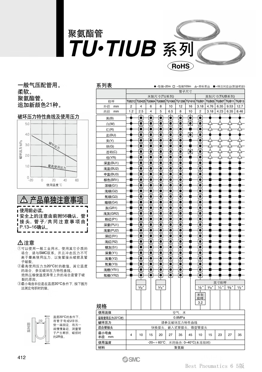 SMC trachea TU0425BU-100/0604/0805/1065/1208/1610BU-100/B TU0805W-100 white