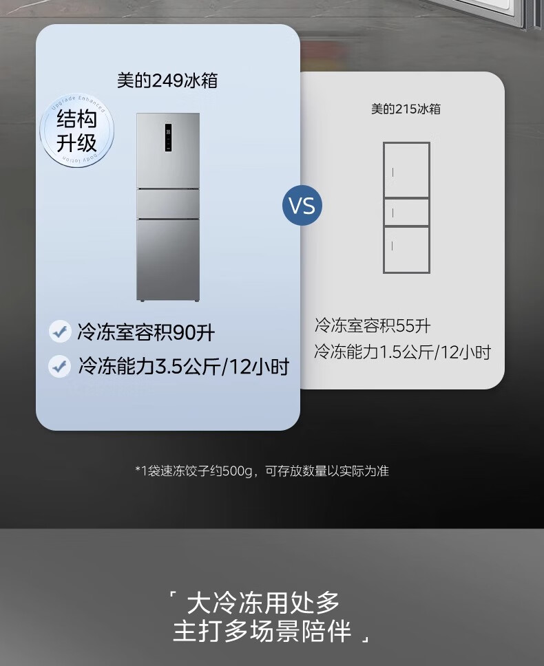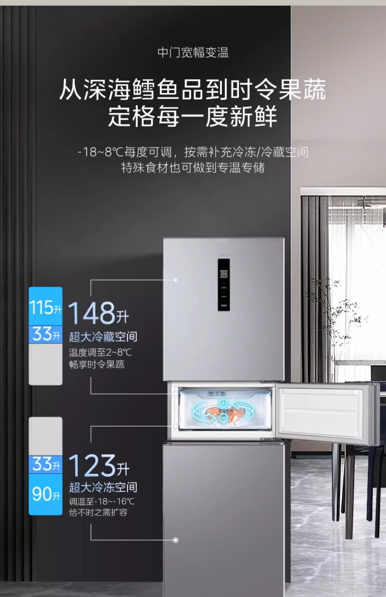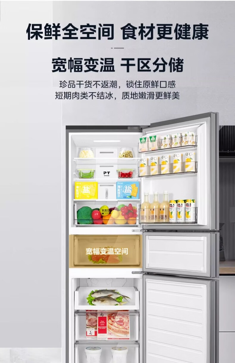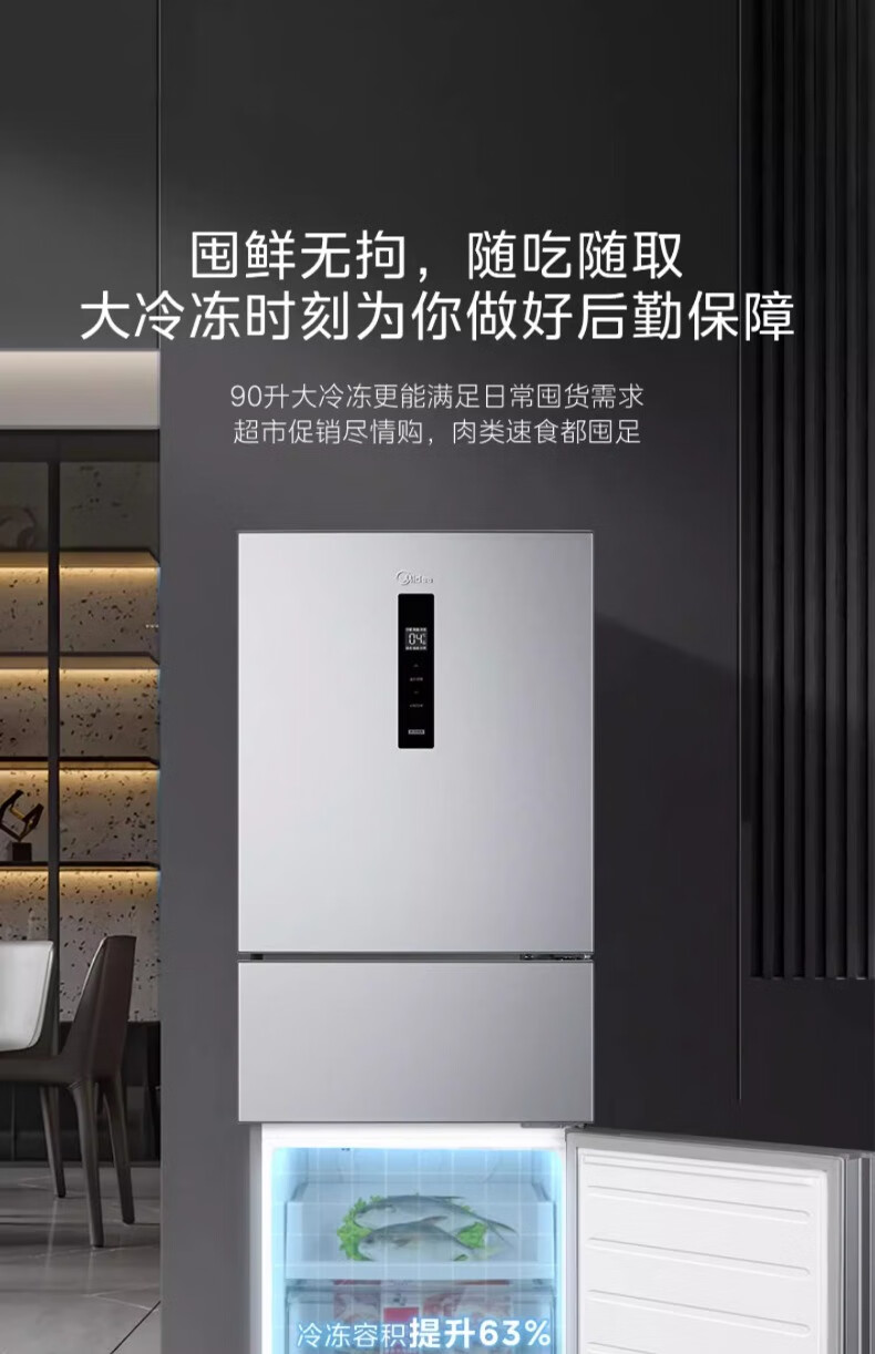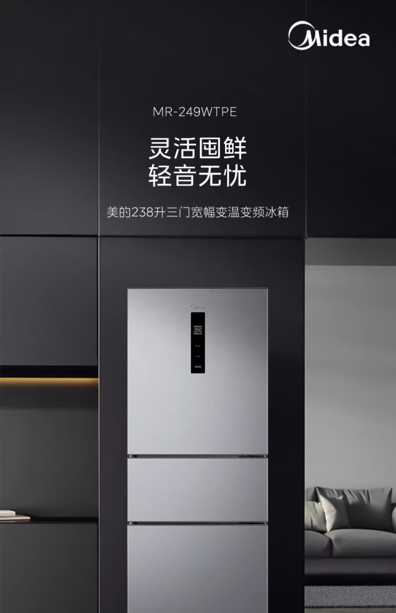 Midea 249 three-door refrigerator air-cooled frost-free frequency conversion first-class energy efficiency household small three-door magic machine large capacity household appliances small apartment medium-sized appliances MR-249WTPE