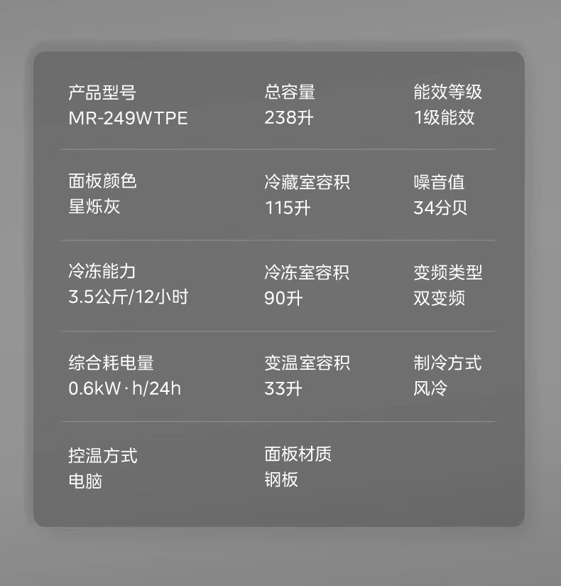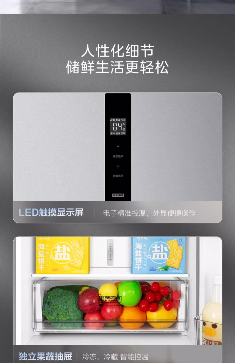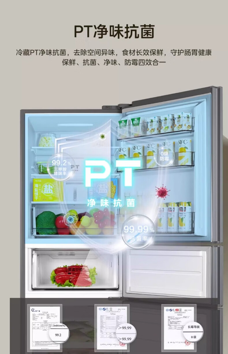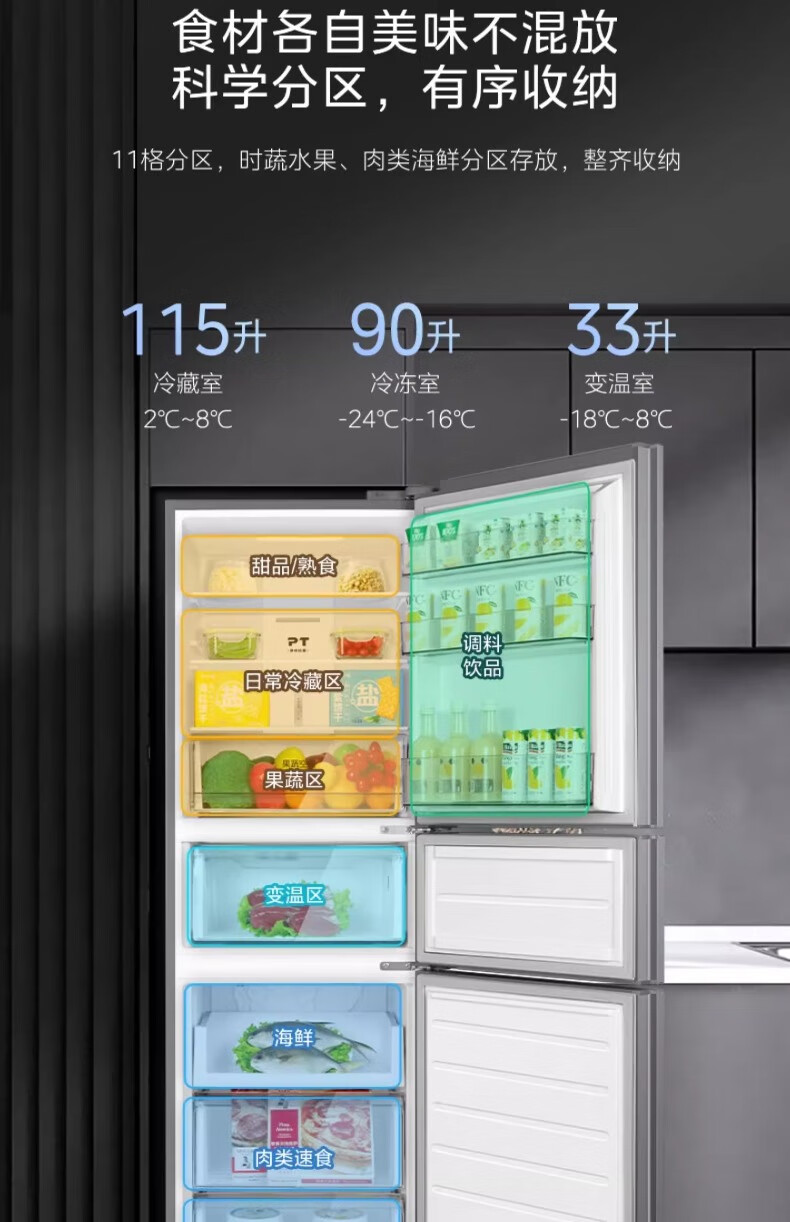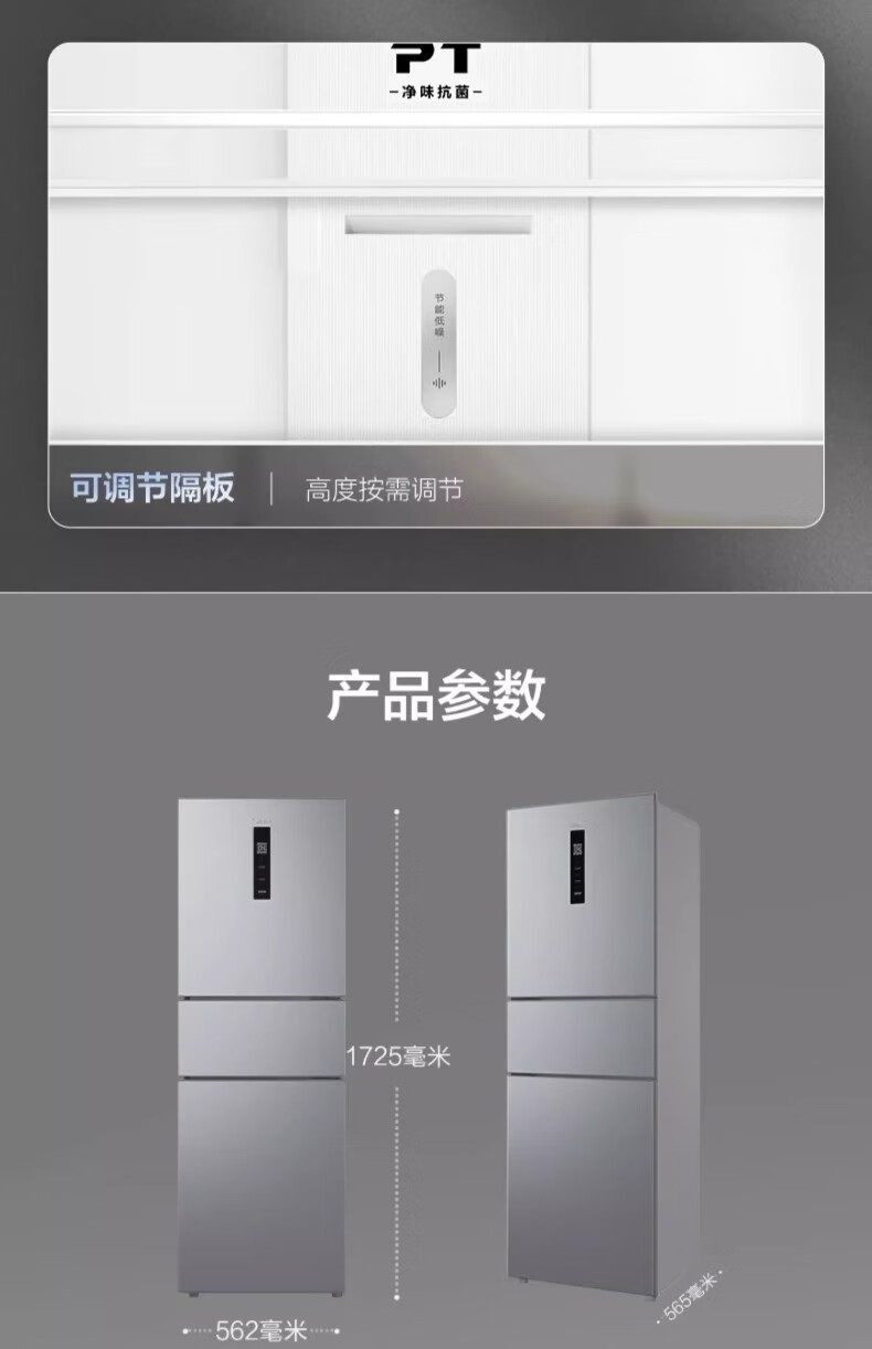 Midea 249 three-door refrigerator air-cooled frost-free frequency conversion first-class energy efficiency household small three-door magic machine large capacity household appliances small apartment medium-sized appliances MR-249WTPE