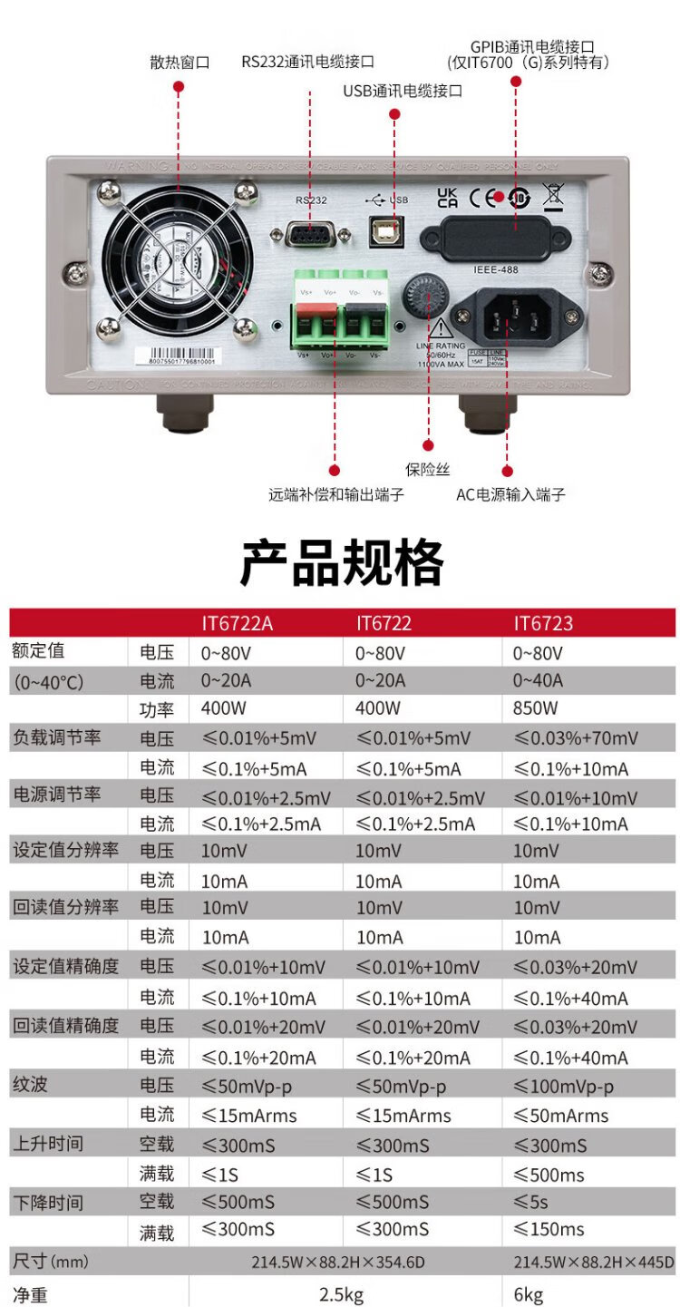 ITECH programmable high-power program-controlled adjustable switch high-precision DC regulated power supply high-voltage DC source IT6700H IT6721 (60V8A180W)