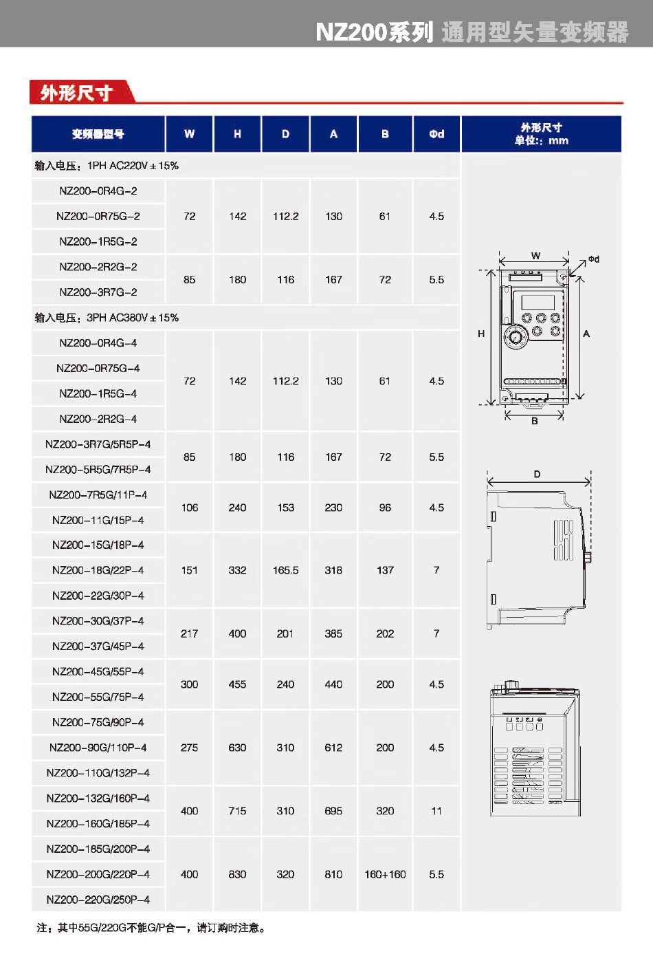Zhongchen inverter NZ200 series heavy-duty vector universal single-phase three-phase NZ200-1R5G-4 ZONCN NZ200-55P-4