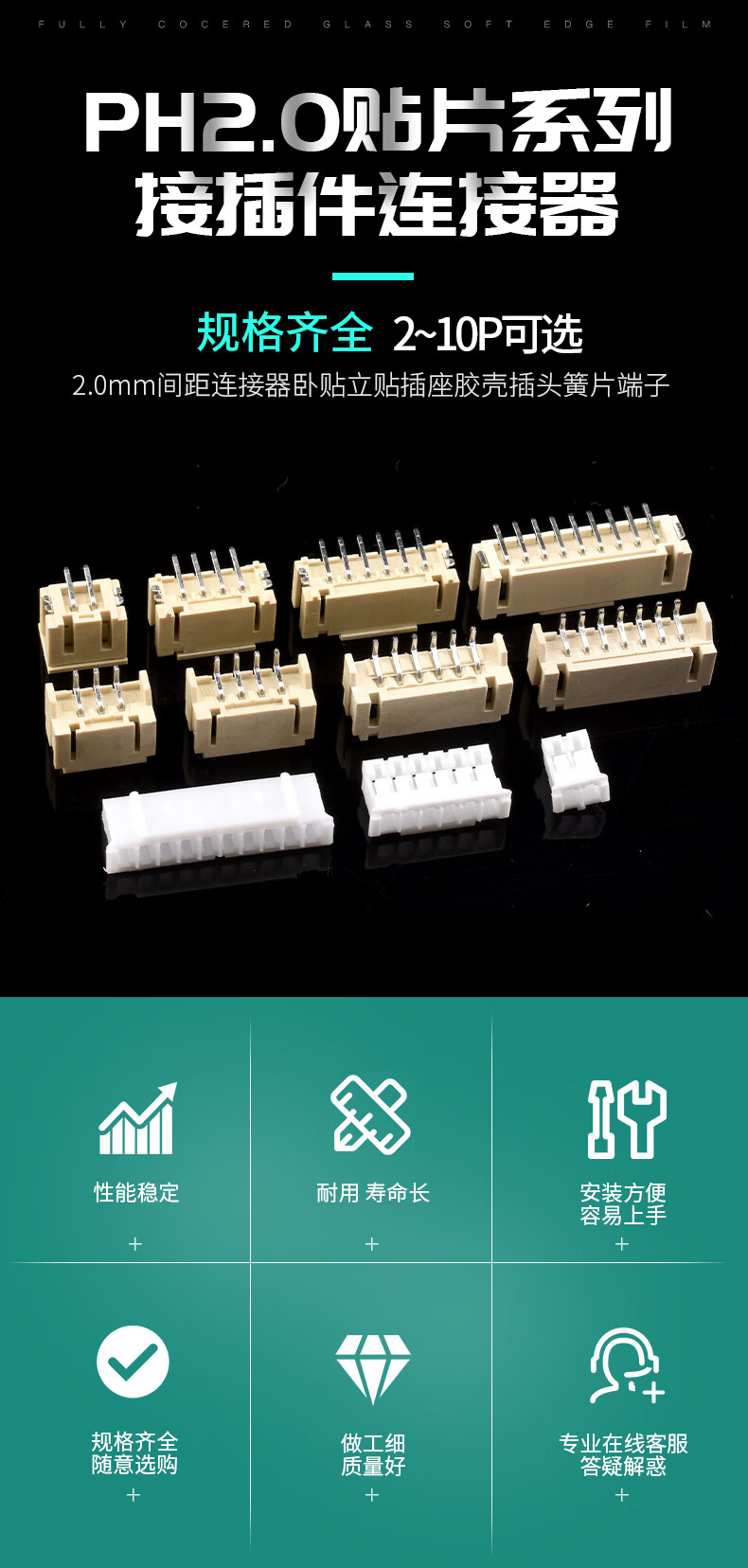 PH2.0 connector patch 2.0mm pitch connector horizontal and vertical socket plastic shell plug terminal PH2.0-6p plastic shell (50 pieces) No specifications