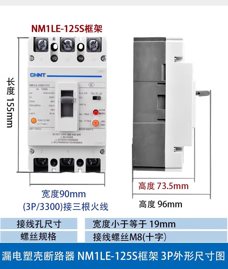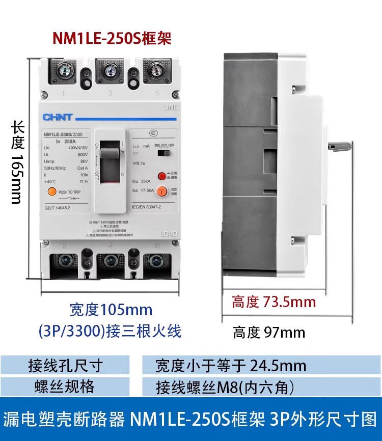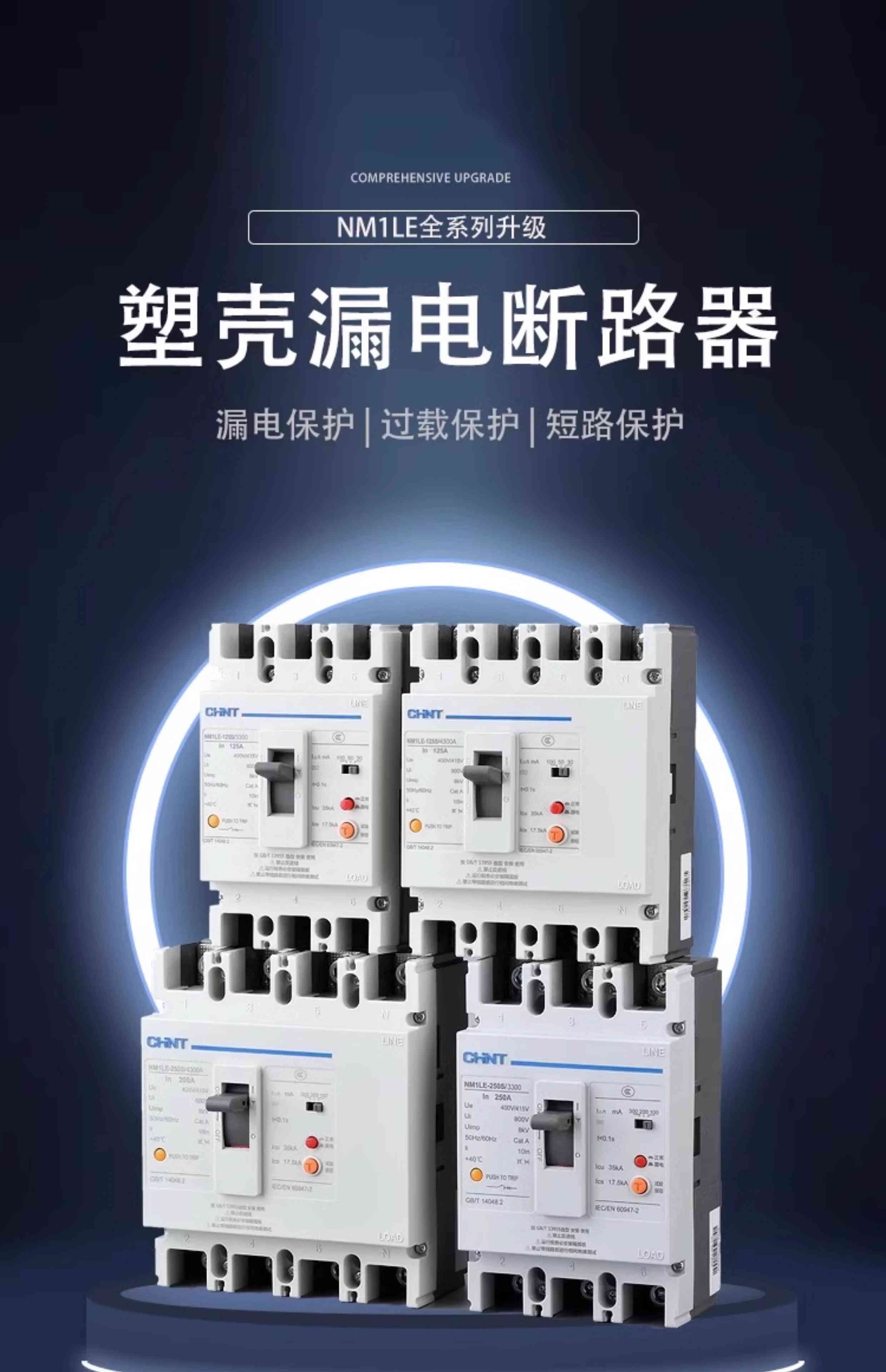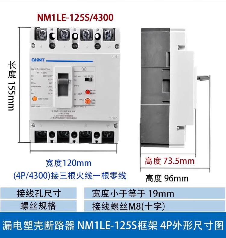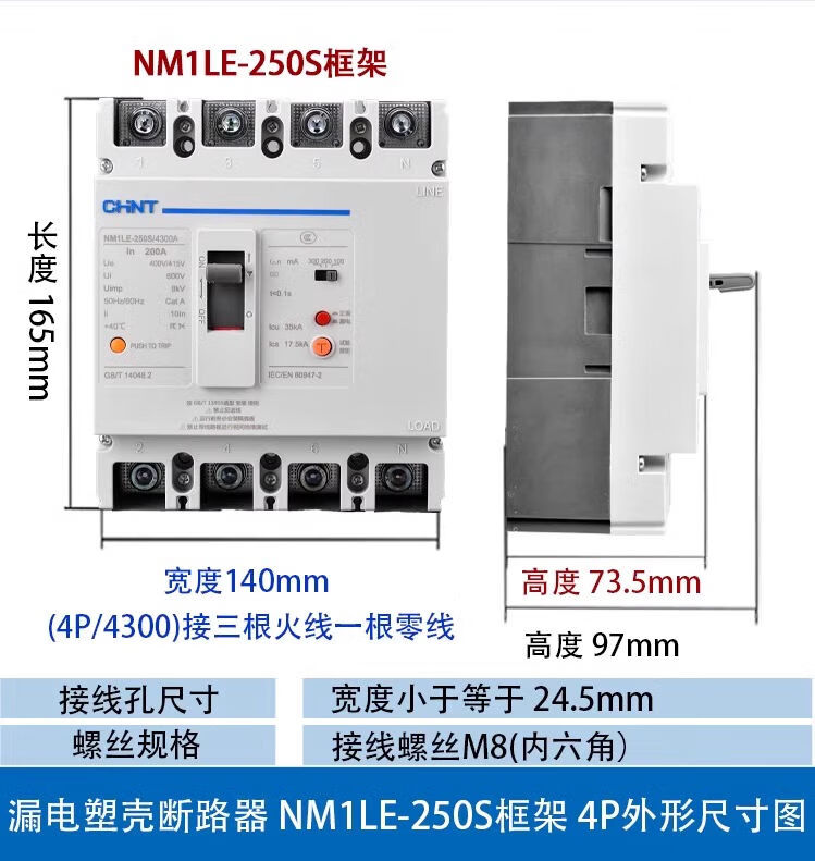 CHNT Chint plastic case leakage circuit breaker NM1LE three-phase four-wire leakage protector 125A 250A 400A 630A 630A 4p