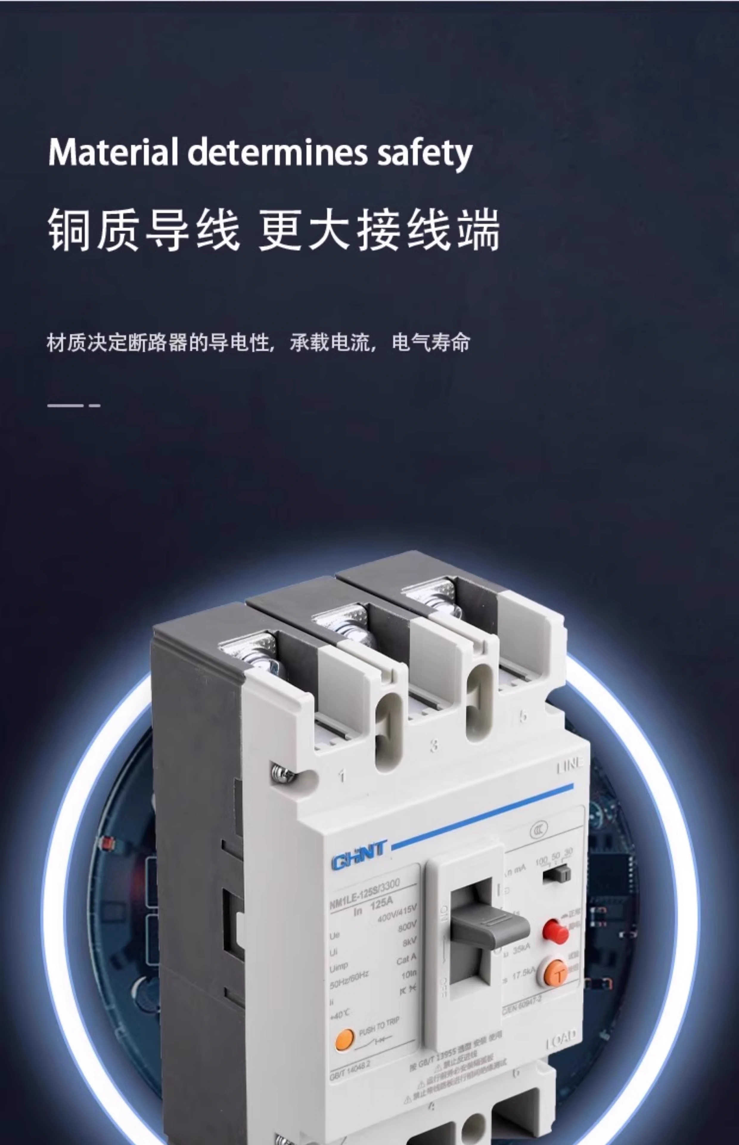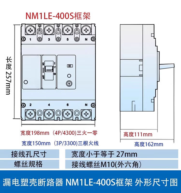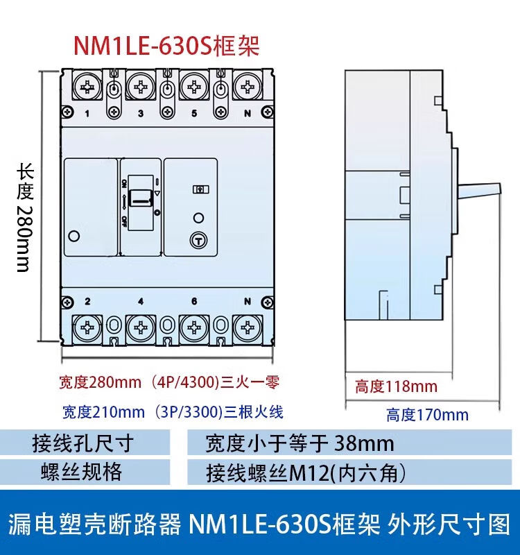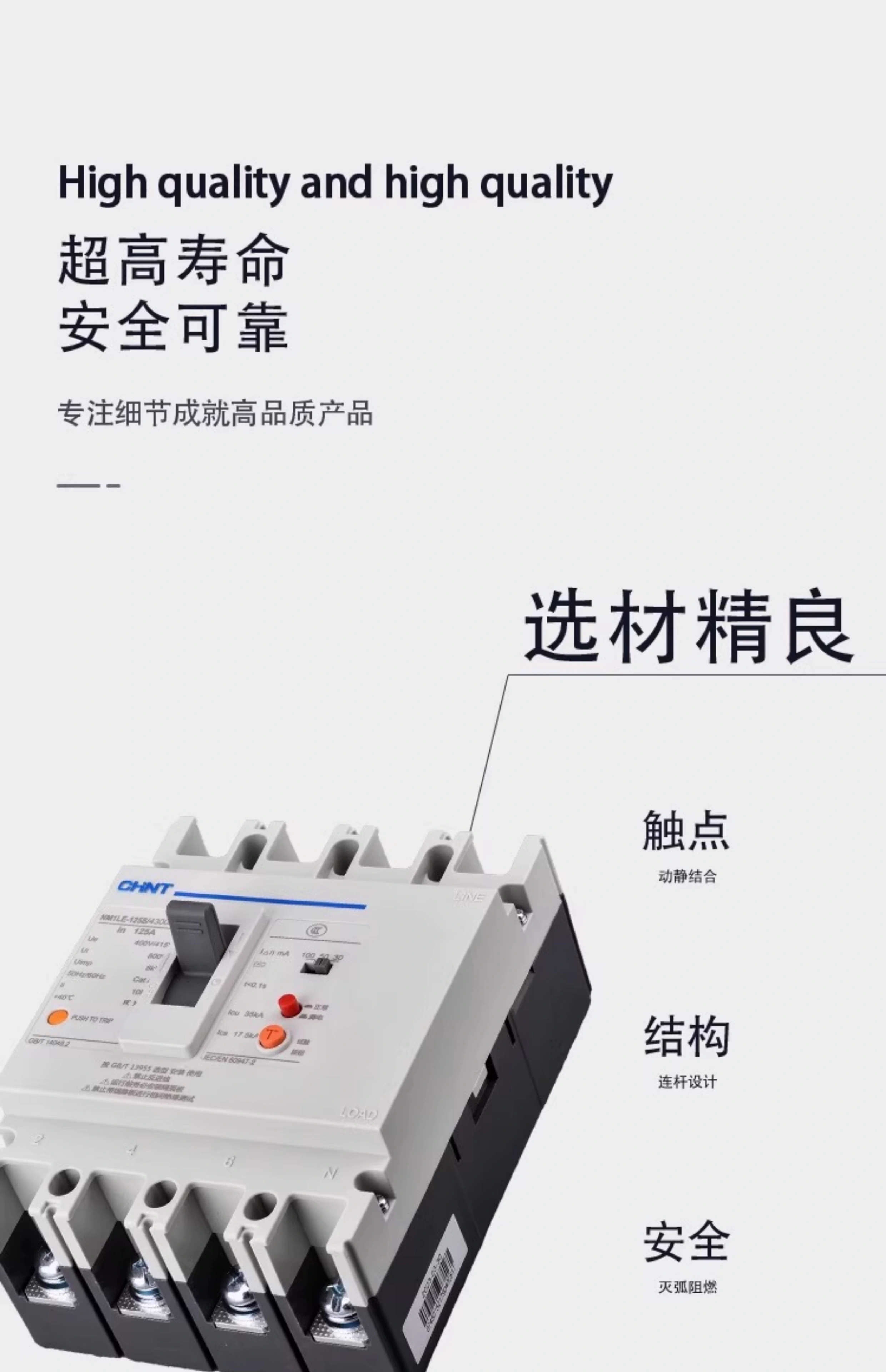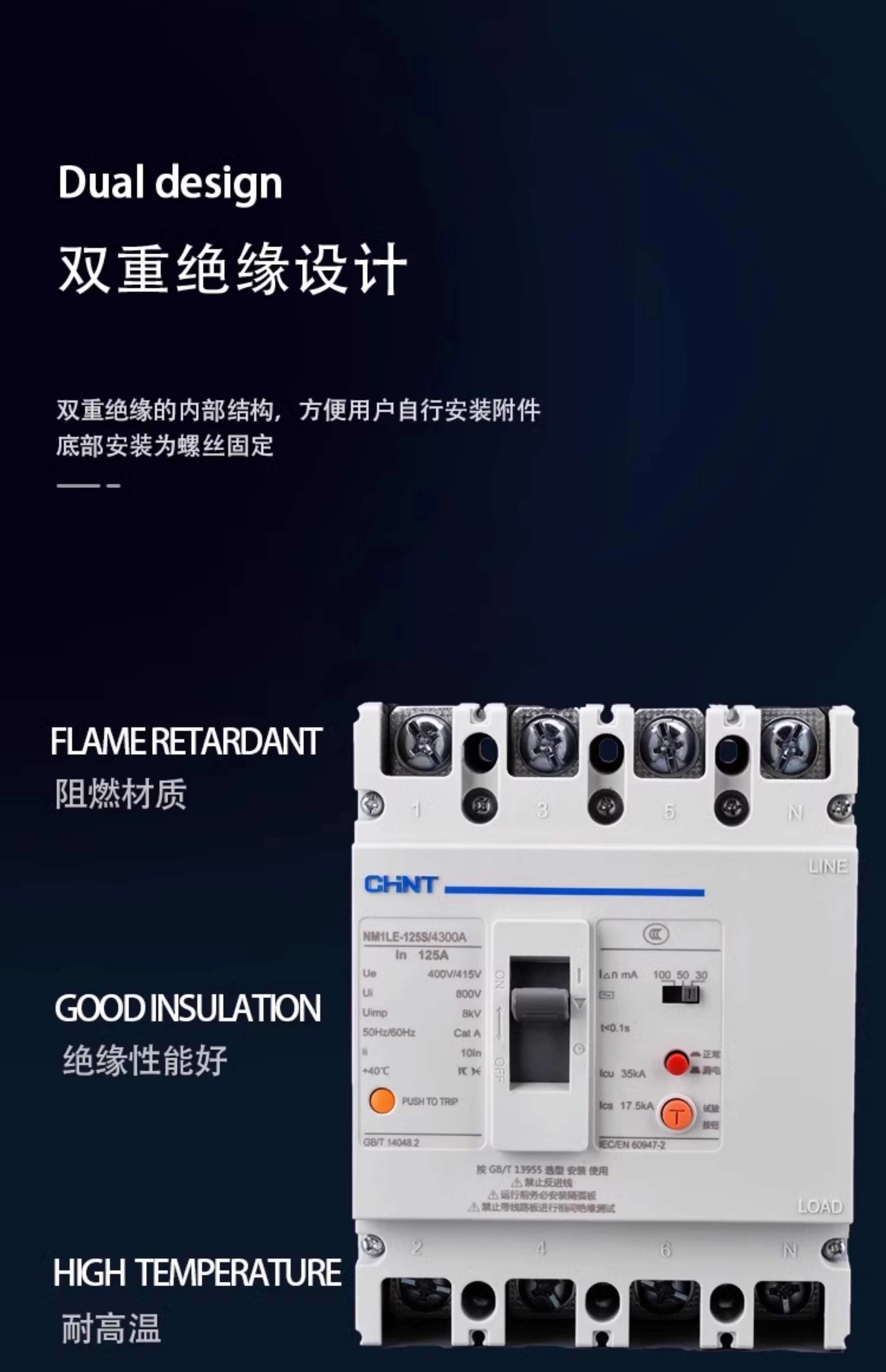 CHNT Chint plastic case leakage circuit breaker NM1LE three-phase four-wire leakage protector 125A 250A 400A 630A 630A 4p