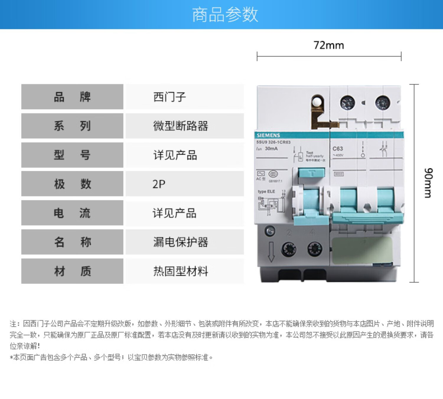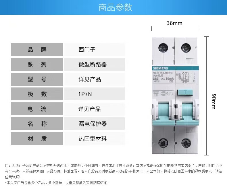 Siemens leakage circuit breaker 5SU9 leakage protection switch original supports inspection 16A 2P