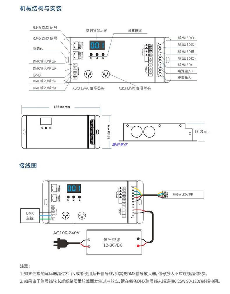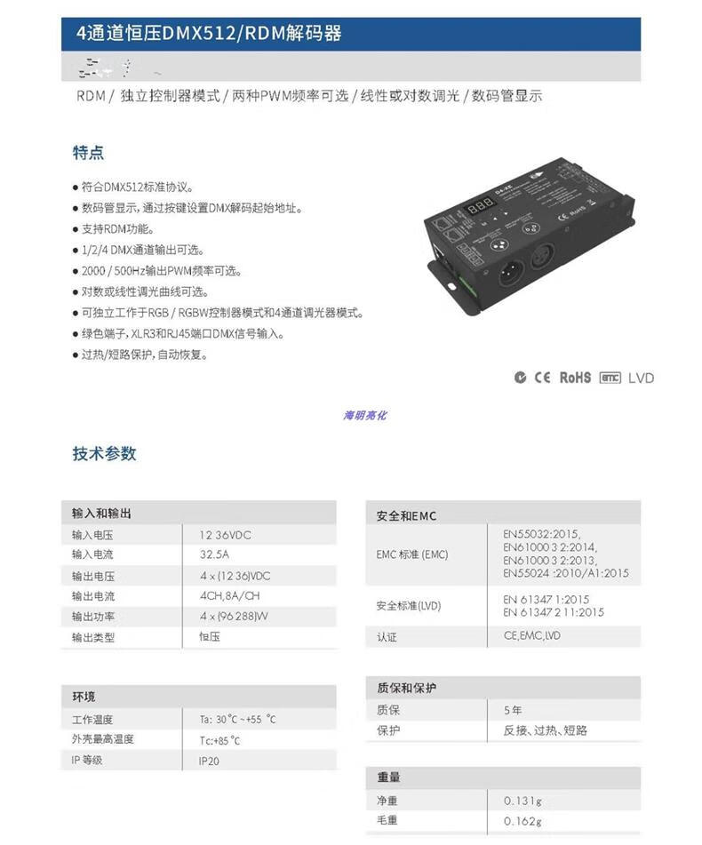 Constant voltage decoder controller LEDRGBRGBW can select digital tube LED decoder light strip frequency DMX512/three channels (RGB) 3*10A 1236V