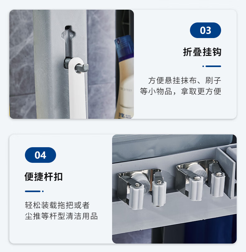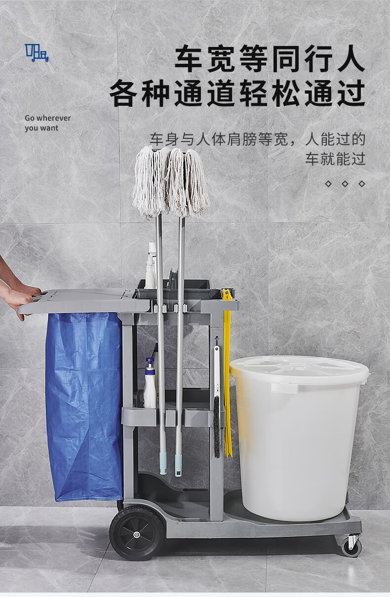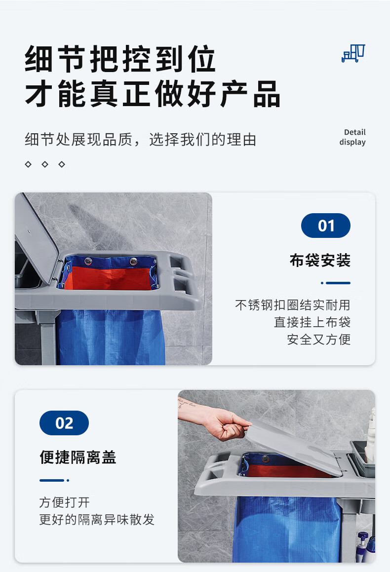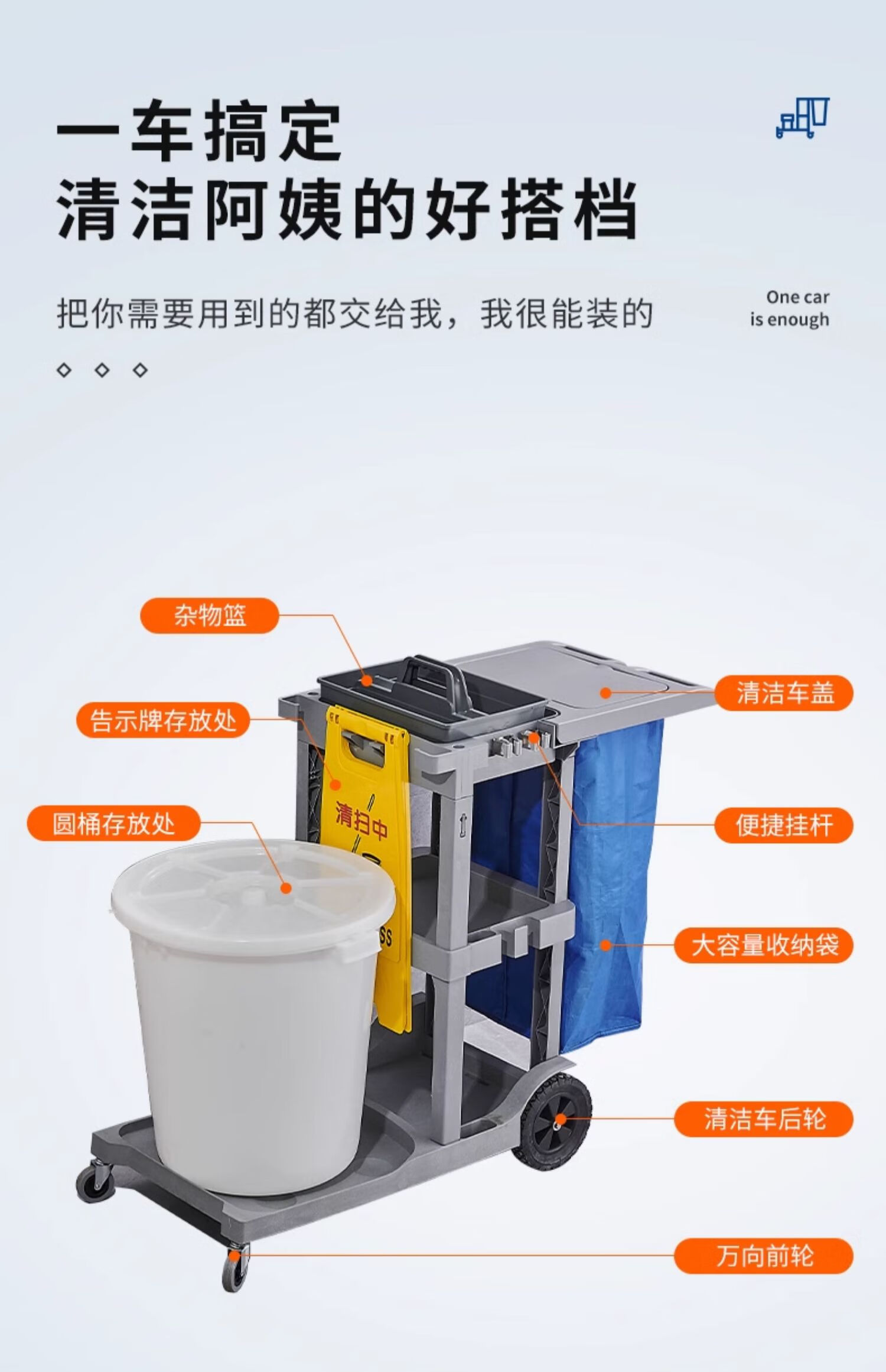 Special housekeeping cart for cleaning garbage and sanitation, multi-functional trolley, tool cart, linen cart, hotel cleaning cart, no cover, extra thick model with lifetime warranty