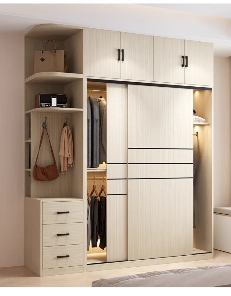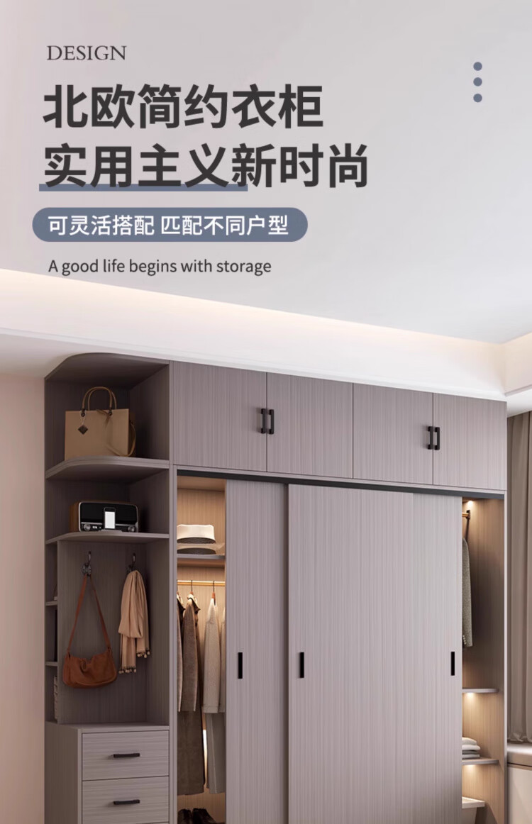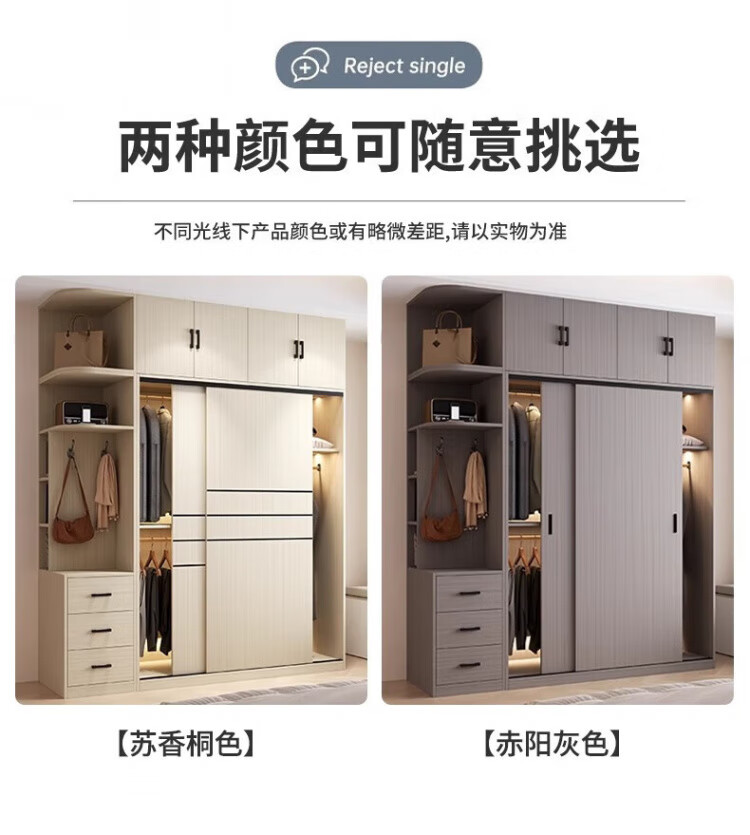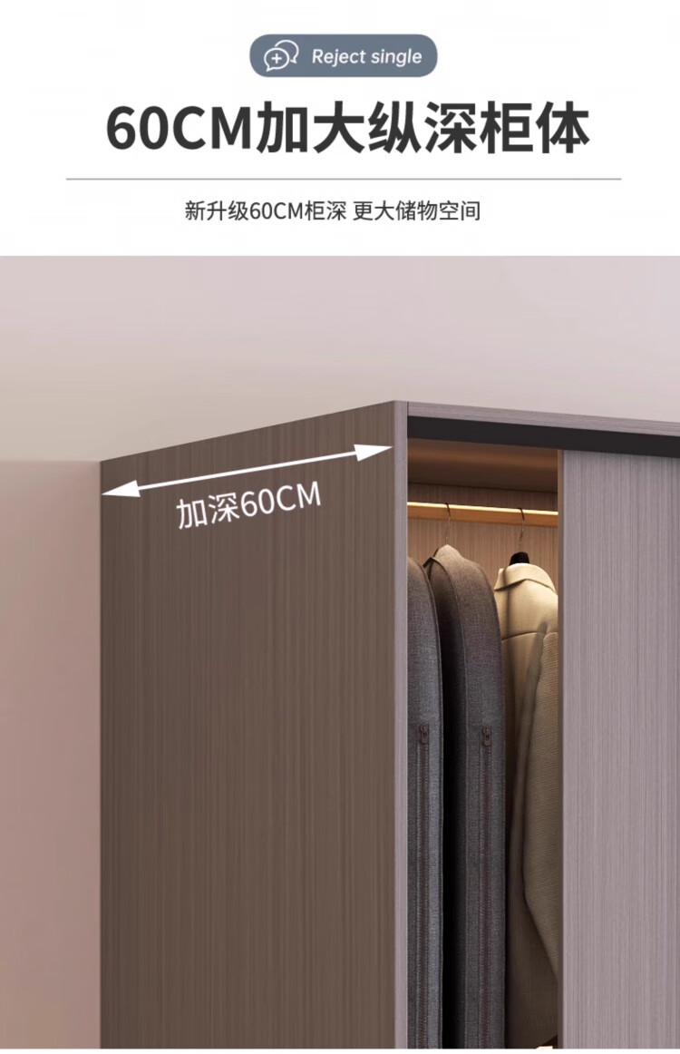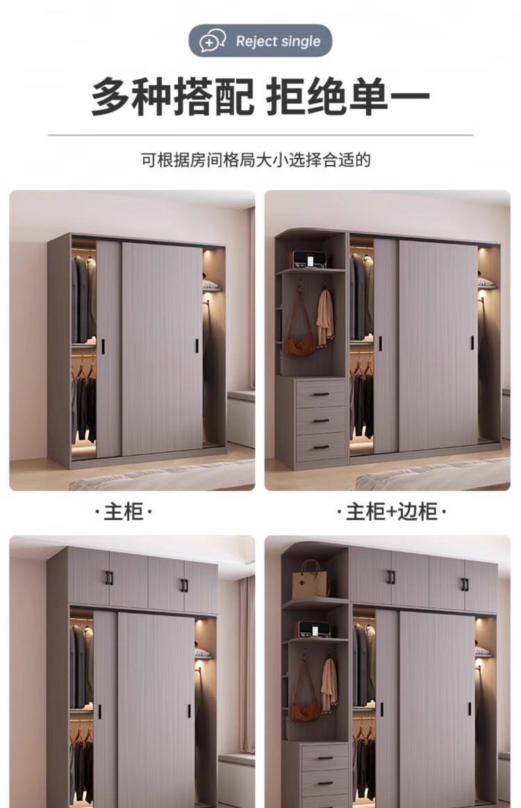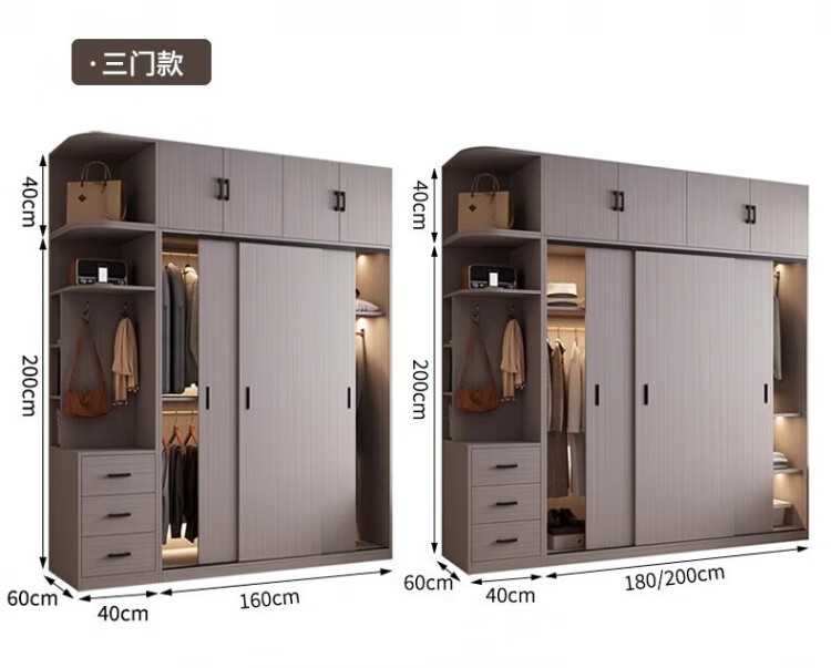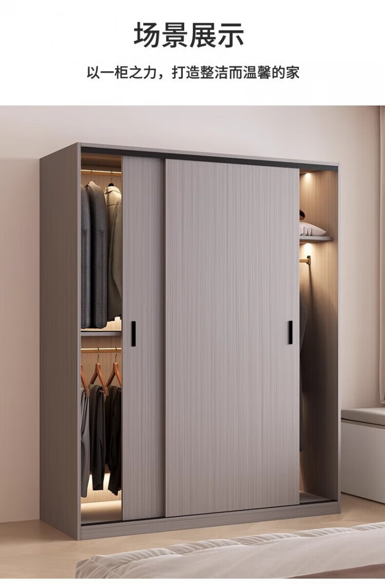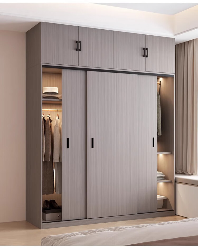 Haoxuan solid wood wardrobe home bedroom sliding door 2025 ecological board cabinet rental hanging wardrobe Chiyang gray 1.6m three-door main cabinet 60cm deep solid wood