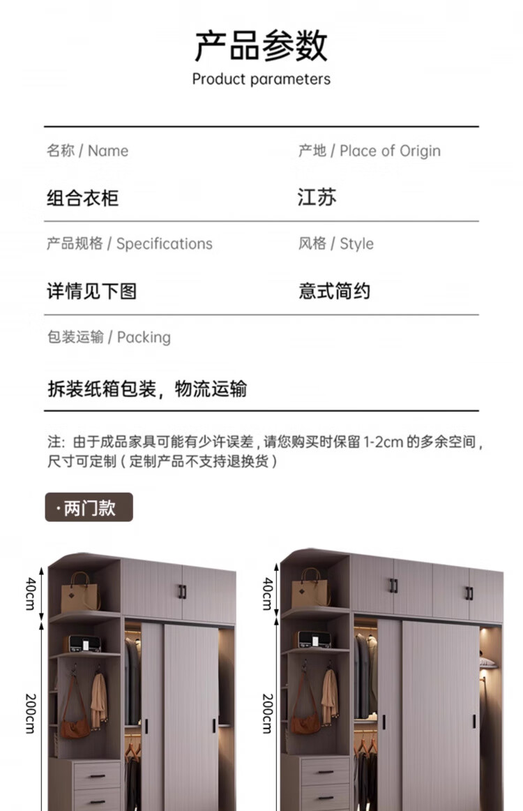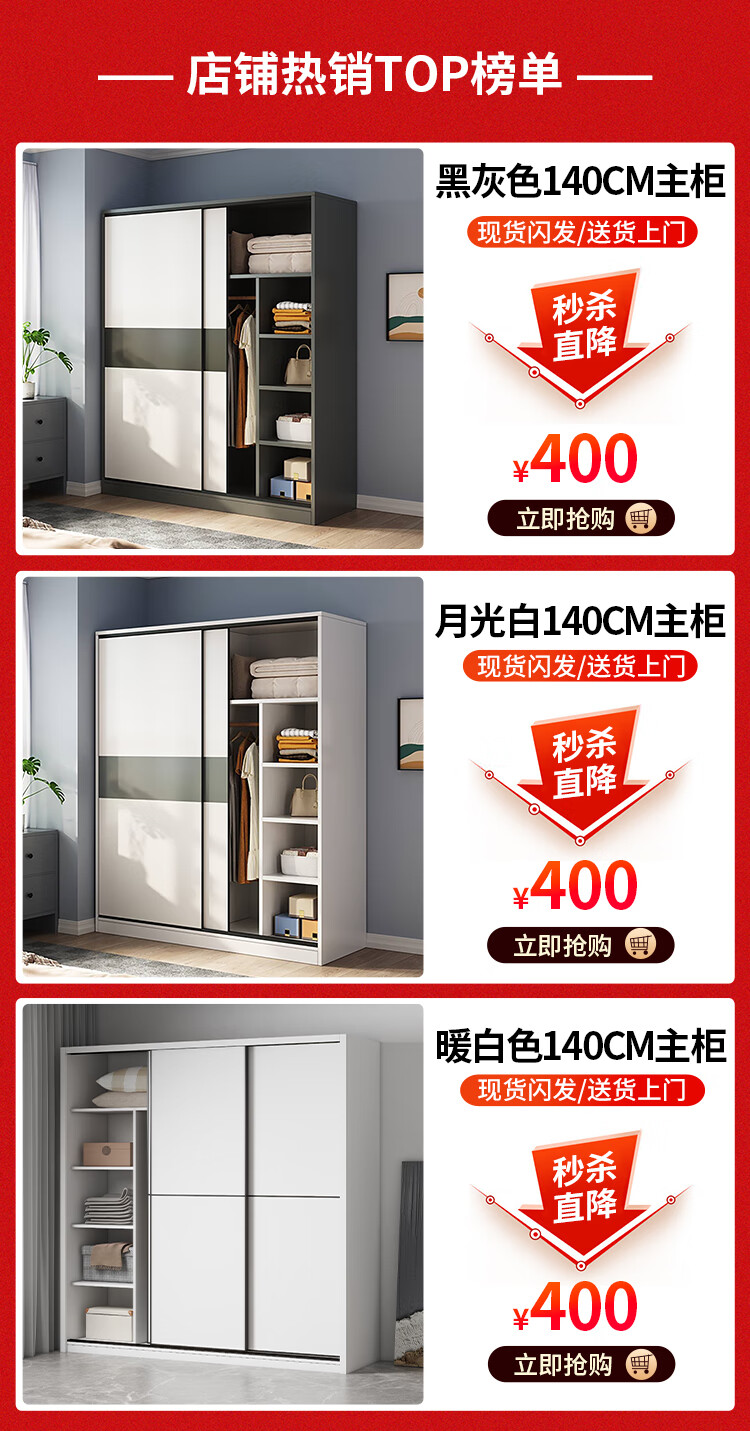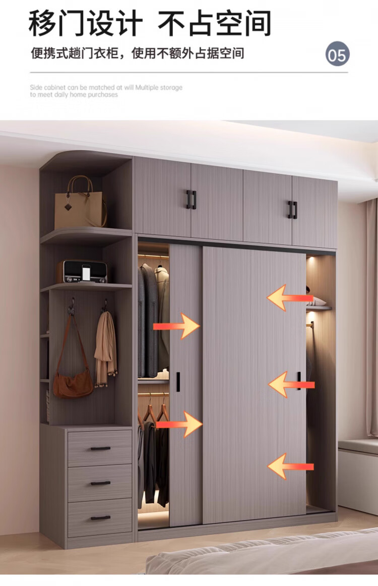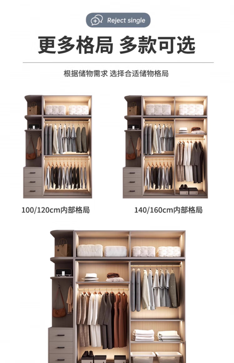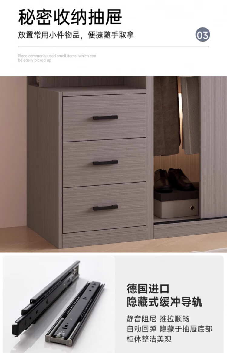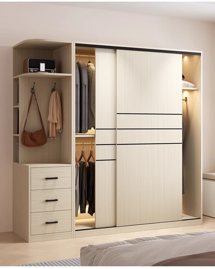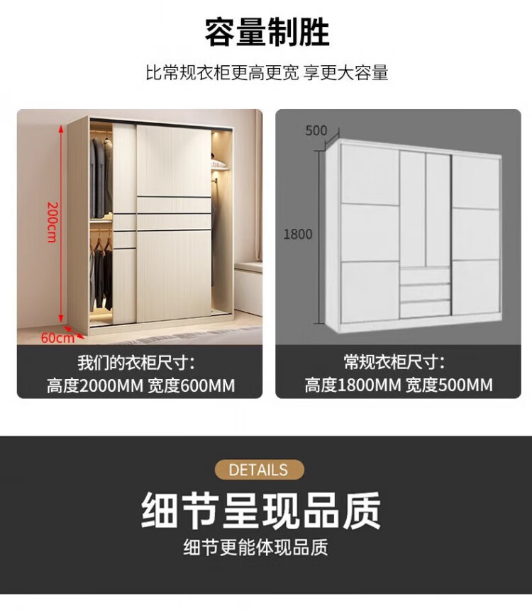 Haoxuan solid wood wardrobe home bedroom sliding door 2025 ecological board cabinet rental hanging wardrobe Chiyang gray 1.6m three-door main cabinet 60cm deep solid wood