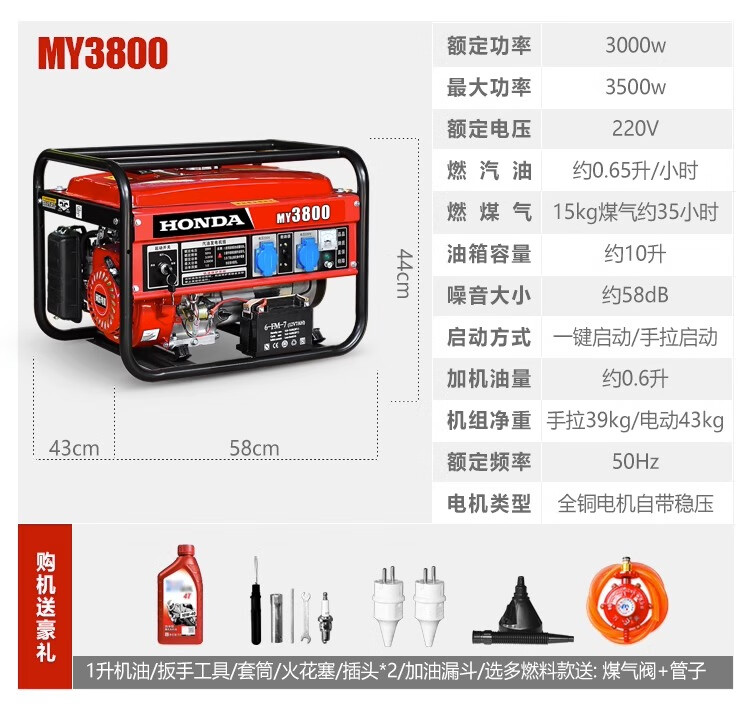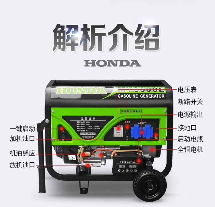 HONDA imported Honda gasoline generator outdoor camping 220V/380V household small variable frequency silent portable charging 800W manual gasoline 220V 2-stroke