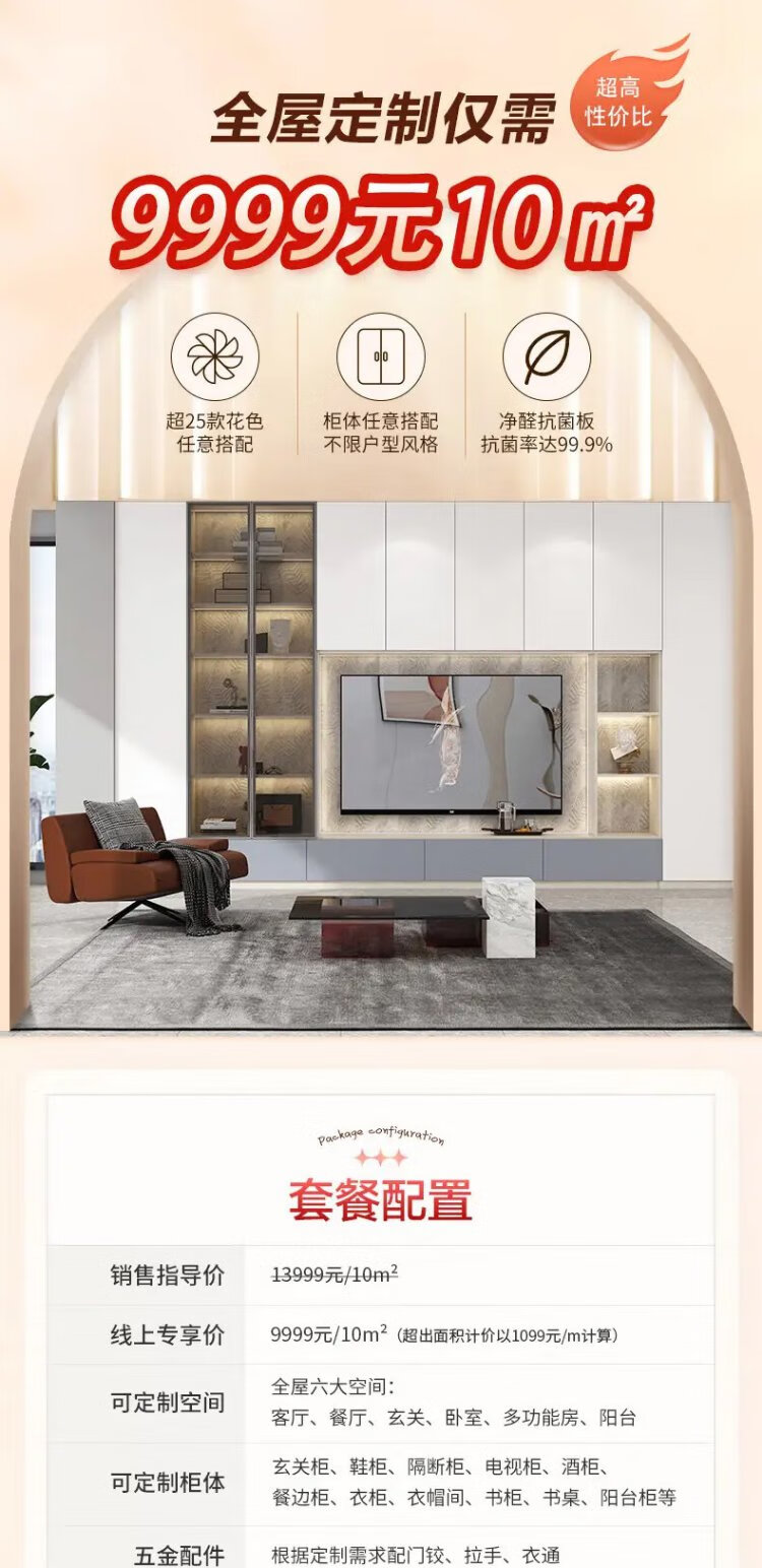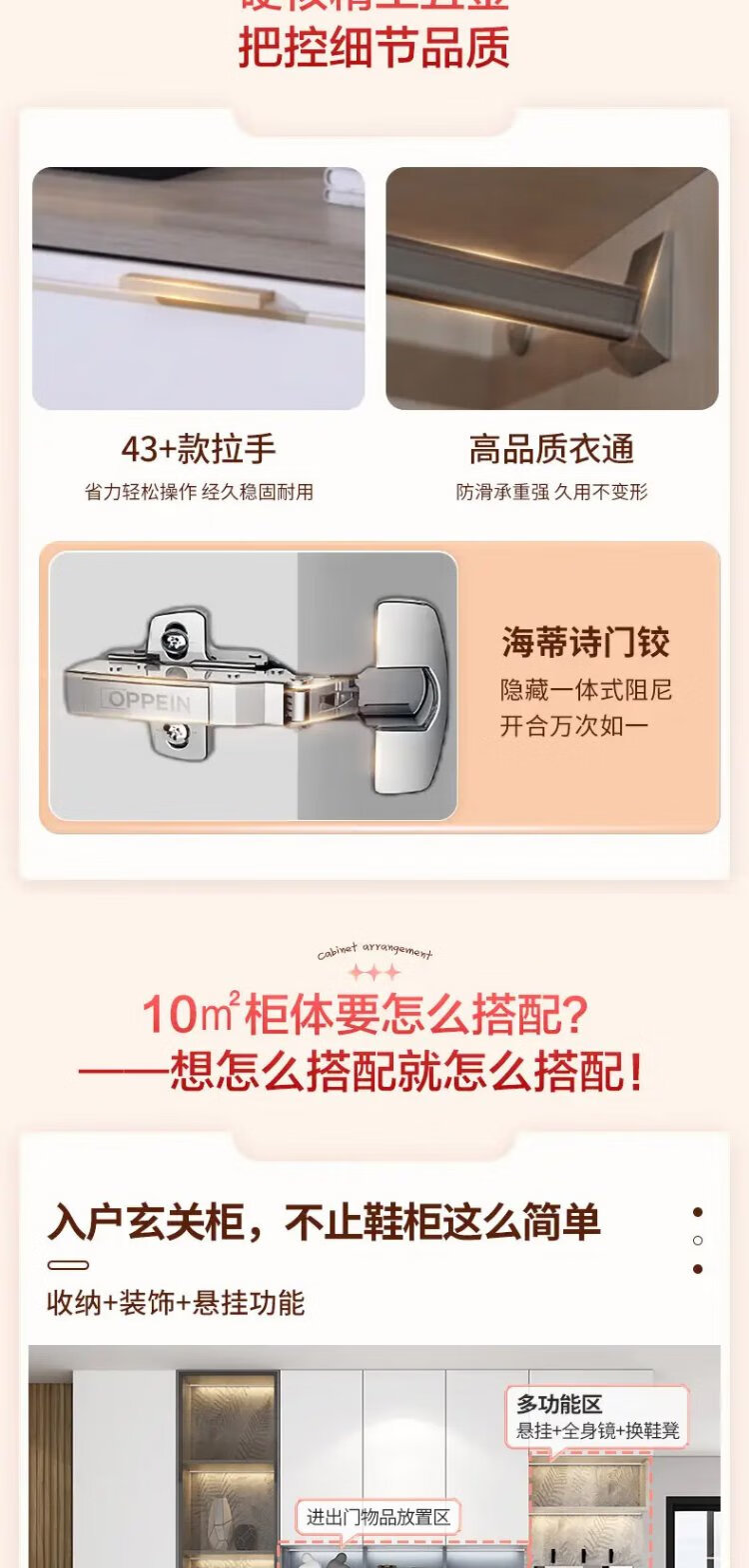 Oppein Xuanniao Wardrobe Customized Modern Minimalist Storage Cabinet Customized Living Room Cabinet Customized Six Spaces Whole House 9999/10 Package Price