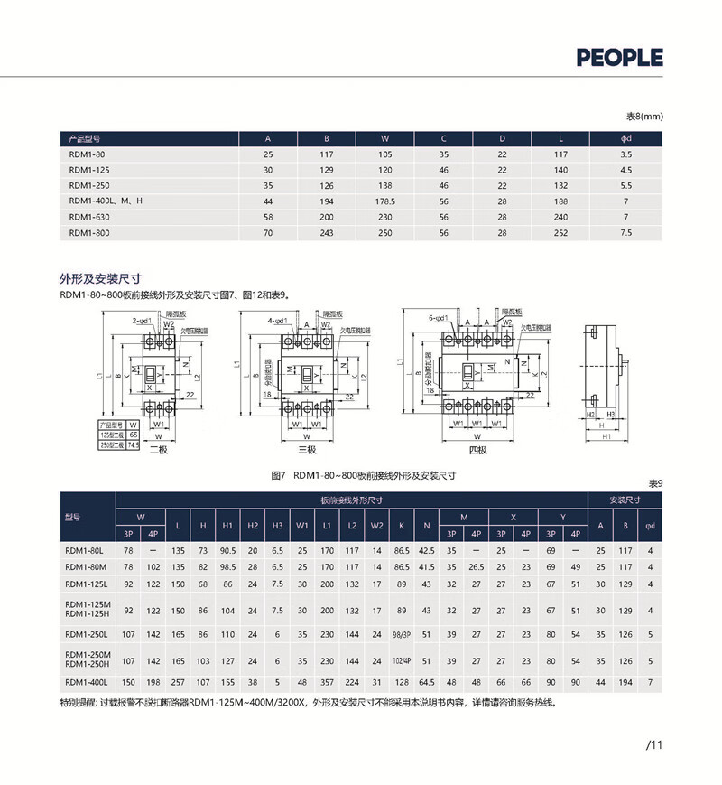 People's Electric PEOPLE transparent molded case circuit breaker RDM1-80 125 250 400 630L3300 430 RDM1-125L 100A transparent case 4300