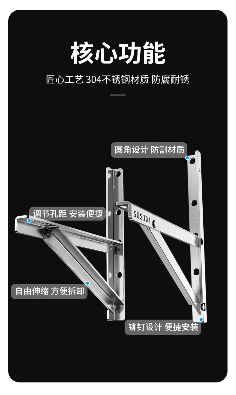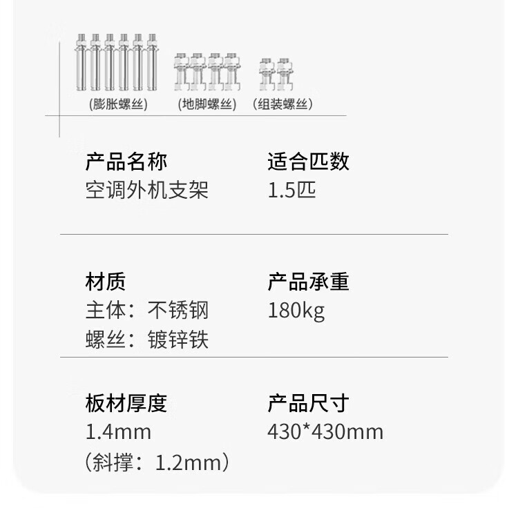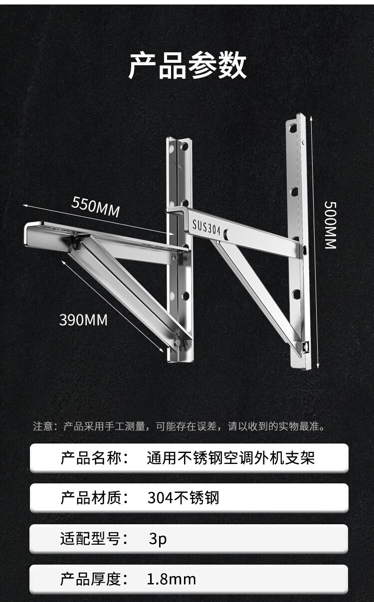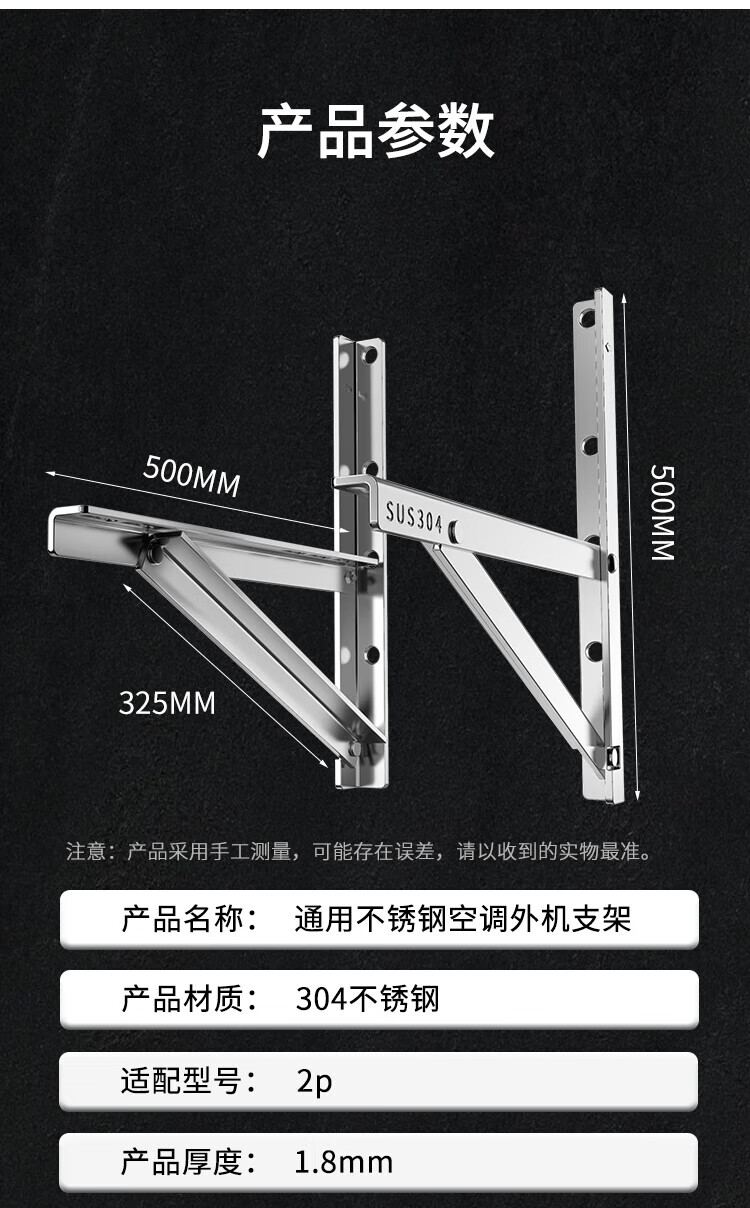 Xinyingzhi stainless steel thickened air conditioner outdoor unit bracket outdoor unit air conditioner rack 304 201 stainless steel air conditioner bracket universal outdoor unit outer frame 1.5p thickened stainless steel + matching screws