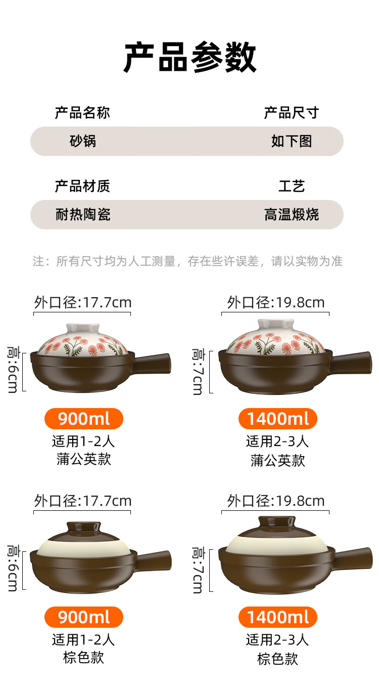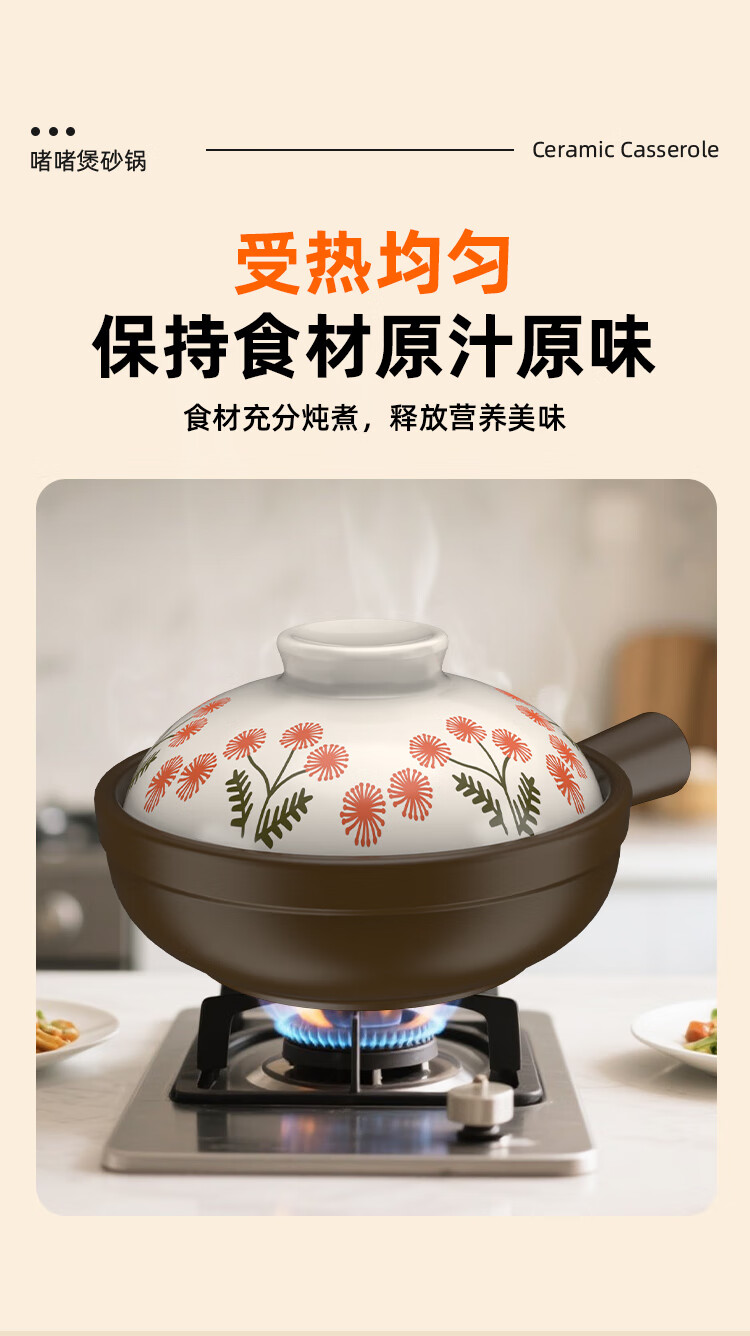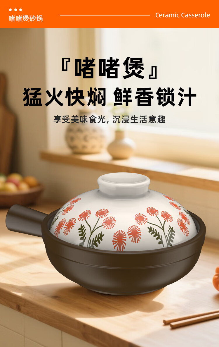 Kangshu Jie Jie Clay Pot Cantonese Style Claypot Rice Special Pot Commercial Gas Stove Open Fire Can Be Used in a Small Casserole without Cracking Dandelion Style Jie Jie Clay Pot Suitable for 1-2 People 900ml