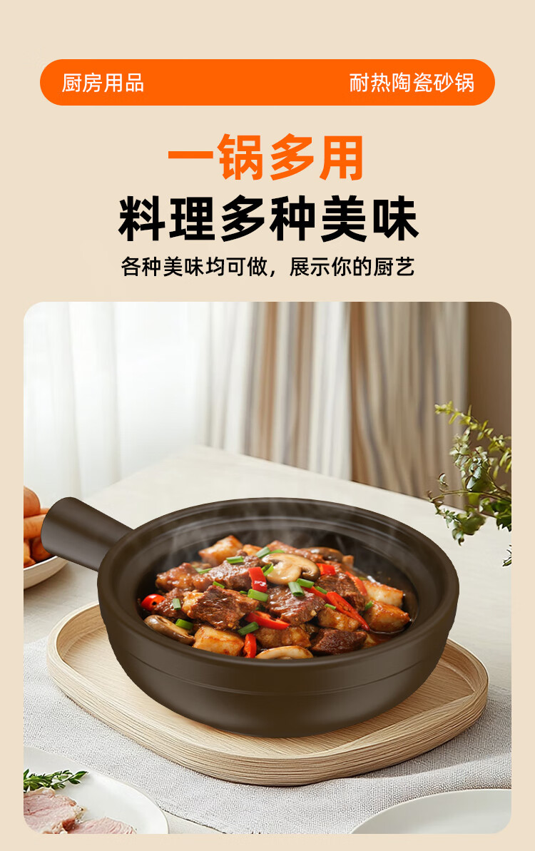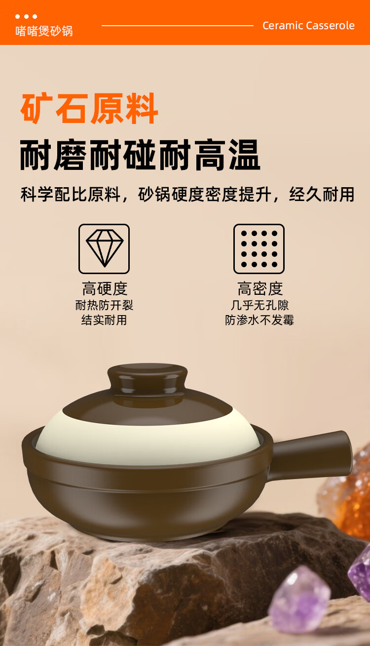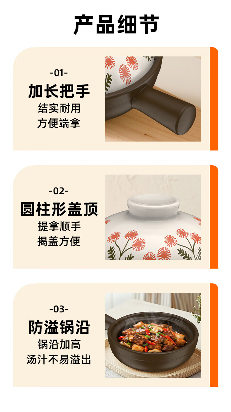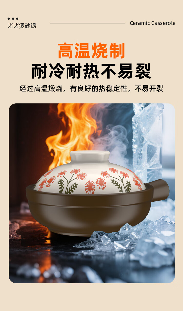 Kangshu Jie Jie Clay Pot Cantonese Style Claypot Rice Special Pot Commercial Gas Stove Open Fire Can Be Used in a Small Casserole without Cracking Dandelion Style Jie Jie Clay Pot Suitable for 1-2 People 900ml