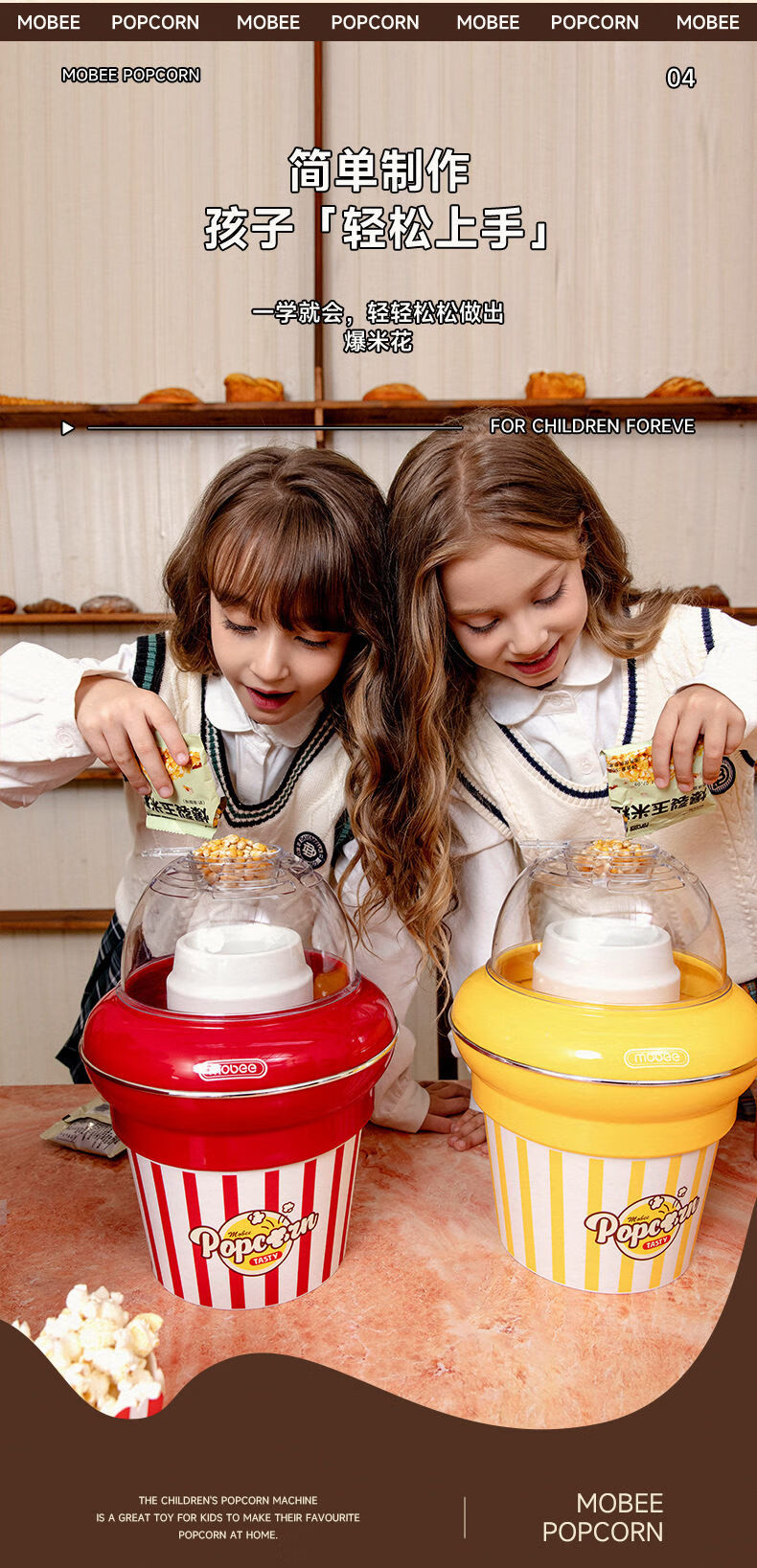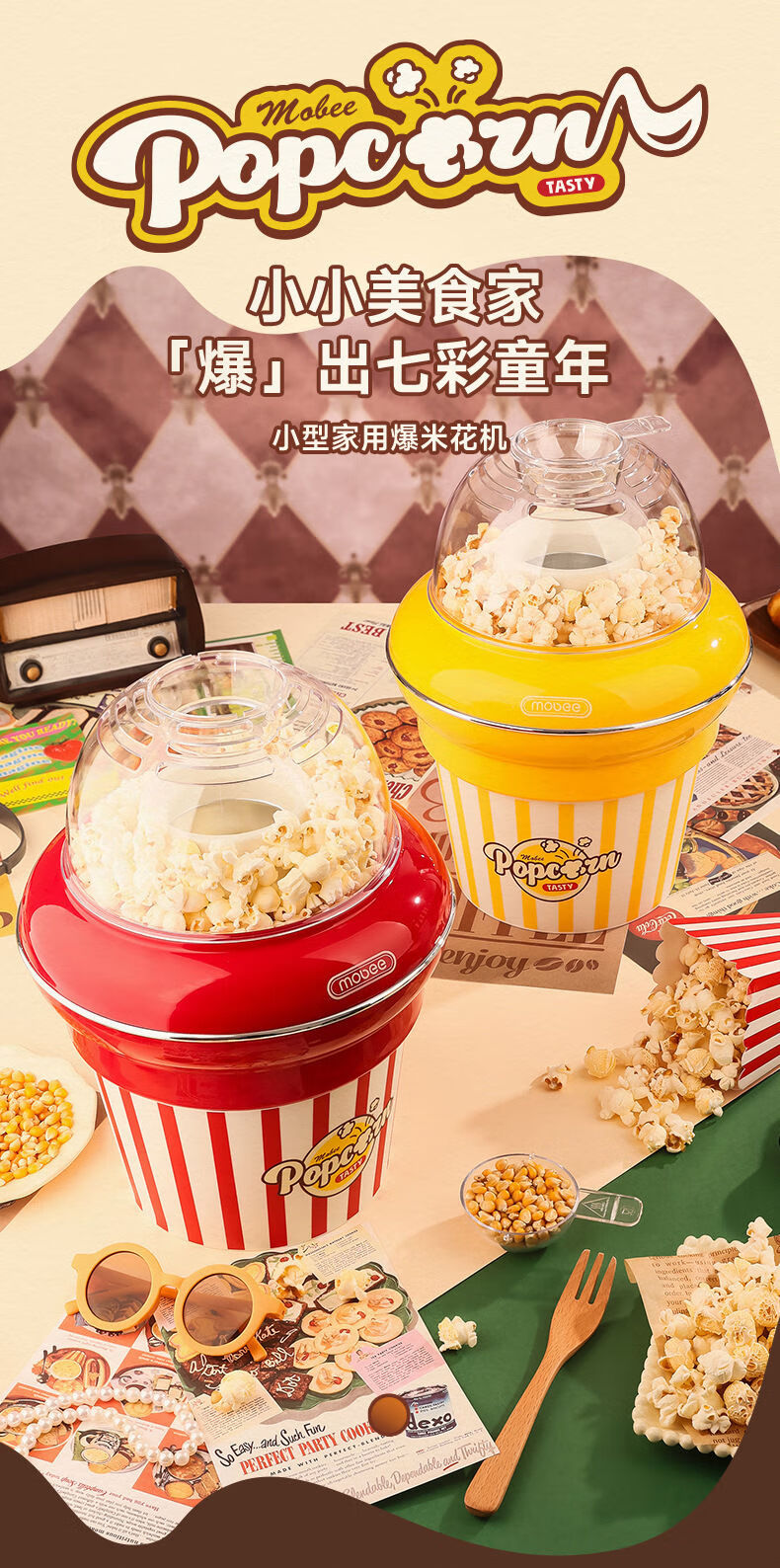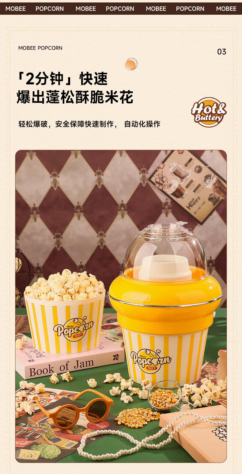 Pupan customized mobee popcorn machine children's DIY household fully automatic mini small popcorn machine birthday gift marshmallow machine