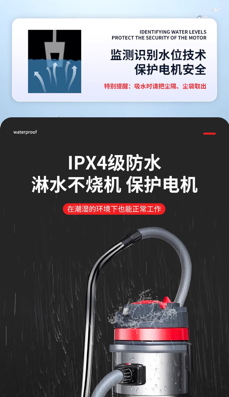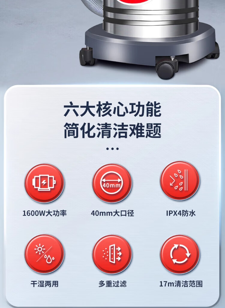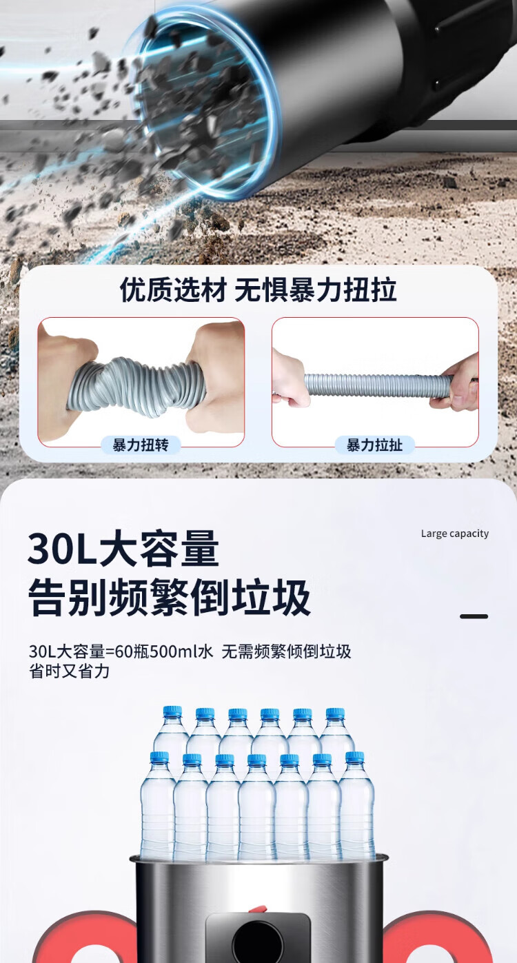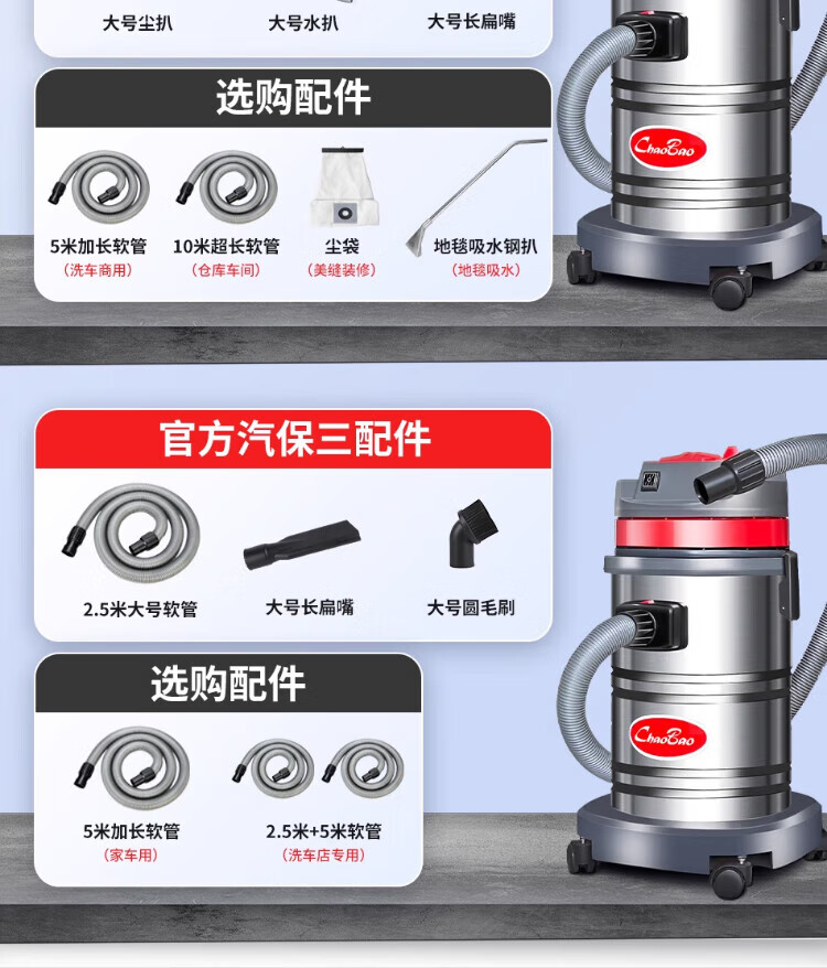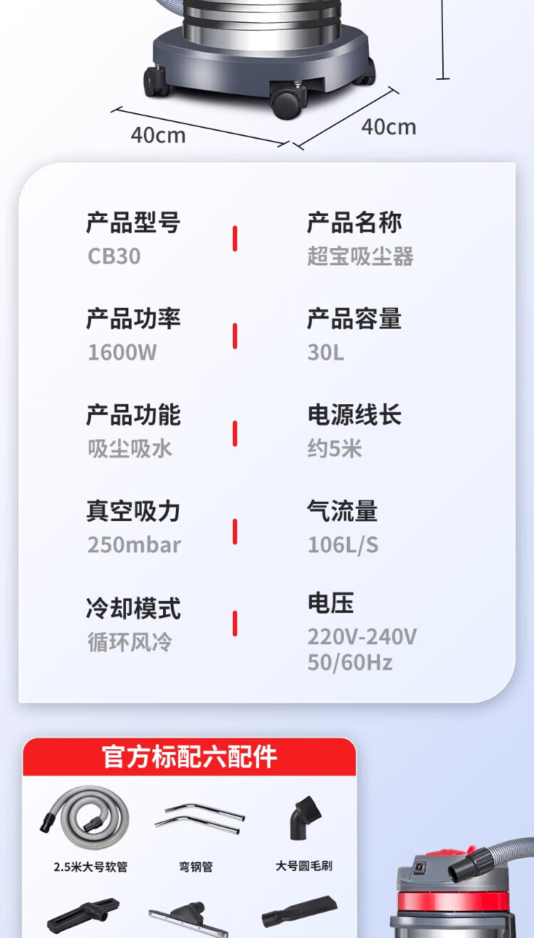 Baiyun Chaobao Clean CB30 liter vacuum cleaner for home, commercial, large suction, industrial vehicle, high power 1600W, decoration beauty seam land reclamation, dry and wet dual-use powerful water absorption dust collector Chaobao CB30 standard upgrade and enhanced version