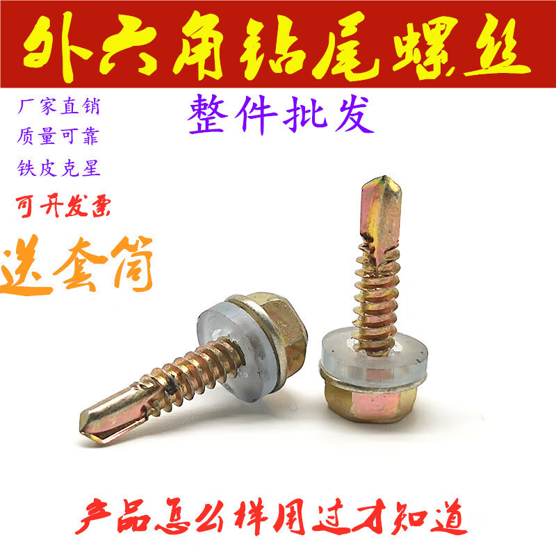 FHJQB external hexagon drill tail screws, color steel tile dovetail self-drilling self-tapping screws, iron sheet screws, whole box of iron sheet wire, 20 mm long (full box of 7000 pieces), 10 sleeves included