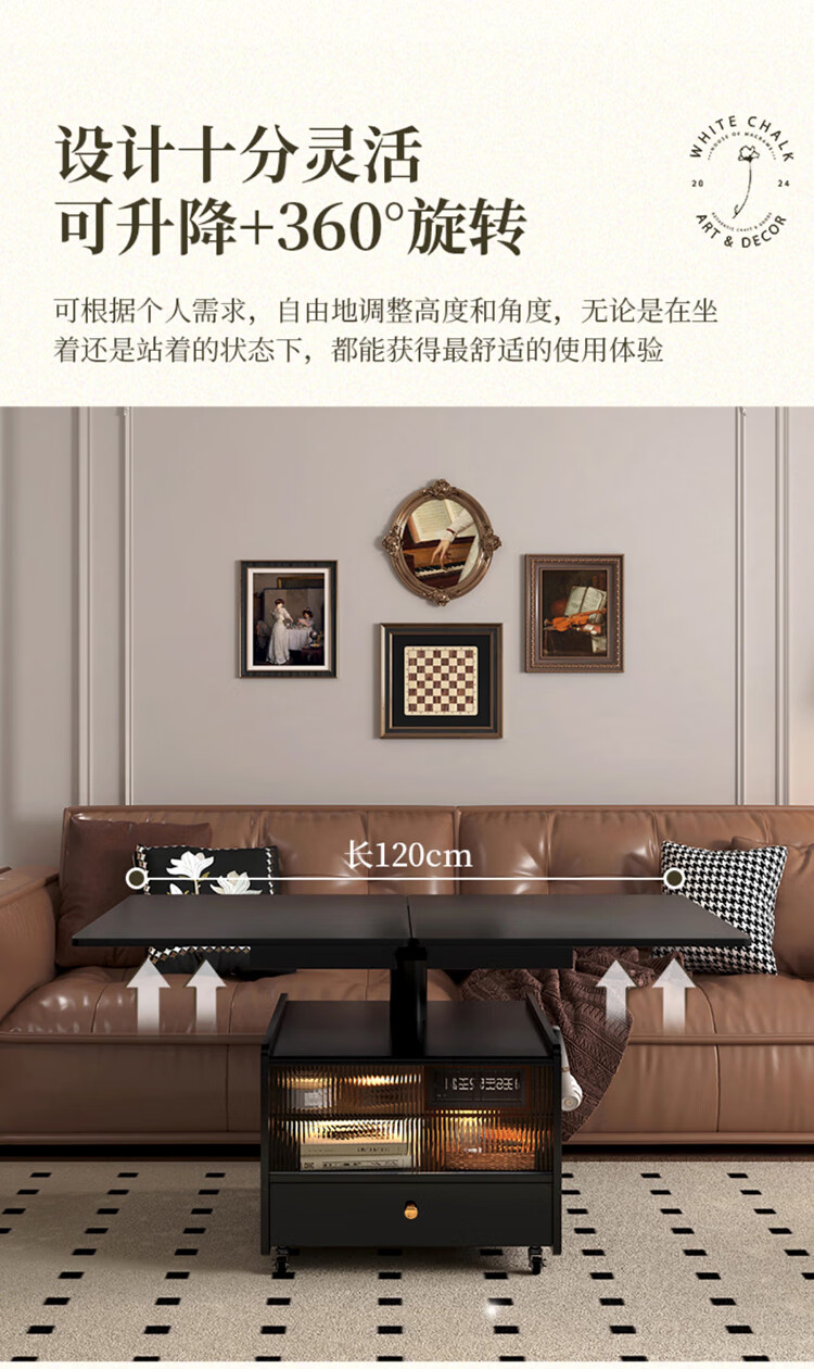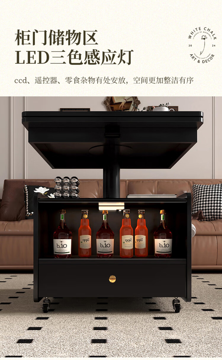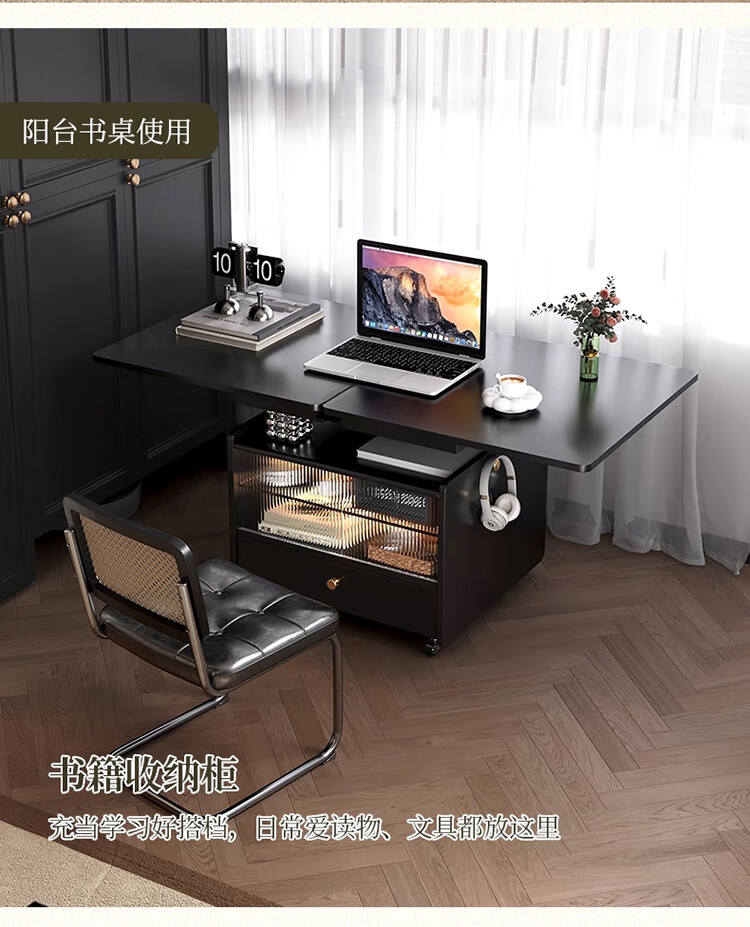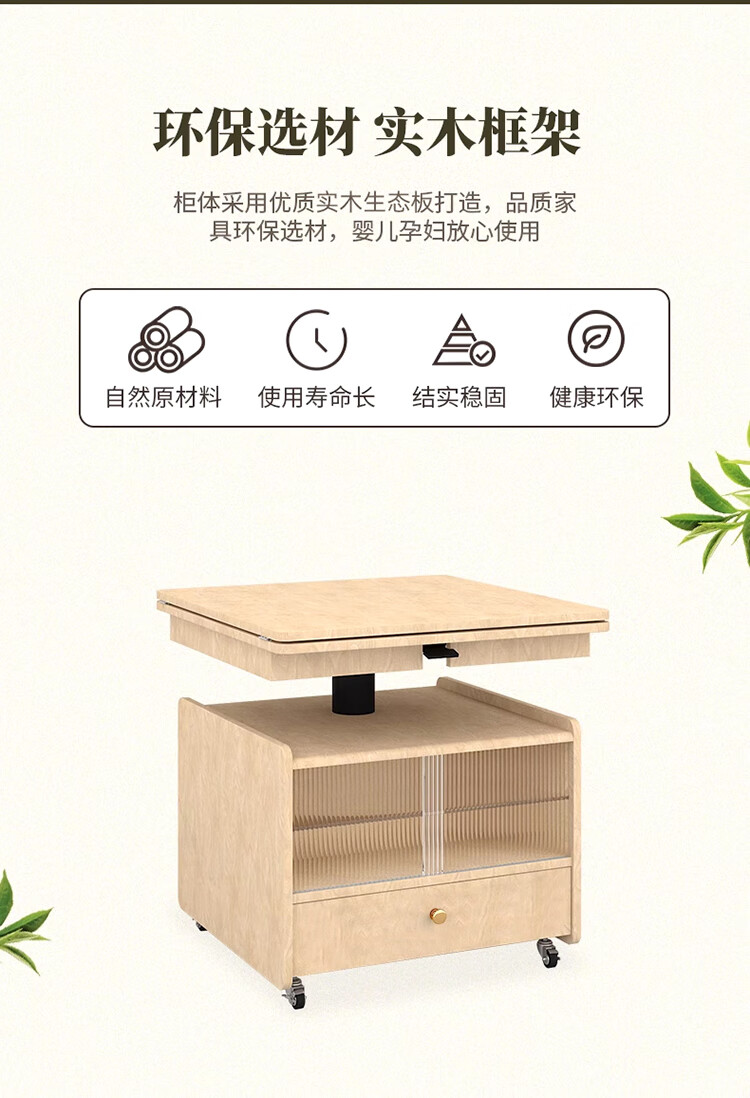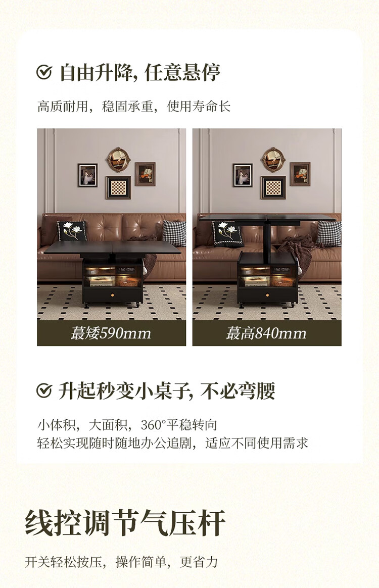 Mimude solid wood retro lifting coffee table living room movable sofa side table side cabinet modern simple trolley folding dining table black (excluding hooks)