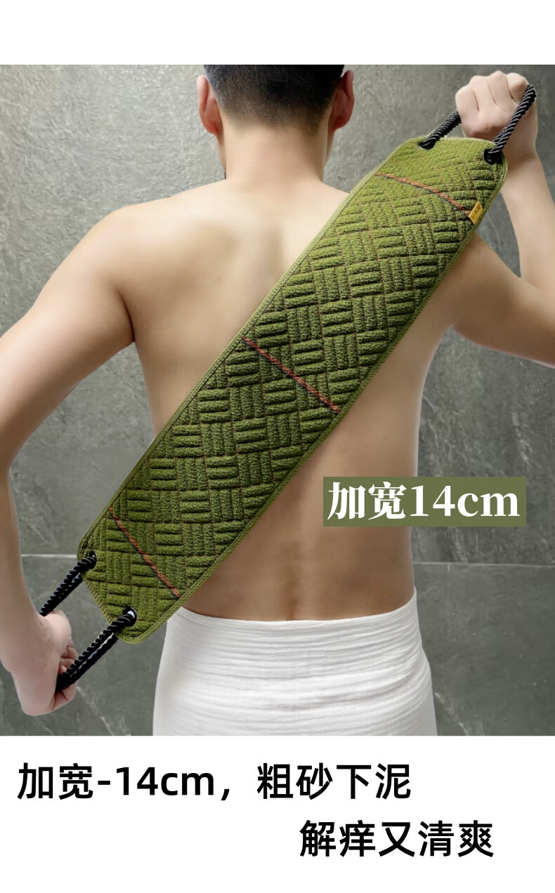 Kaooseen widened back rub towel for men, special bath towel, strong mud rub artifact, coarse sand double-sided long strip for back rub, new upgrade, thick and fine double sand rub back rub towel, green