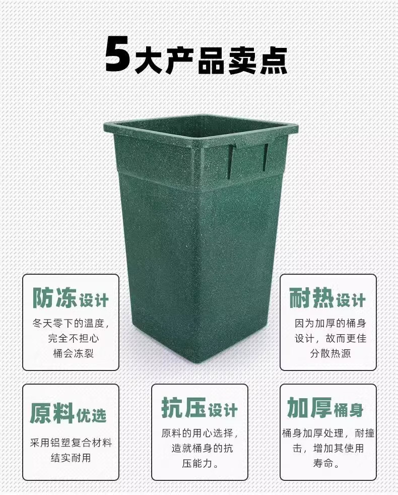 Trash can liner outdoor square aluminum plastic sanitation peel shell box inner barrel without lid classification large trash can tube aluminum plastic 25*31*43