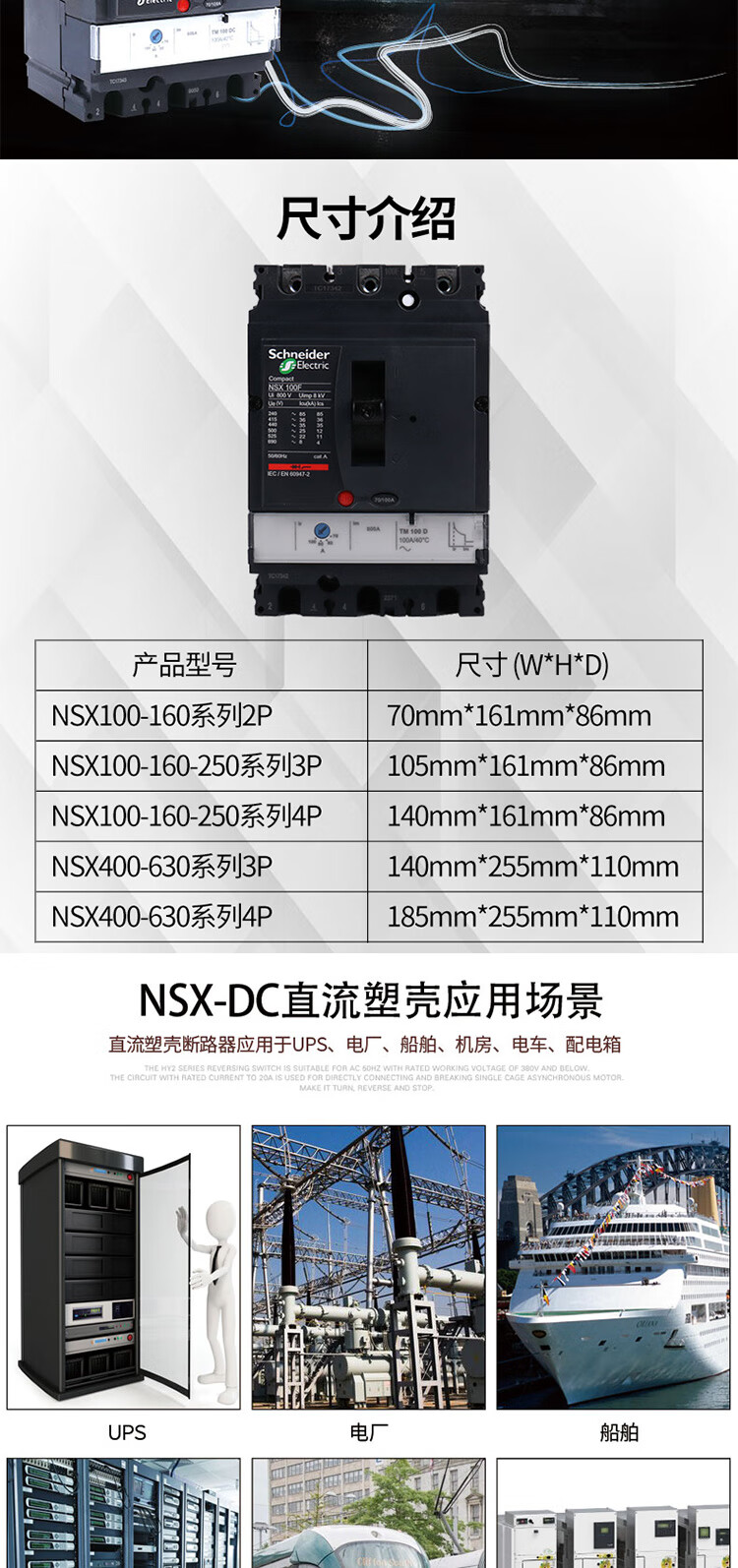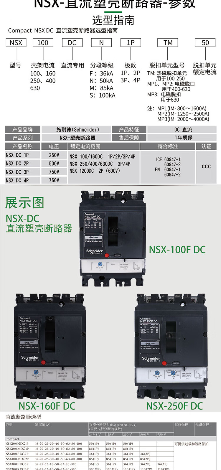 Schneider Electric DC circuit breaker NSX-DC100A250A battery UPS air conditioner main switch 2P 400A 3P