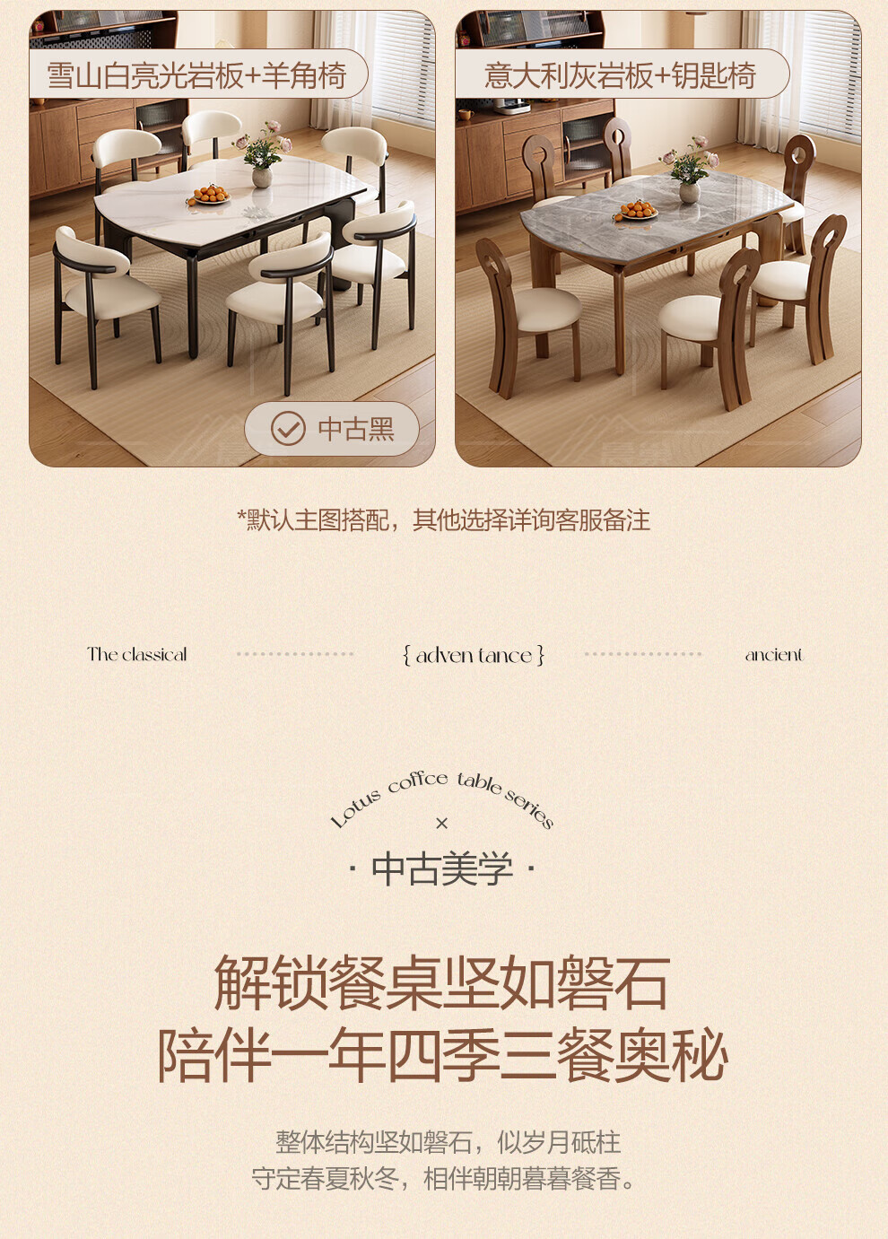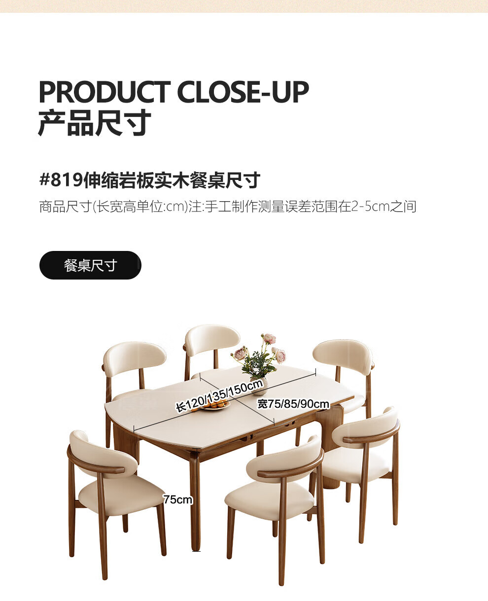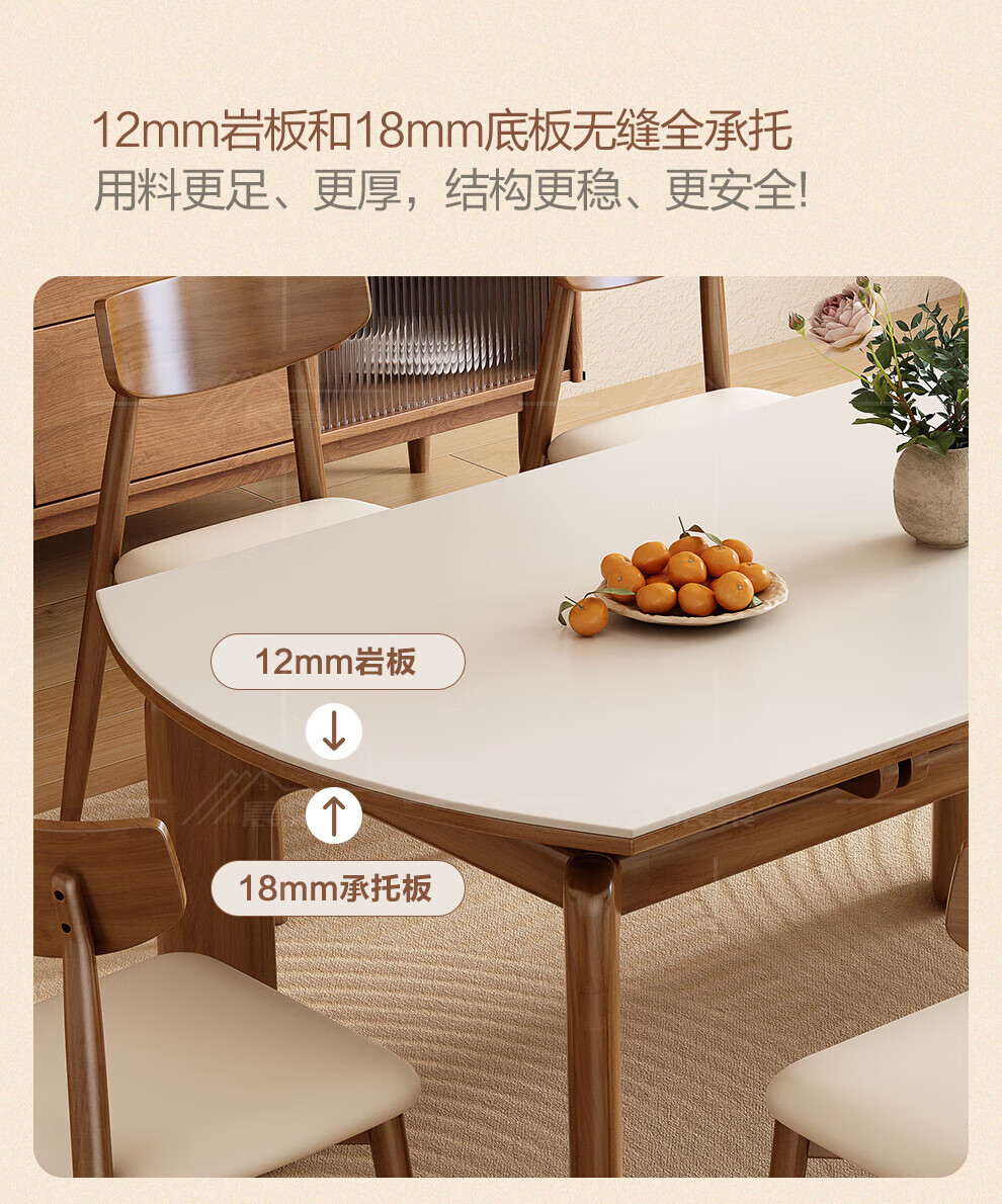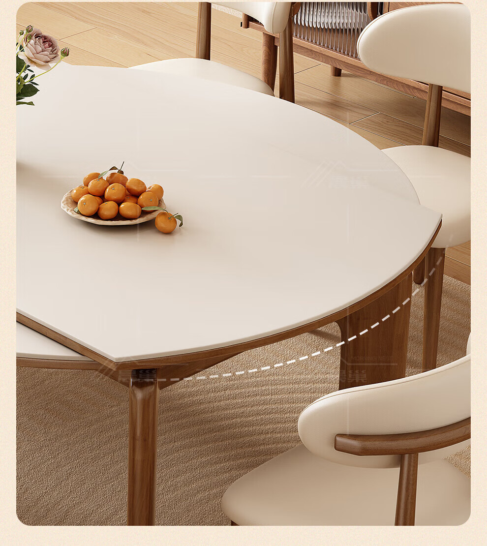 Chennest antique style solid wood slate dining table and chair combination 2026 new home small apartment retractable square and round dining table Antibacterial matte pure white slate/walnut color-horn chair 1.35 meters One table and six chairs Upgraded four rails