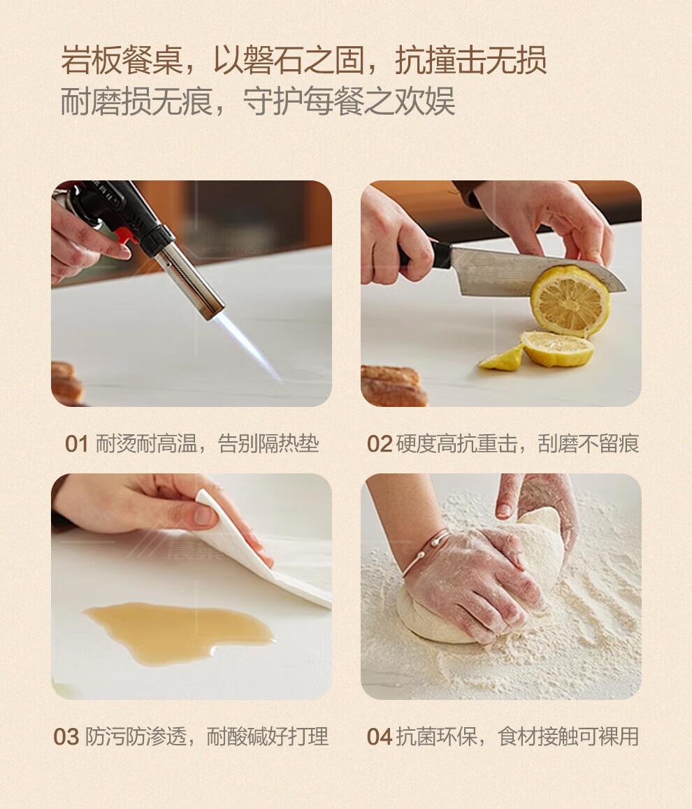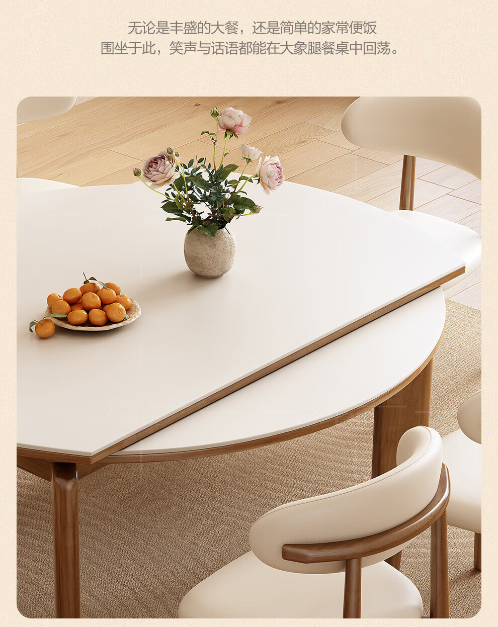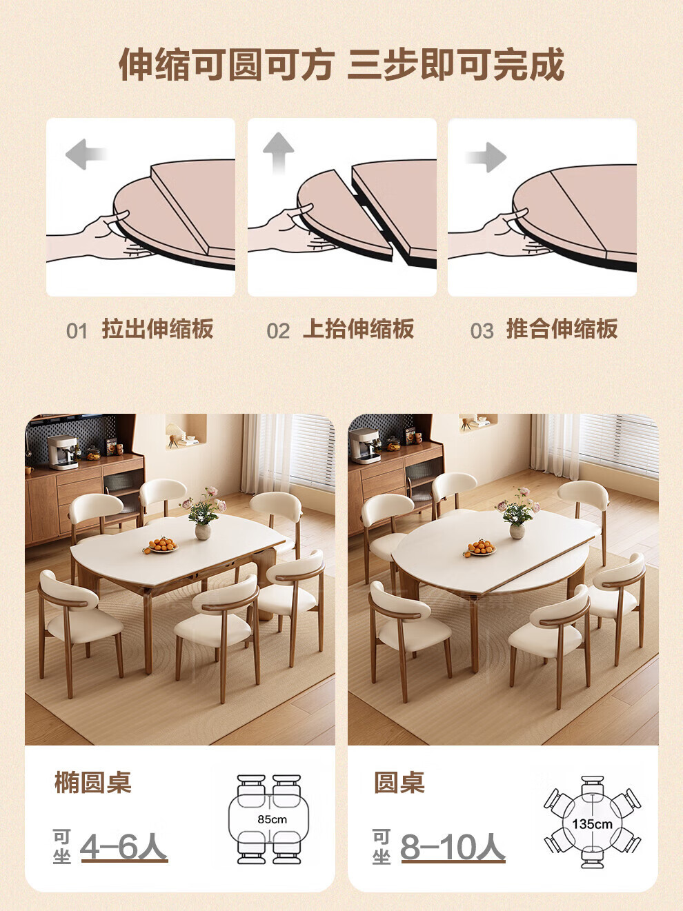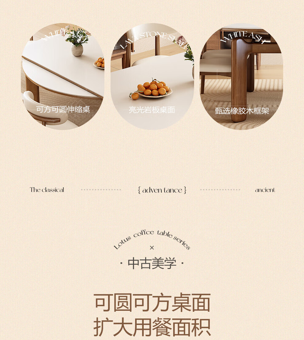 Chennest antique style solid wood slate dining table and chair combination 2026 new home small apartment retractable square and round dining table Antibacterial matte pure white slate/walnut color-horn chair 1.35 meters One table and six chairs Upgraded four rails