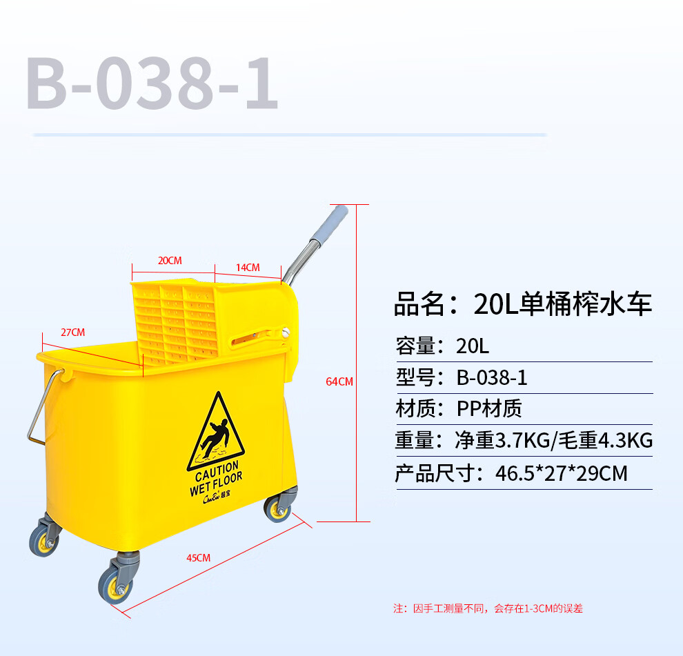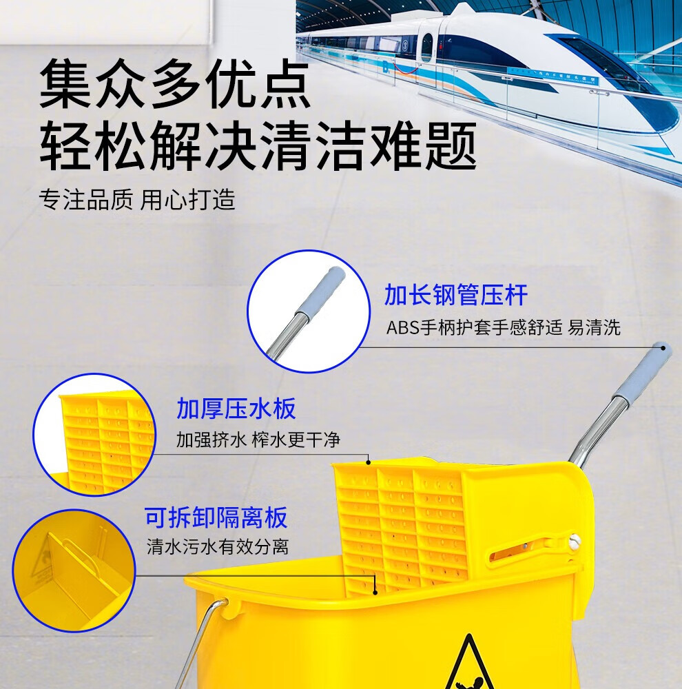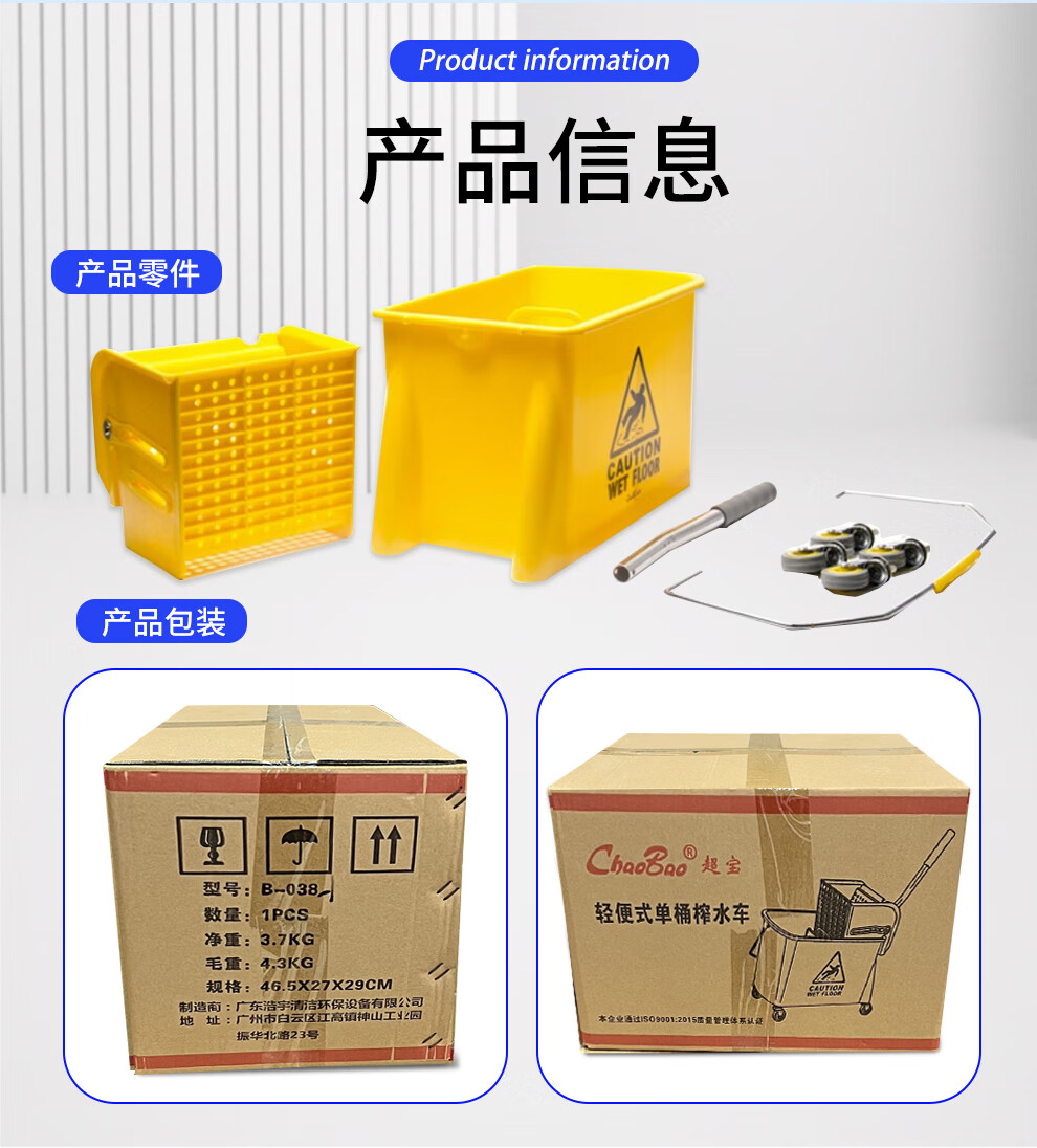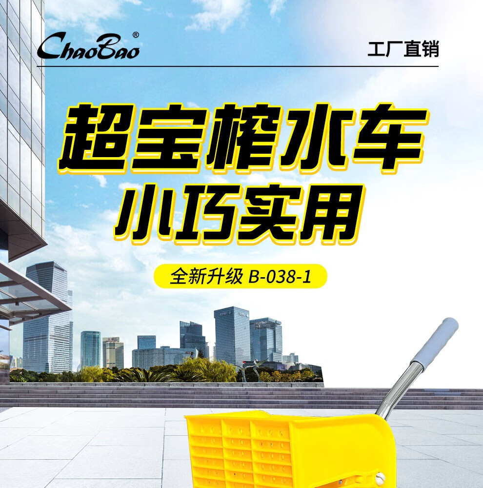 Baiyun Chaobao mop bucket squeeze bucket with wheels 20L mop water squeeze truck mop bucket household cleaning truck B-038-1 36 liter water squeeze truck + wax mop 1